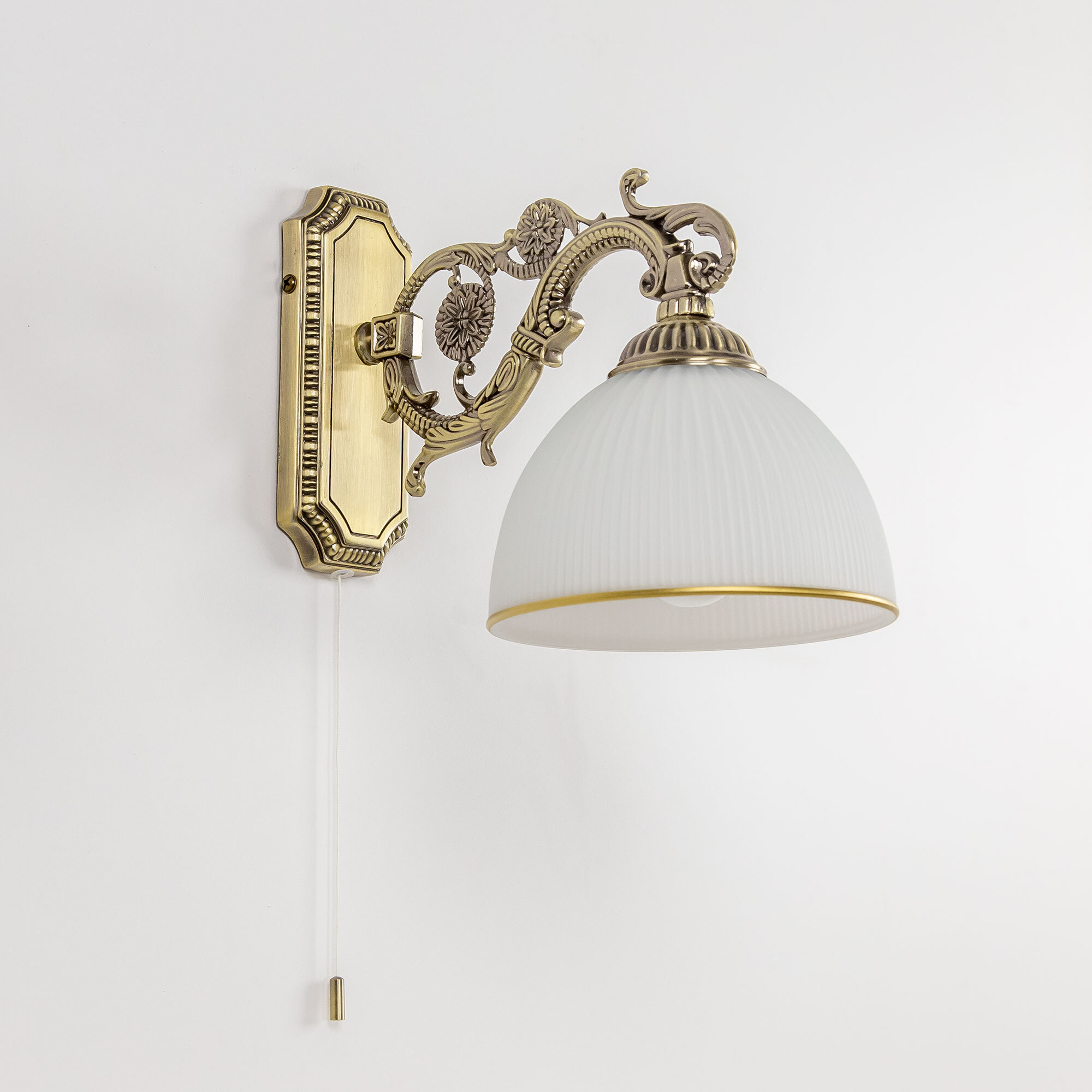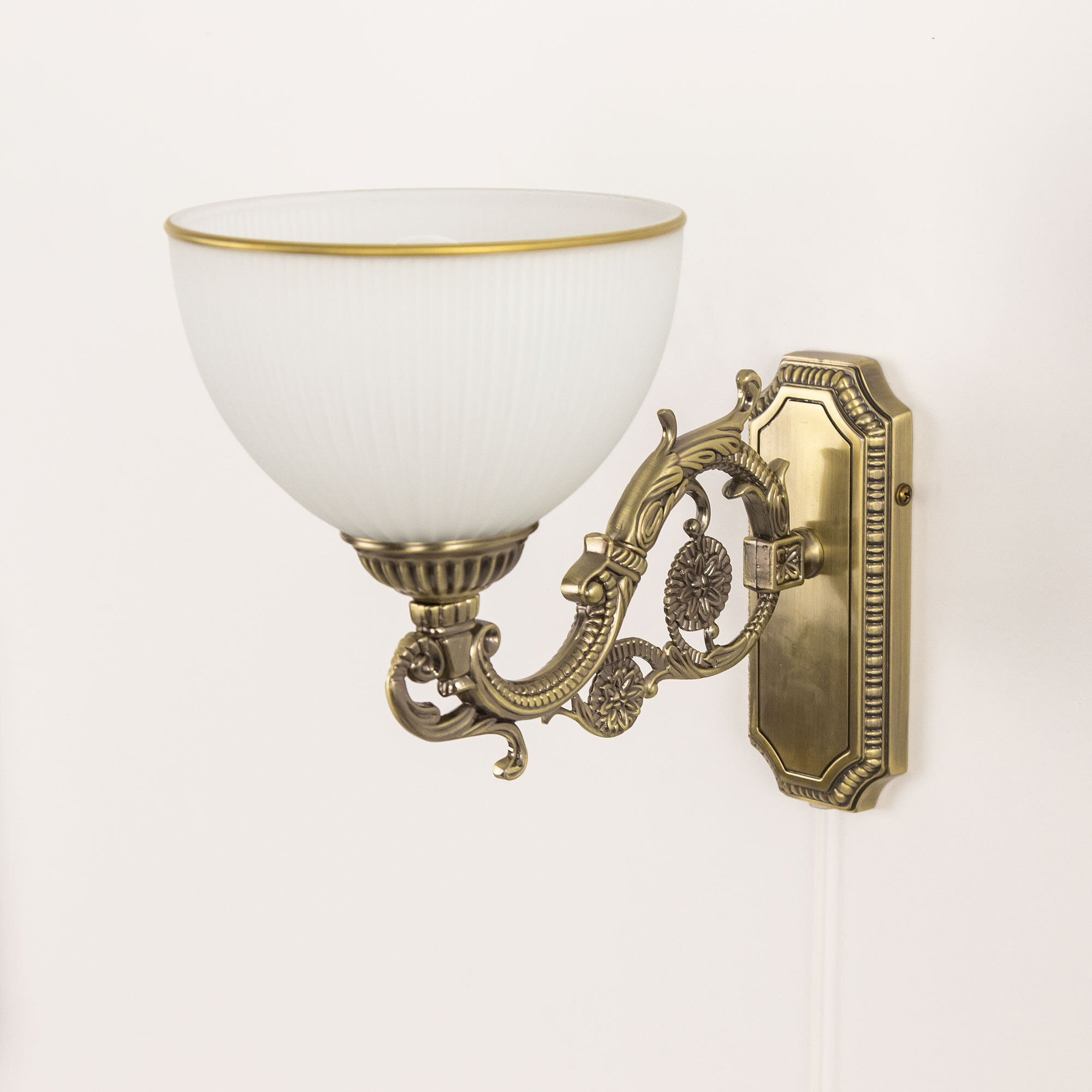 Бра однорожковое Ситилюкс CL405413 с выключателем, выполнено в классическом стиле. Корпус модели металлический с литым рожком и основанием прямоугольной формы. Плафон стеклянный, матовый, рифленый с благородной золотистой окантовкой. Светильник можно устанавливать на стене плафоном вверх или вниз, для общего освещения или для чтения. Настенное бра рассчитано на подключение к скрытой проводке. Если во время ремонта Вы не вывели проводку под бра, модель можно подключить с помощью провода в розетку. В бра используется лампа с цоколем Е27 и максимальной мощностью для ламп накаливания 75Вт. Светодиодные лампы можно использовать большей яркости.Citilux CL405 ADRIANA: Вдохновение в каждом луче.