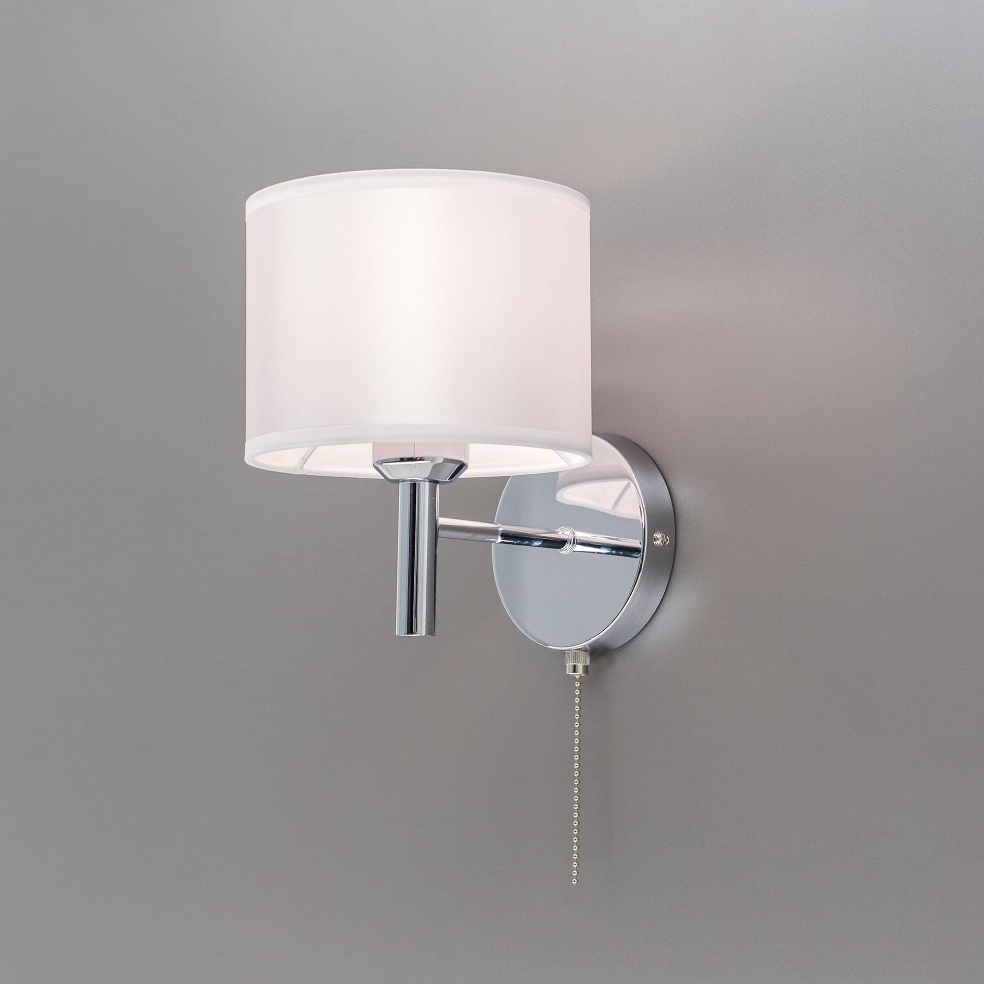 Настенный светильник Citilux Аврора CL463310 выполнен в современном стиле. Корпус металлический с элегантным рожком, цвет глянцевый хром. Абажур цилиндрической формы из ткани жемчужно-белого цвета на подложке из оптического полимера.