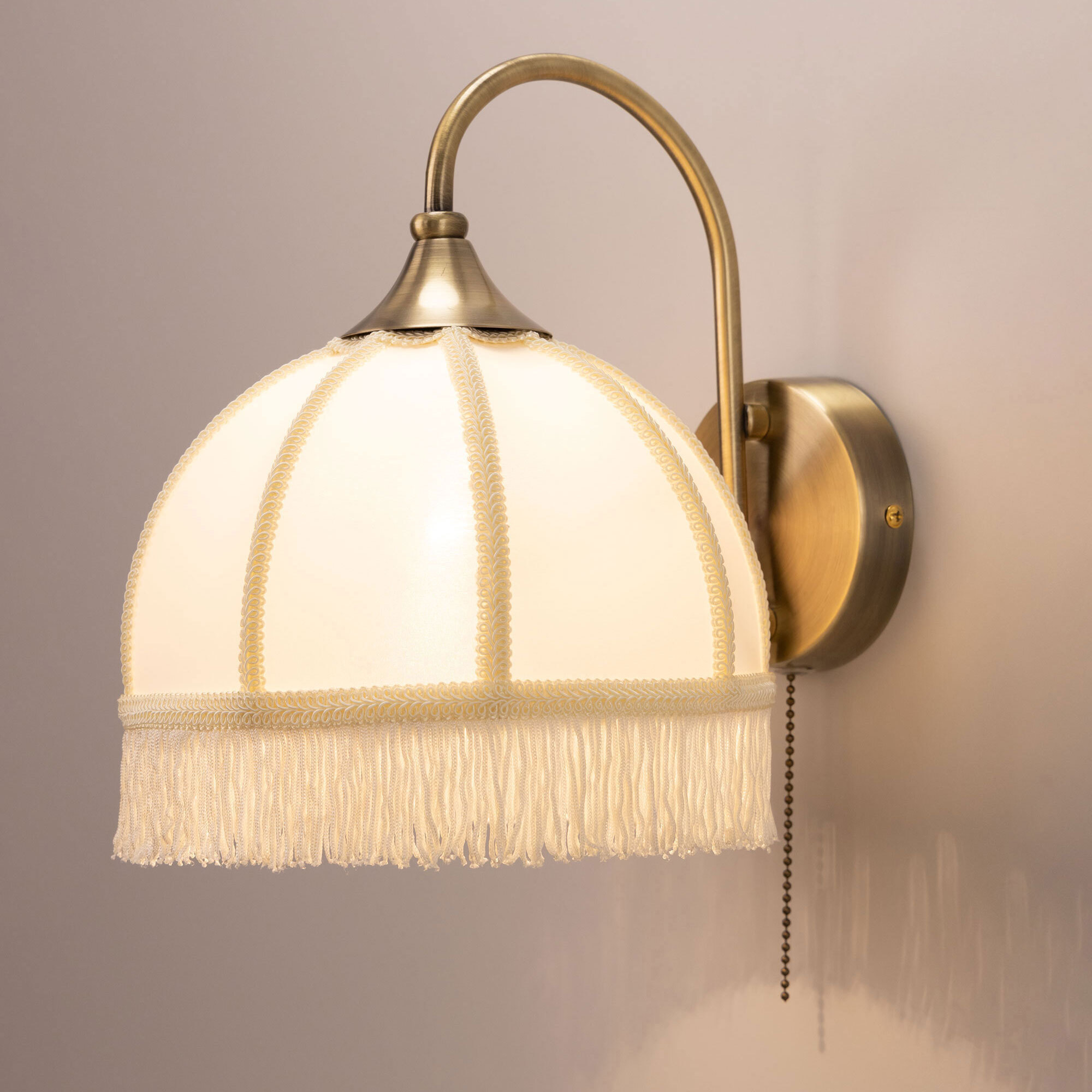 Классическое бра Citilux Базель CL407311 с кремовым абажуром и удобным выключателем. Корпус светильника металлический, цвет бронза. Абажур тканевый, декорирован бахромой и ажурной тесьмой. Модель подойдёт для освещения уютной гостиной, кухни, веранды в загородном доме или на даче. Поможет создать комфортную атмосферу в кафе и ресторане. В изделии используется лампа с цоколем Е27, максимальной мощностью для ламп накаливания 40Вт, светодиодные лампы можно устанавливать более яркие. Высота 26см, ширина 20см, глубина 27см.Citilux CL407 BASEL: Вдохновение в каждом луче.