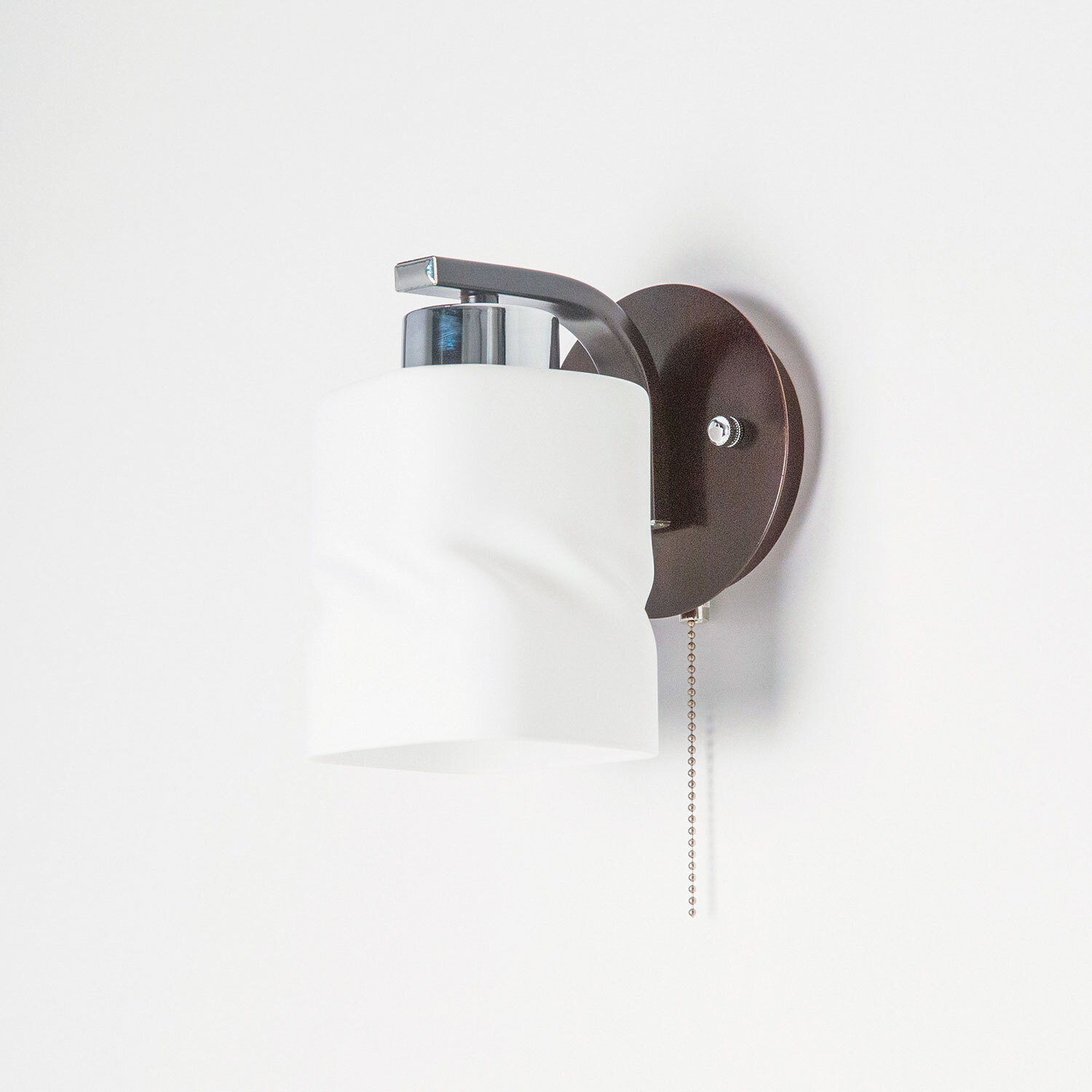 Бра настенная из обновлённой серии "Берта» достойна самого пристального внимания и придется по вкусу всем, кто ценит уютную и теплую домашнюю атмосферу. Основная суть обновления заключается в редизайне плафонов, которые теперь гораздо более качественные, лучше пропускают свет, чем в светильниках предыдущего поколения, а также интересней смотрятся с дизайнерской точки зрения. Сочетание необычный элементов и форм светильника украсят любую стену спальни, прихожей, гостиной, помогут организовать хорошее освещение в длинных коридорах и на лестничных пролётах. Такой светильник с прочным прямоугольным, слегка закрученным вокруг своей оси плафоном осветит помещение площадью до 4 квадратных метров. При монтаже устройства можно поменять направление плафона, развернув его вокруг своей оси вверх, тем самым организовать более рассеянное освещение помещения, ведь свет будет мягко распространяться, отражаясь от потолка и стен вашей комнаты. Светильник с завода поставляется с собственным встроенным выключателем. Конструкция оснащена термостойким цоколем E27 с ограничением по потребляемой мощности до 75 Вт, что позволяет использовать очень мощные светодиодные лампы. При производстве светильника применялись такие материалы, как матовое стекло и металл. За счёт яркости и функциональности светильник легко можно использовать, как самостоятельный элемент освещения, но также идеально он может применяться с люстрами или подвесами одноименной коллекции «Берта».