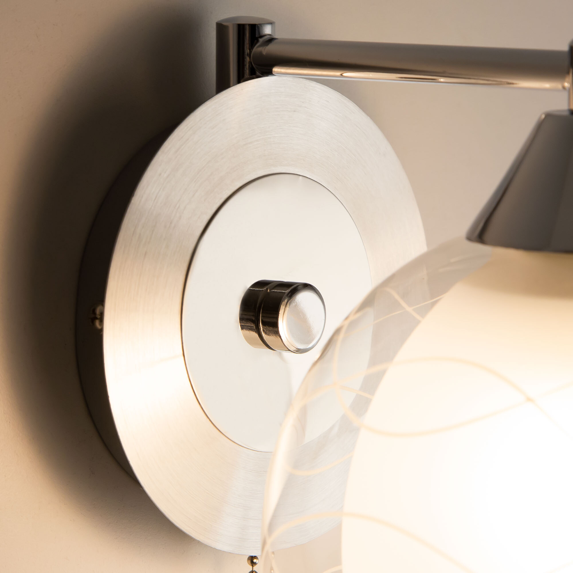Бра настенная коллекции «Буги» выделяется интересным дизайном в стиле модерн и необычным плафоном. Плафон состоит из двух частей: прозрачной внешней части с декоративным узором, и внутренние полупрозрачной. За счёт полупрозрачности внутренней части свет от бра очень яркий, но вместе с этим мягкий, позволяет отдыхать, не напрягая при этом зрение. Бра оснащен своим выключателем, что позволит вам выключать свет, не вставая с кровати, если светильники использованы в качестве прикроватных. Качественные патроны из термостойких материалов выдерживают лампы накаливания до 75 ватт включительно, а энергосберегающие, или светодиодные лампы можно использовать любой яркости что позволит вам осветить большую площадь освещения. Этот момент даёт возможность применять данные бра в качестве самостоятельно источника света в небольших коридорах или в качестве подсветки определённых зон. Также идеально модели смотрятся в сочетании с потолочными люстрами серий «Буги» и «Самба». Серия поставляется в двух цветах – универсальный белый в сочетании с хромом, а также алюминий с хромом. Площадь освещения до 4 квадратных метров.