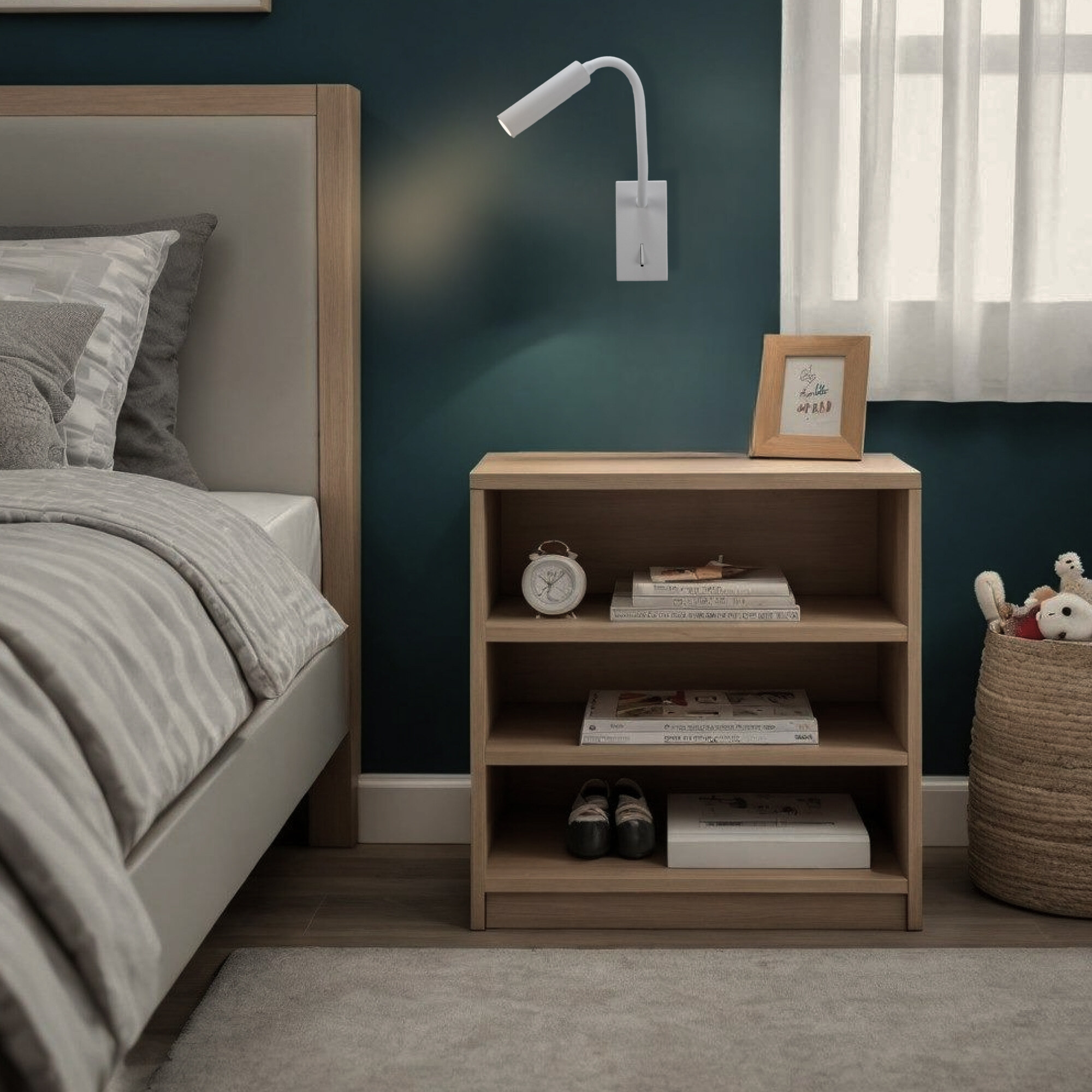 Настенный светодиодный светильник Citilux Декарт CL704360 для чтения. Корпус изделия металлический, прямоугольной формы, цвет белый матовый. Поворотная подсветка на гибкой ножке цилиндрической формы, со встроенным светодиодом, для акцентного и направленного освещения. Мощность 3Вт, световой поток 225Лм, цветовая температура 3000К – теплый свет. Тип крепления – планка.Citilux CL70436 DEKART: Вдохновение в каждом луче.