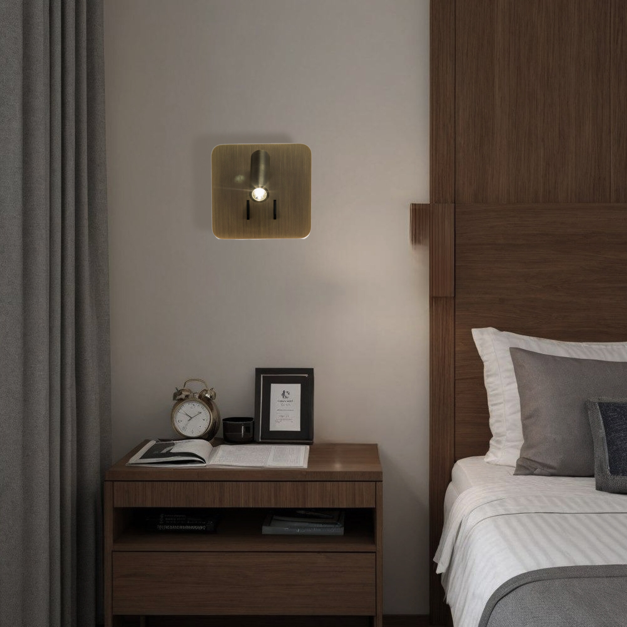 Мощность изделия 9Вт, цветовая температура 3000К (тёплый свет), что создает атмосферу уюта и комфорта, идеально подходящую для гостиной, зала, кухни или спальни. Это бра прекрасно выглядит в изголовье кровати или дивана, обеспечивая комфортное освещение для чтения перед сном.