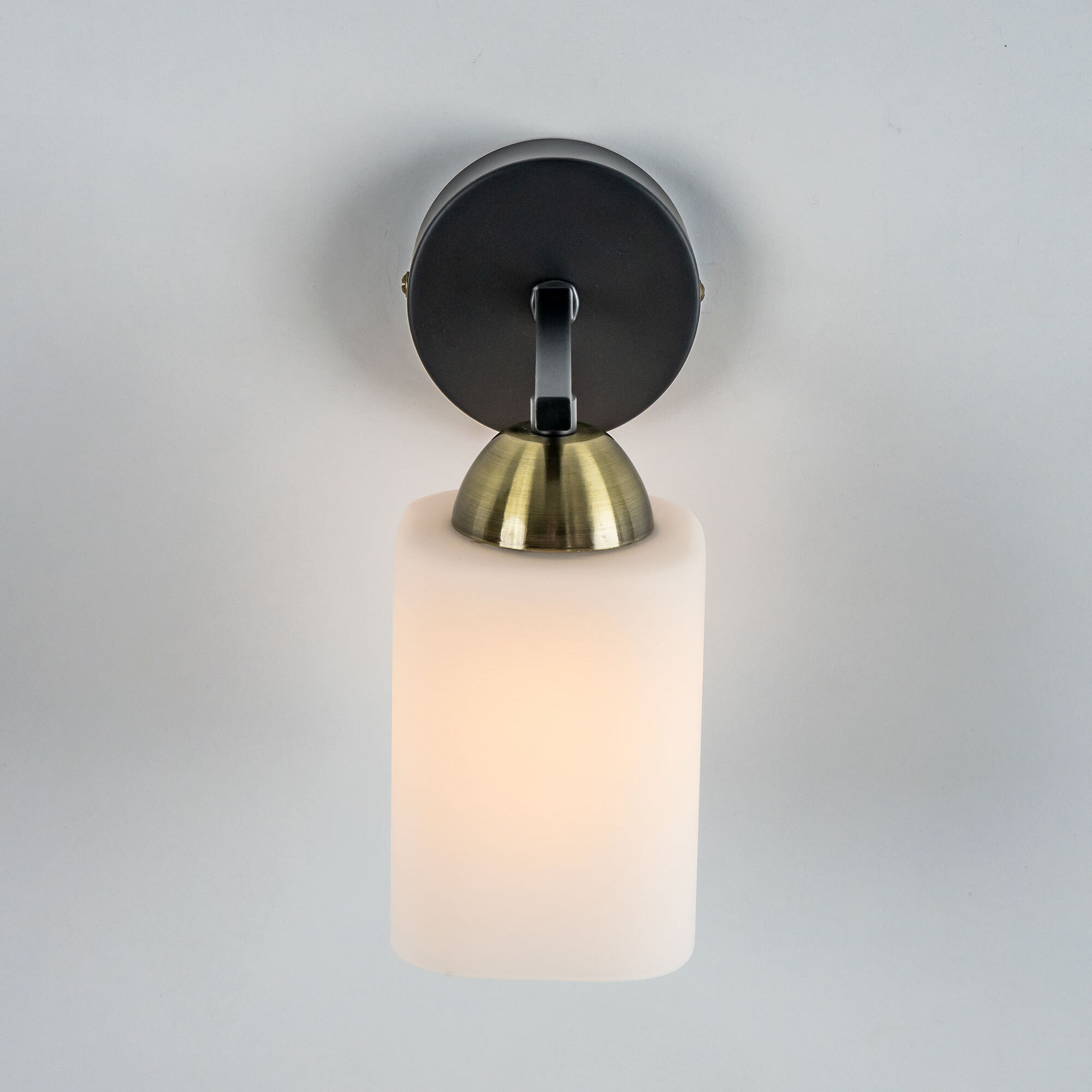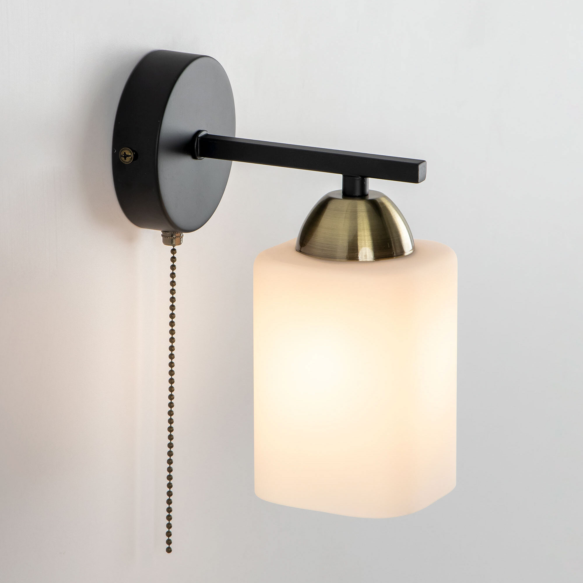 Бра Citilux Генри CL130415 выполнено в современном стиле. Корпус настенного светильника металлический, цвет чёрный, с декоративными бронзовыми элементами. Основание круглой формы, с одним рожком. Плафон стеклянный матовый квадратной формы. В изделии одна лампа с цоколем Е27 и максимальной мощностью для ламп накаливания 75Вт. Светодиодные лампы можно использовать более яркие. Тип крепления – планка. Бра оснащено удобным классическим выключателем с цепочкой.