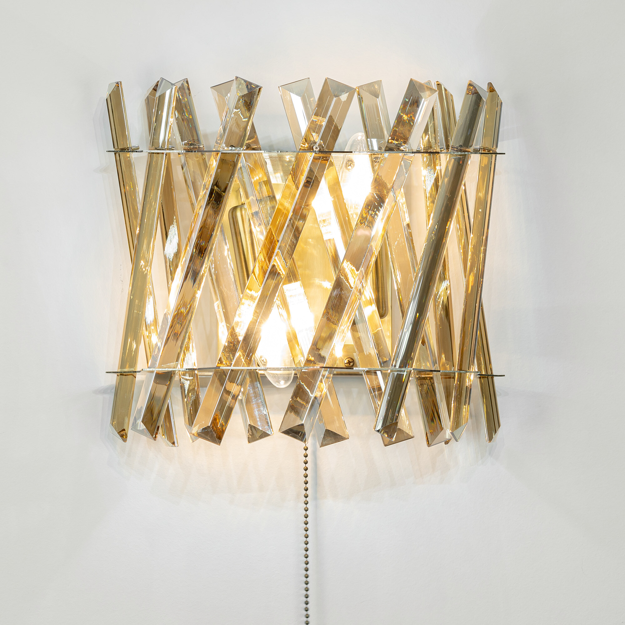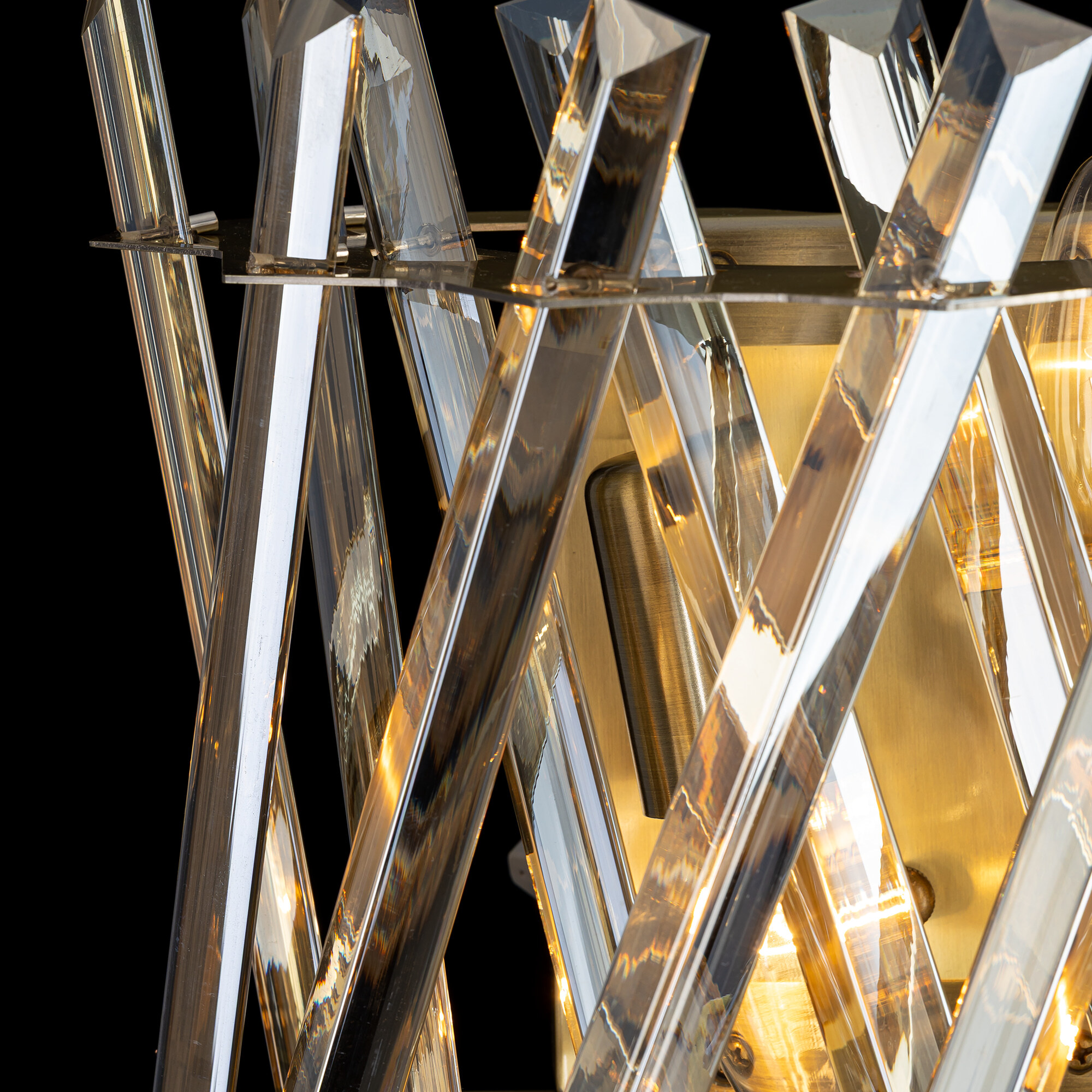 Хрустальный настенный светильник Citilux Ингвар CL334423 выполнен в стиле современной классики. Корпус металлический, бронзового цвета. Хрустальные элементы крупные с современной огранкой, модного оттенка шампань.