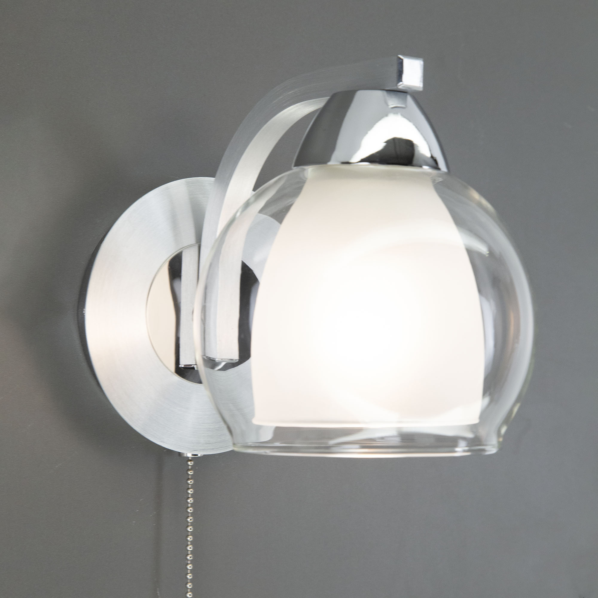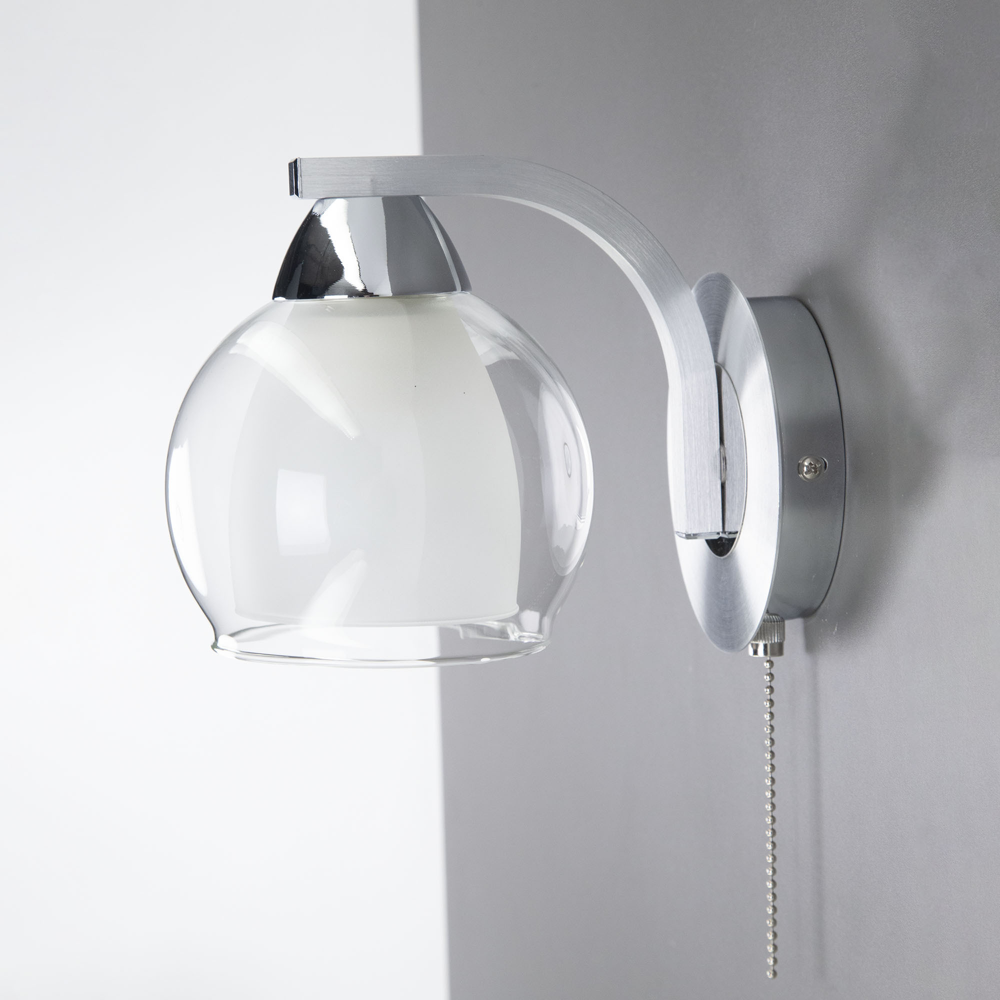 Главной изюминкой этой модели является оригинальный плафон, имеющий форму усеченного шара. Он изготовлен из двух типов стекла: внутренняя часть плафона полуматовая, а внешняя - прозрачная. Такое сочетание позволяет создать приятное рассеянное освещение, сохраняя при этом высокую светопроницаемость.
