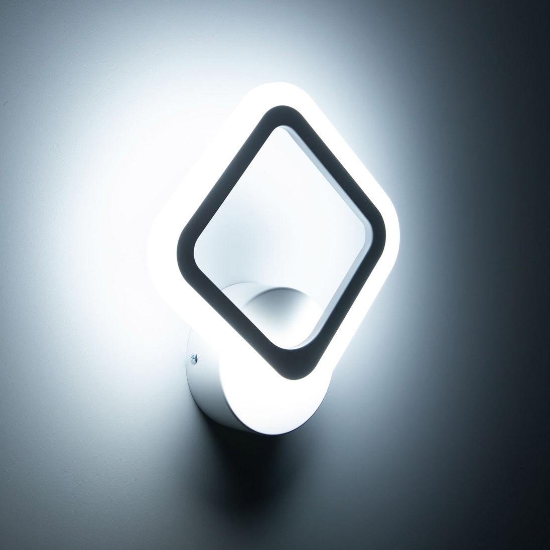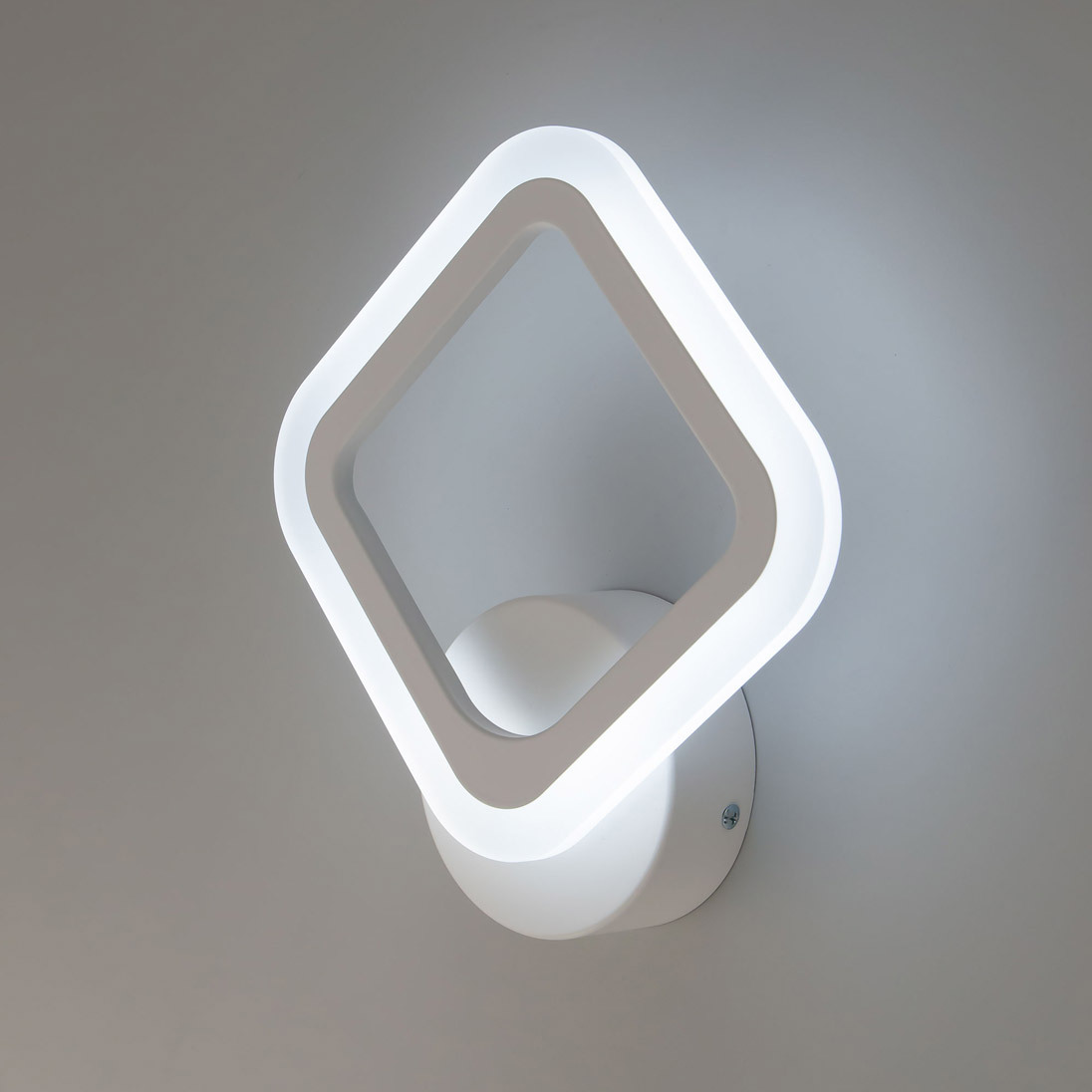 Светодиодный настенный светильник Citilux Марсель CL232B310 белого цвета с квадратным светодиодным модулем-плафоном в виде ромба. Корпус светильника из прочного полимера, рассеиватель из оптического акрила. Мощность 12Вт, световой поток 1100Лм, освещаемая площадь около 4м². Предустановлено 4 режима освещения для управления обычным настенным выключателем.