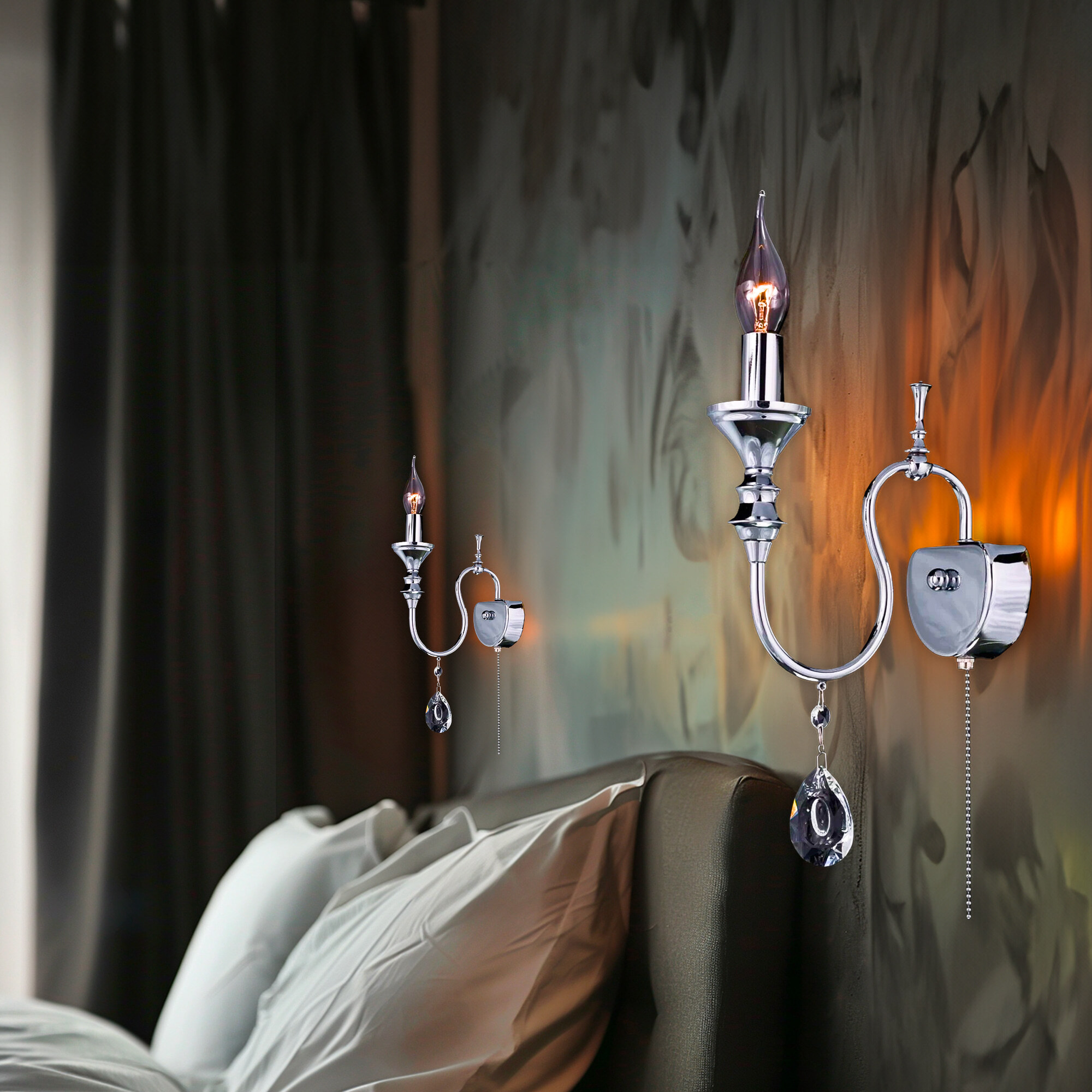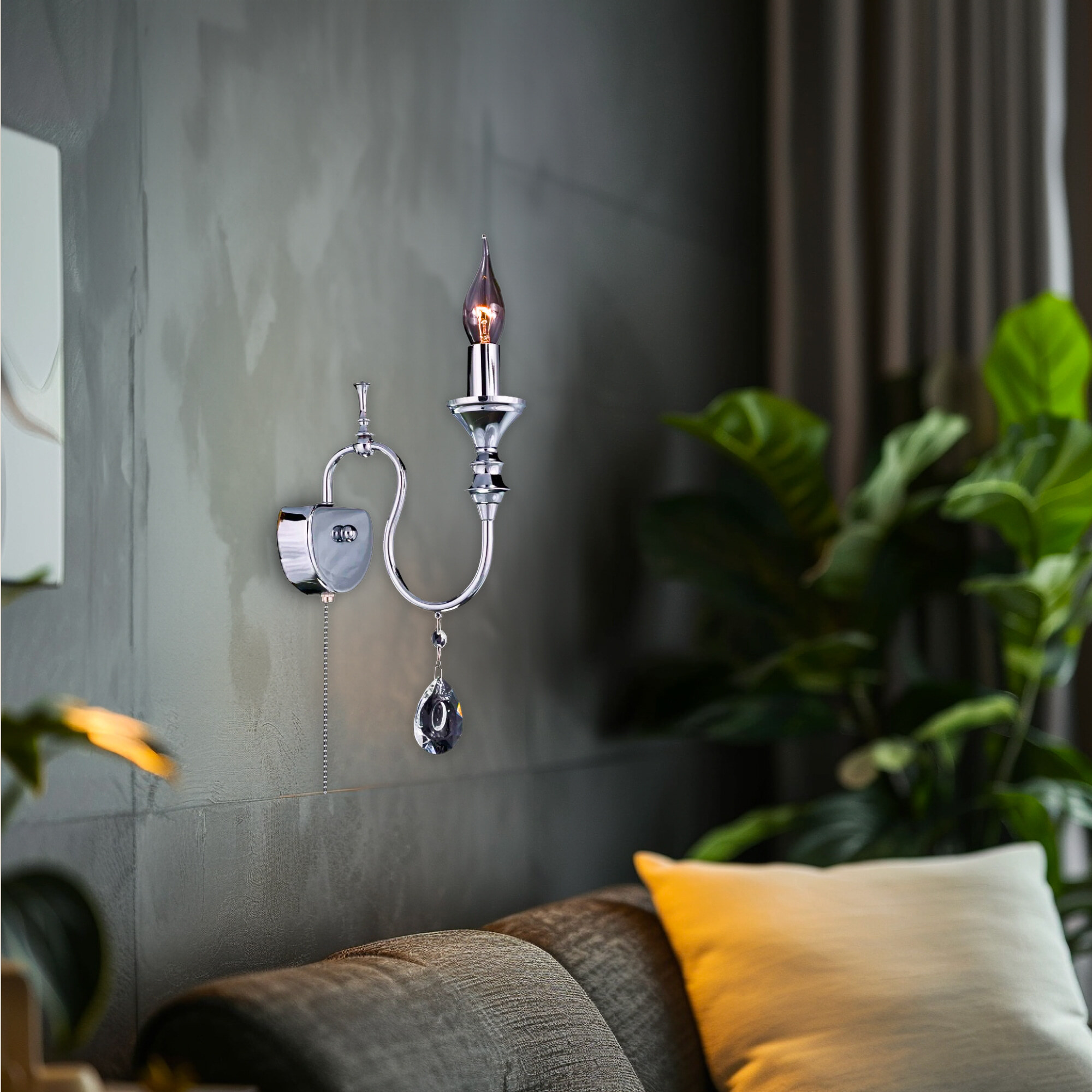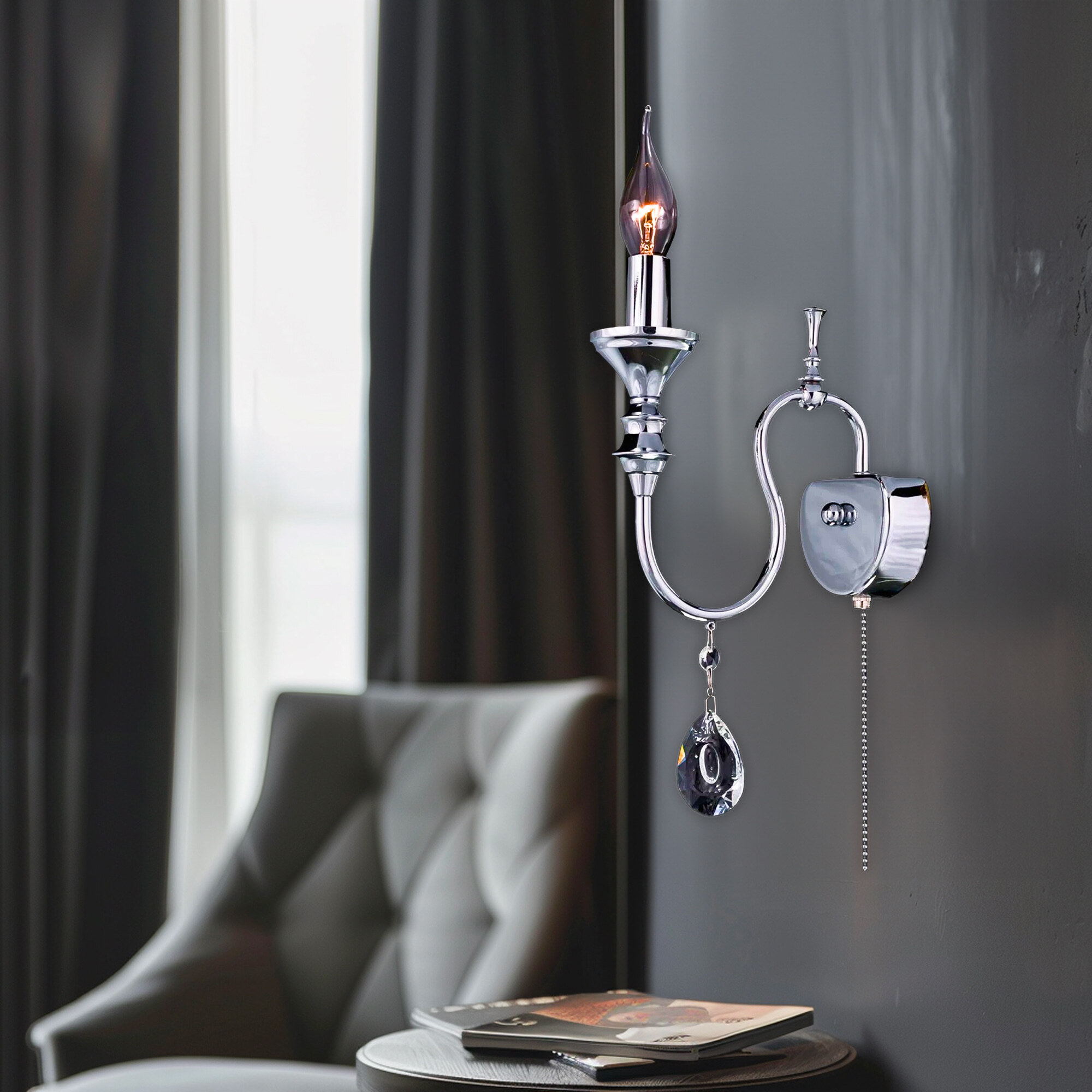 Настенный светильник Citilux Рига CL437311 изысканное дополнение вашего интерьера в стиле современной классики. Металлический хромированный корпус и изящное украшение из крупных хрустальных подвесок создают неповторимый образ.