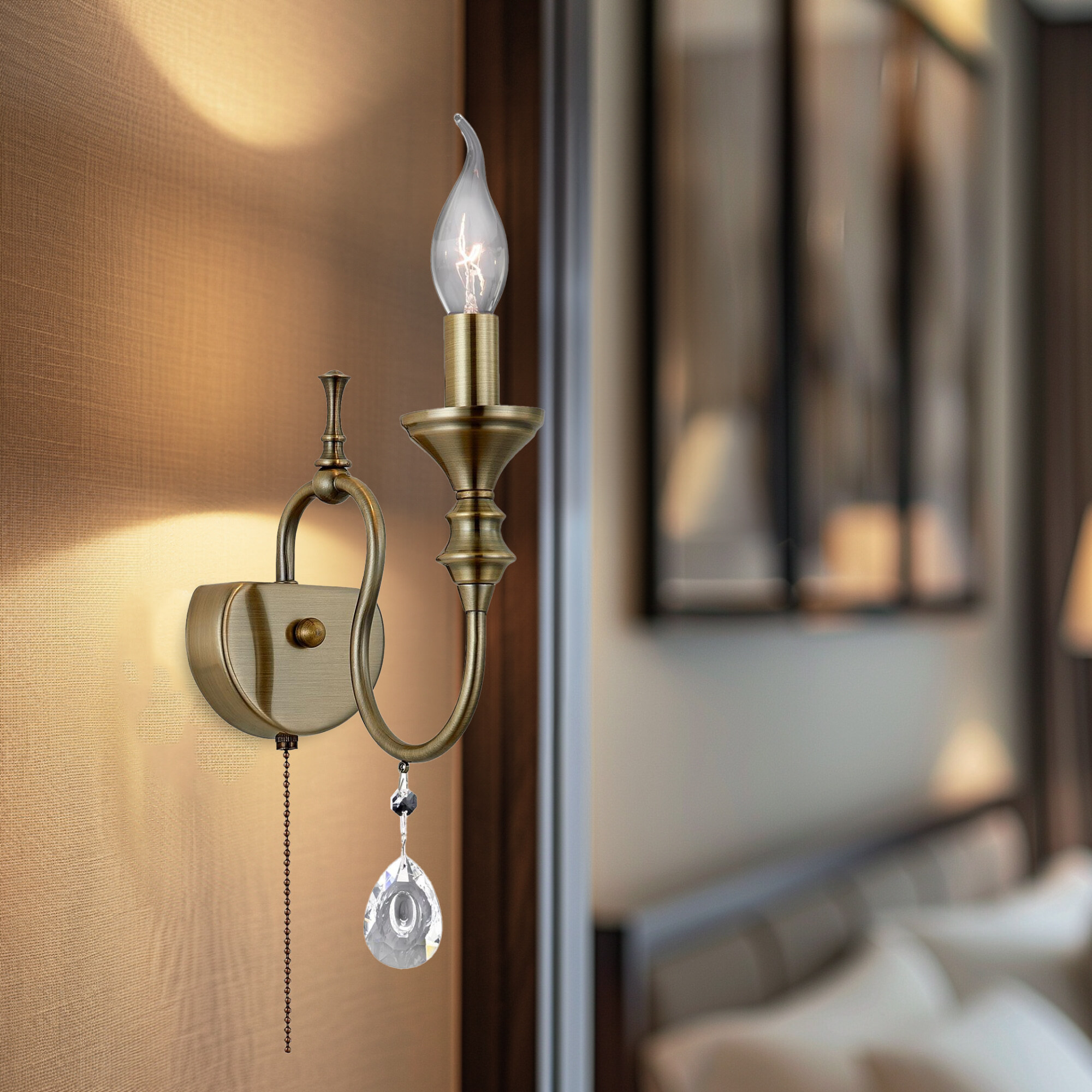 Настенный светильник Citilux Рига CL437313 изысканное дополнение вашего интерьера в стиле современной классики. Металлический корпус благородного бронзового цвета и изящное украшение из крупных хрустальных подвесок создают неповторимый образ.