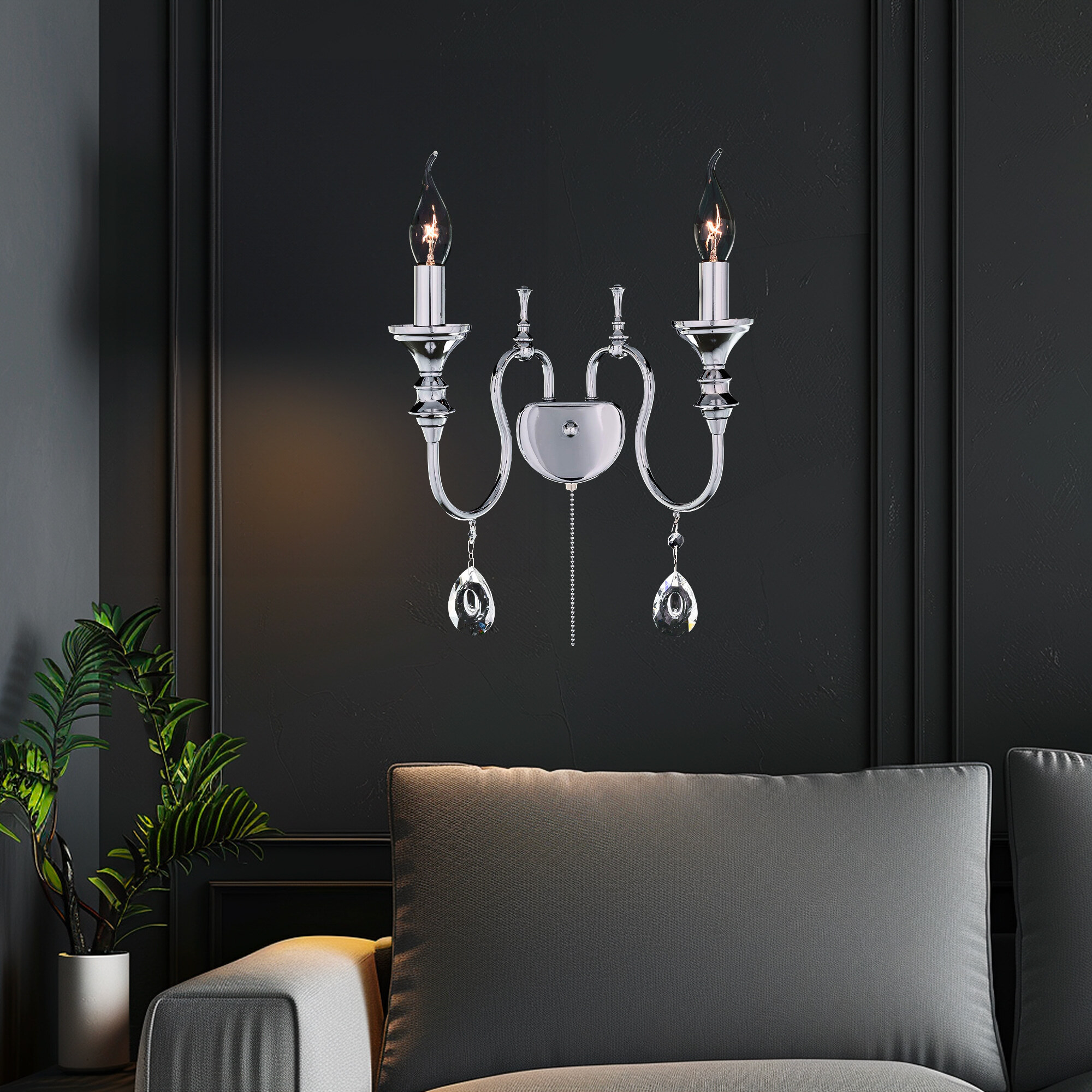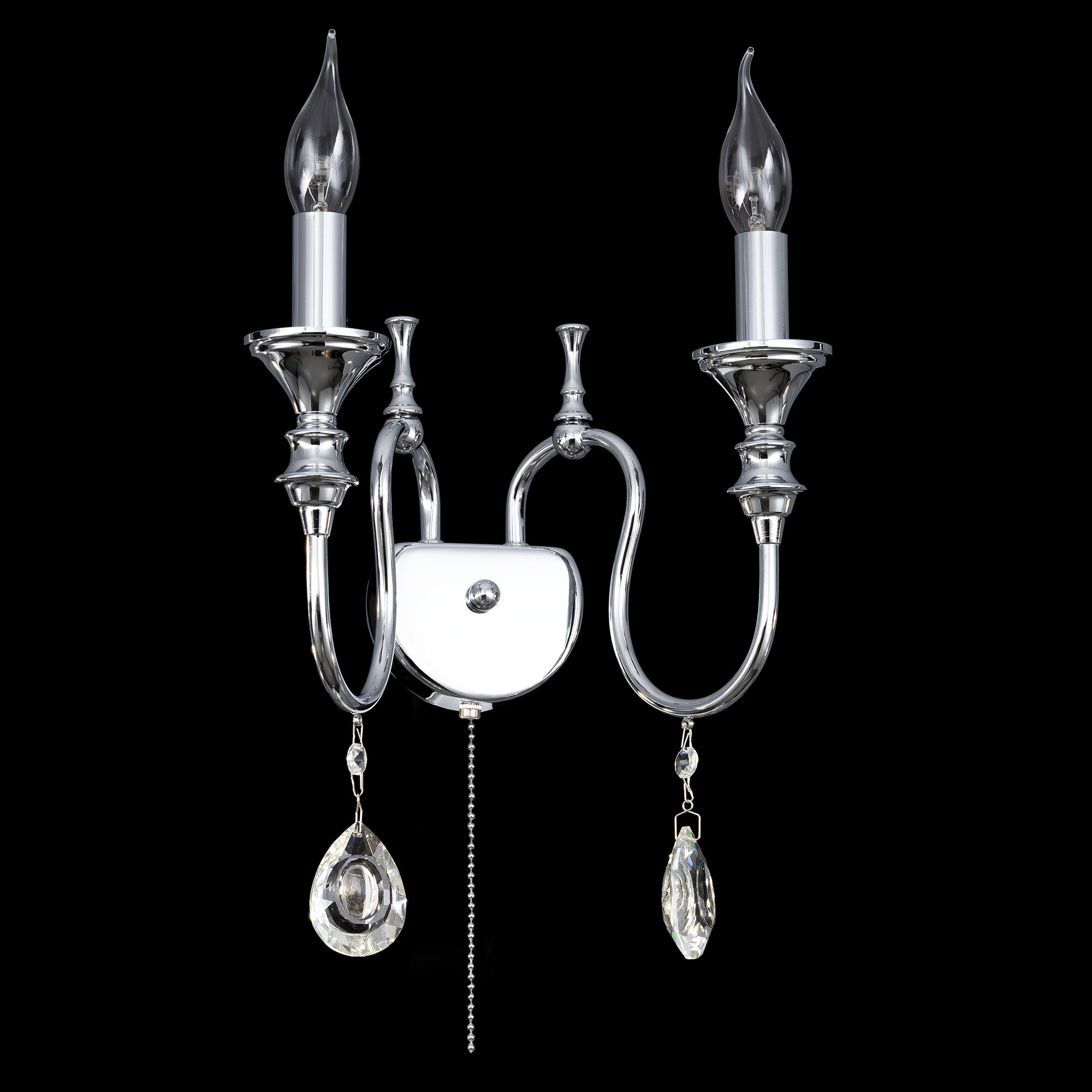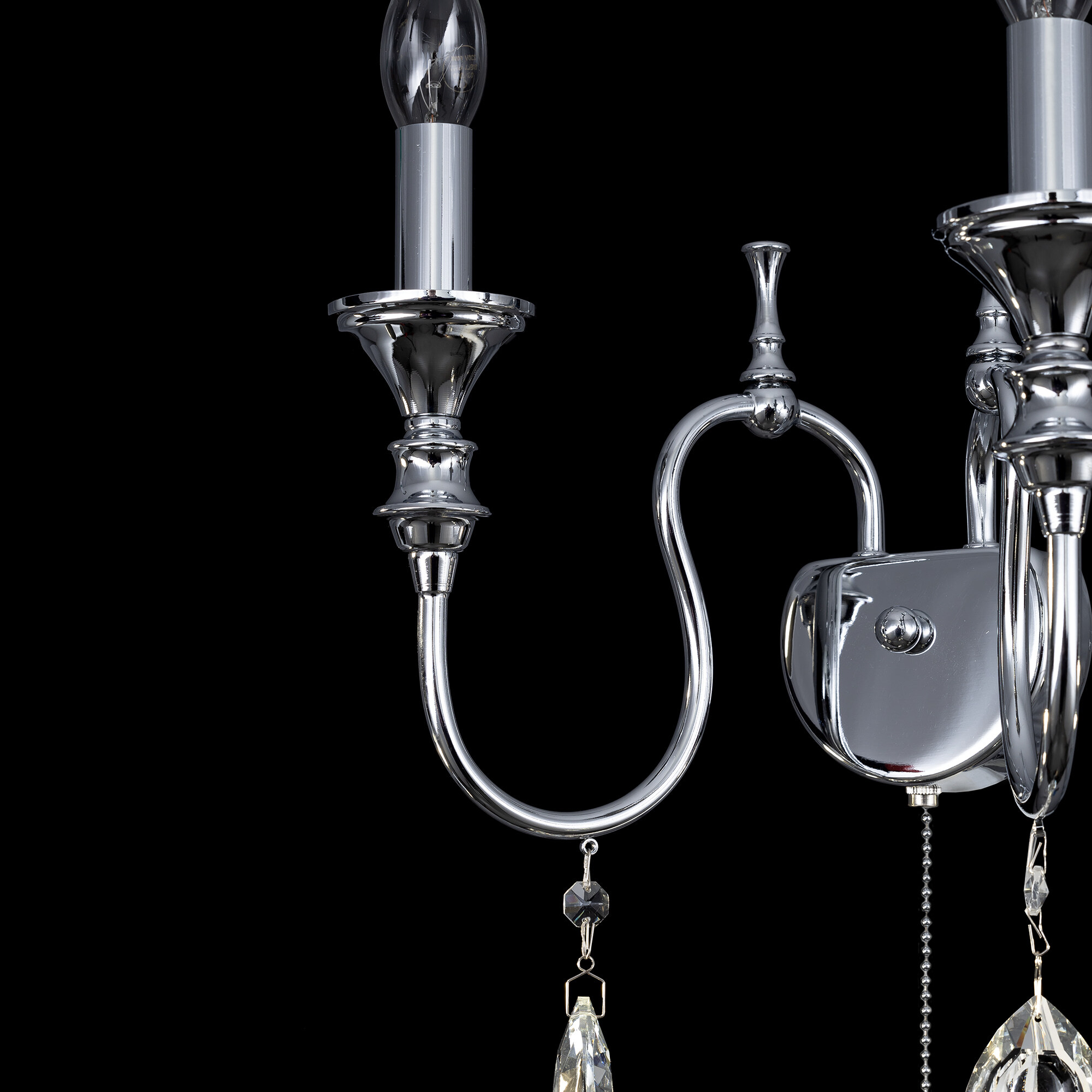 Настенный светильник Citilux Рига CL437321 изысканное дополнение вашего интерьера в стиле современной классики. Металлический хромированный корпус и изящное украшение из крупных хрустальных подвесок создают неповторимый образ.
