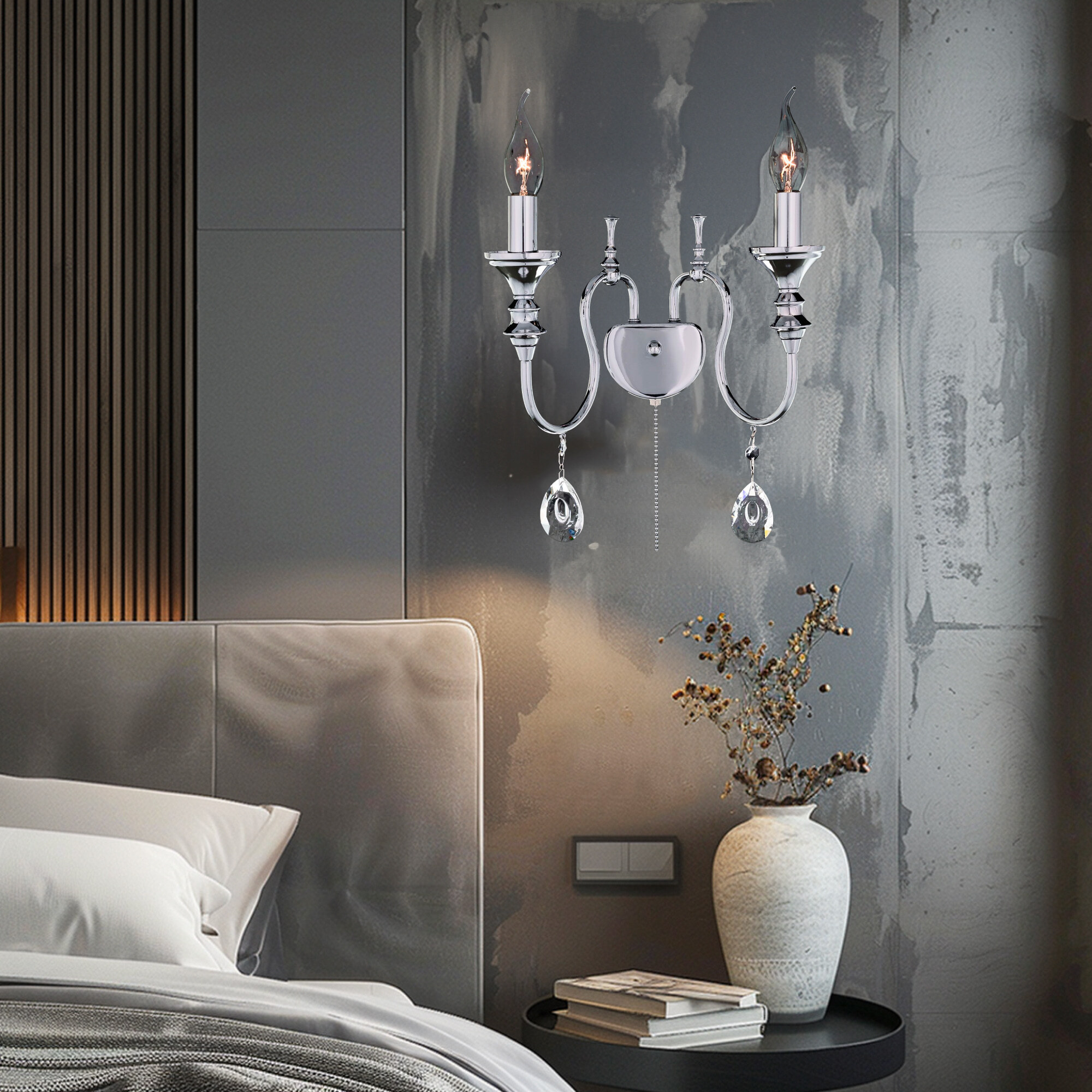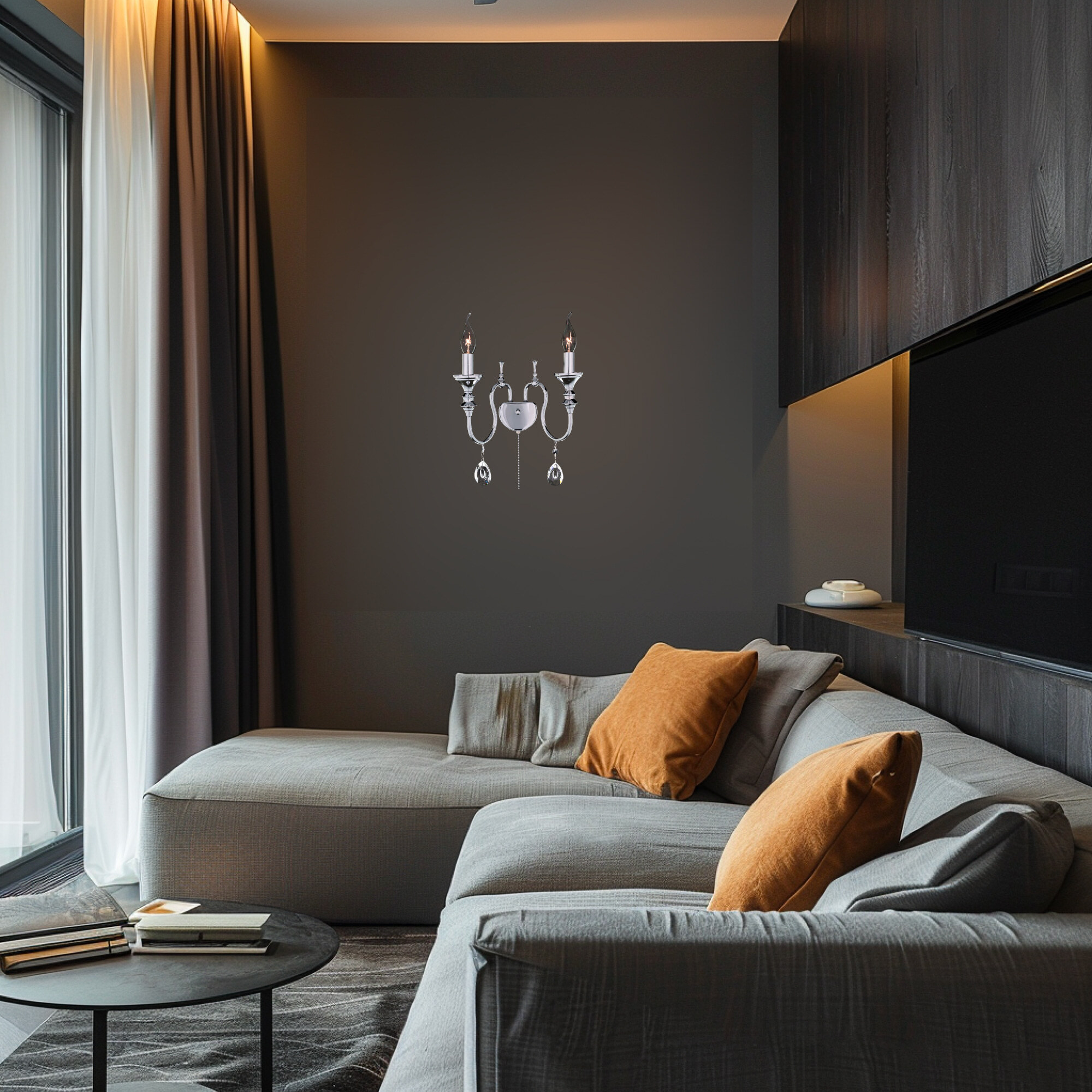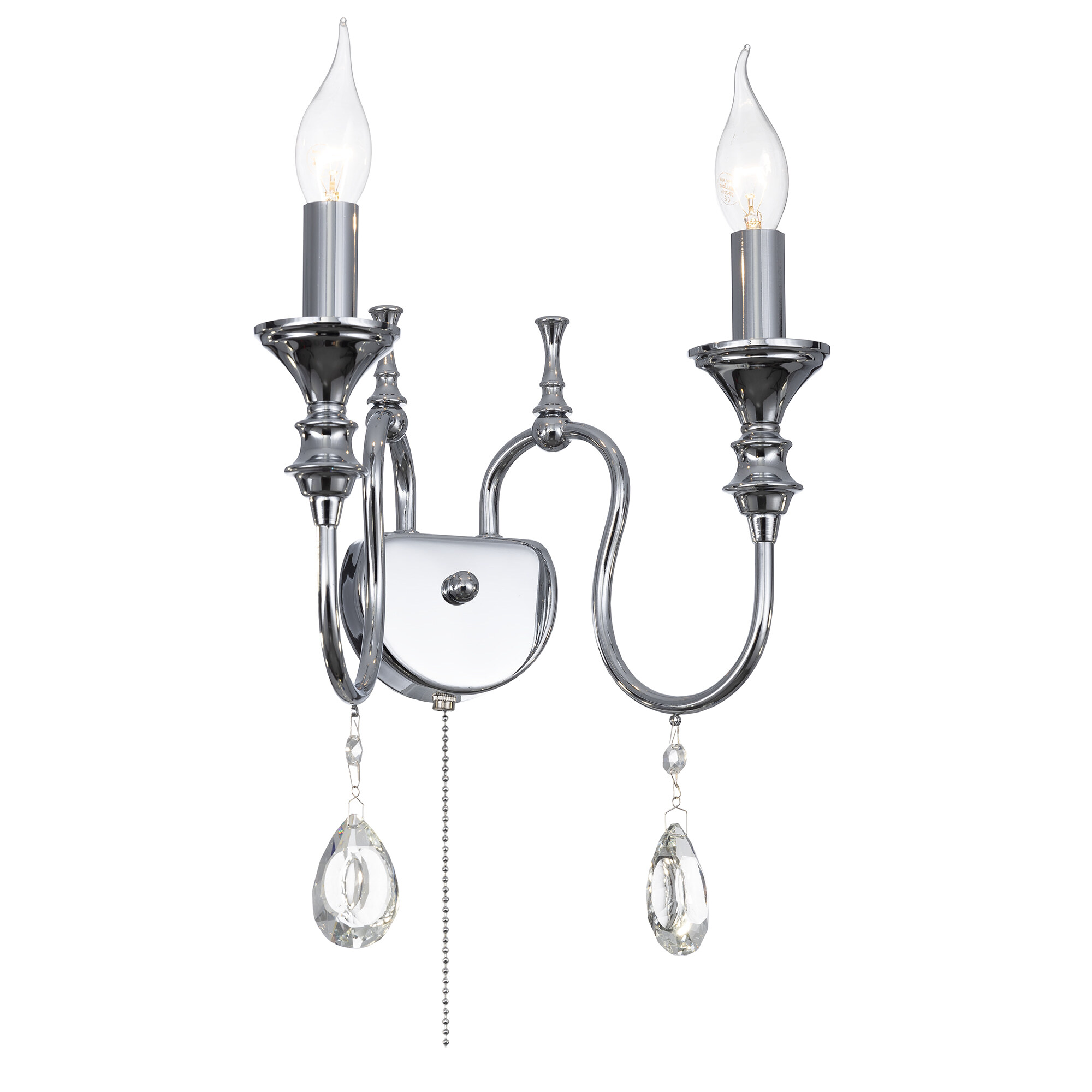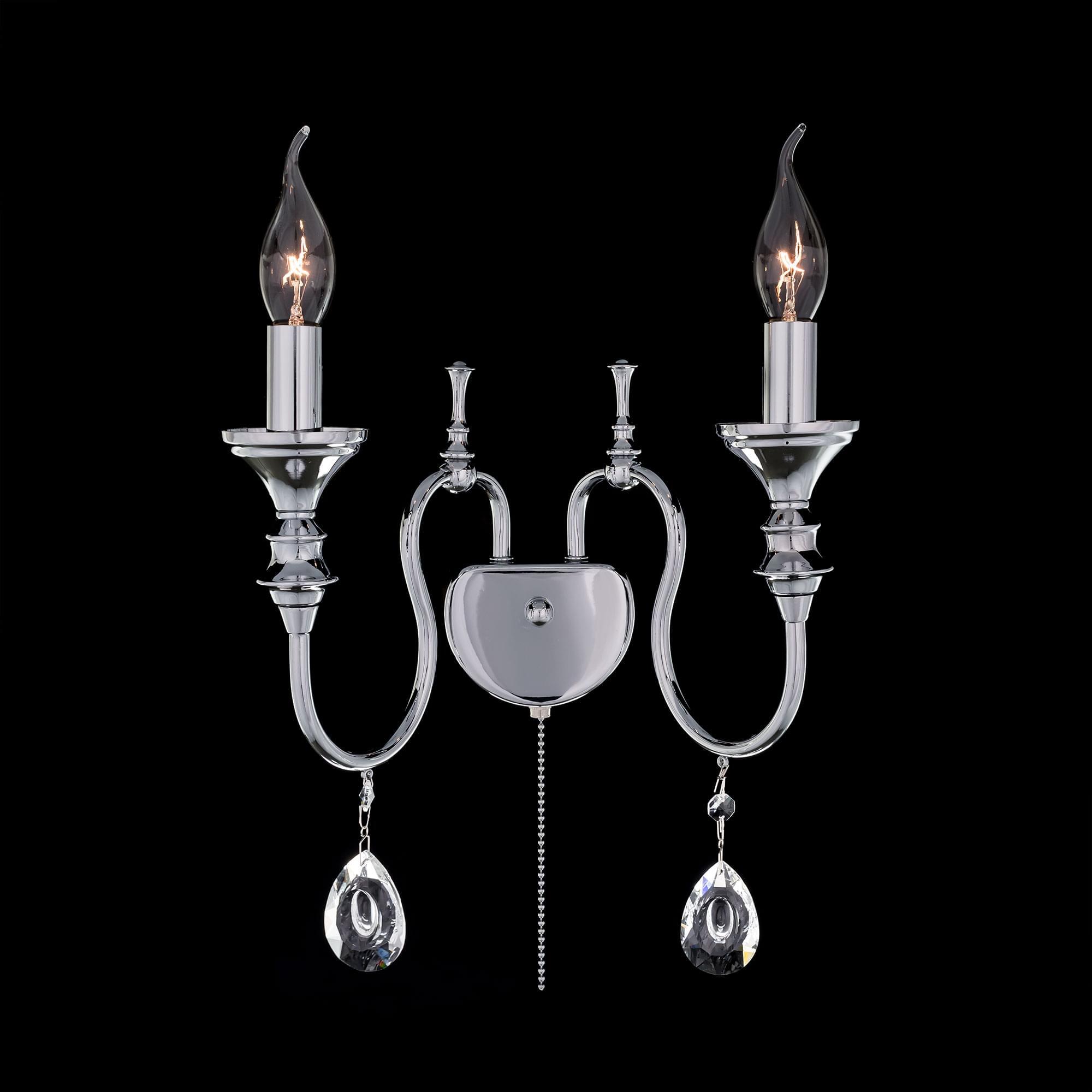 Настенный светильник Citilux Рига CL437321 изысканное дополнение вашего интерьера в стиле современной классики. Металлический хромированный корпус и изящное украшение из крупных хрустальных подвесок создают неповторимый образ.