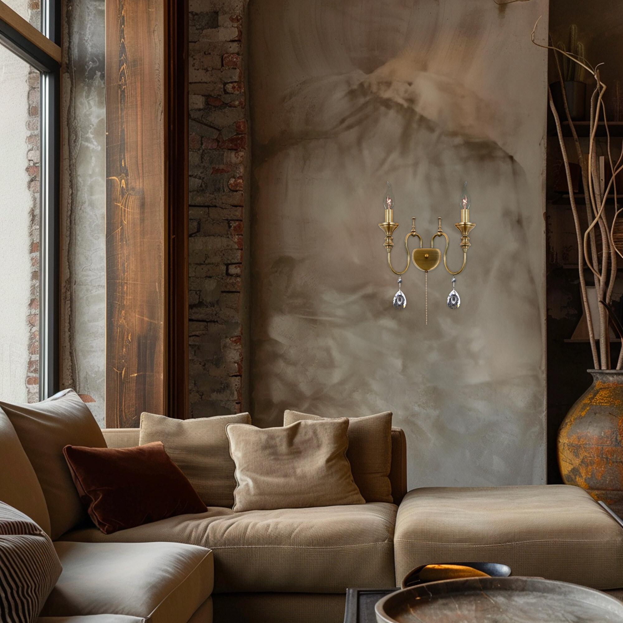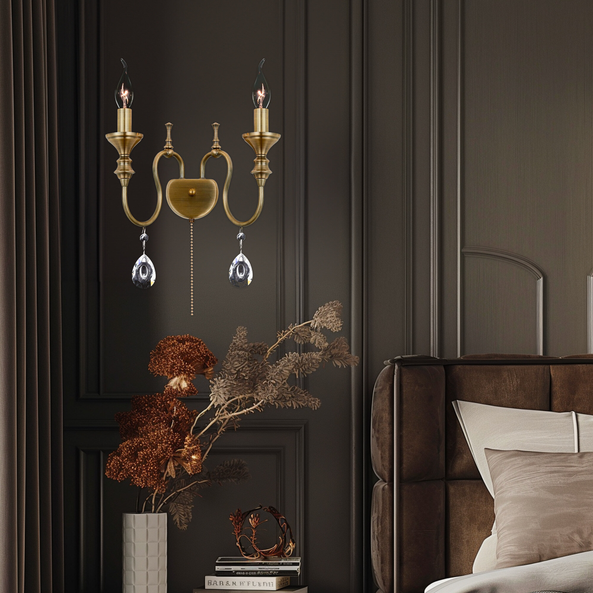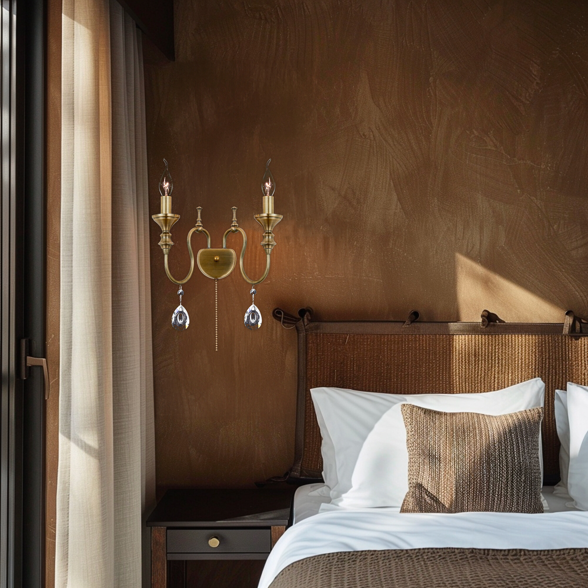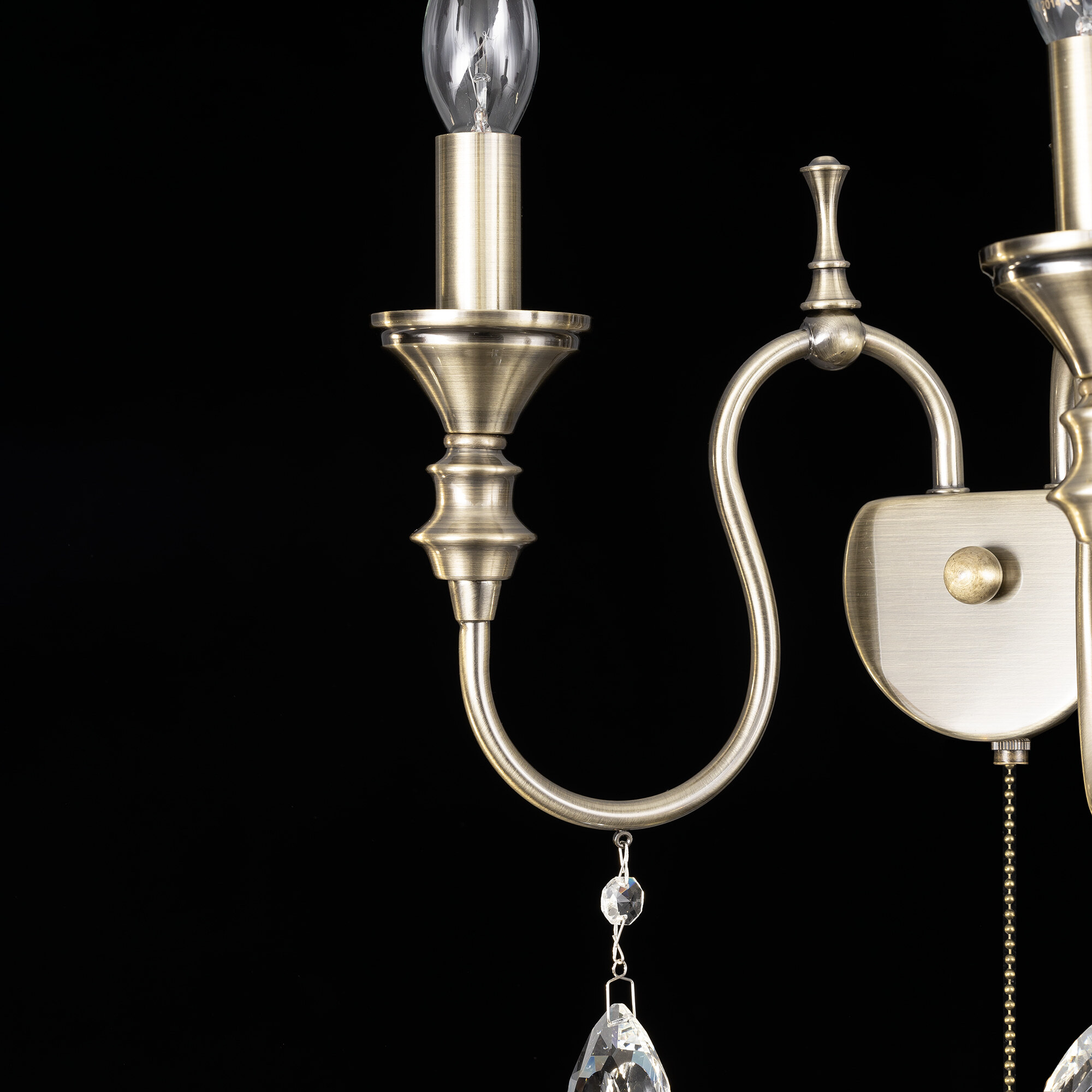 Настенный светильник Citilux Рига CL437323 изысканное дополнение вашего интерьера в стиле современной классики. Металлический корпус благородного бронзового цвета и изящное украшение из крупных хрустальных подвесок создают неповторимый образ.