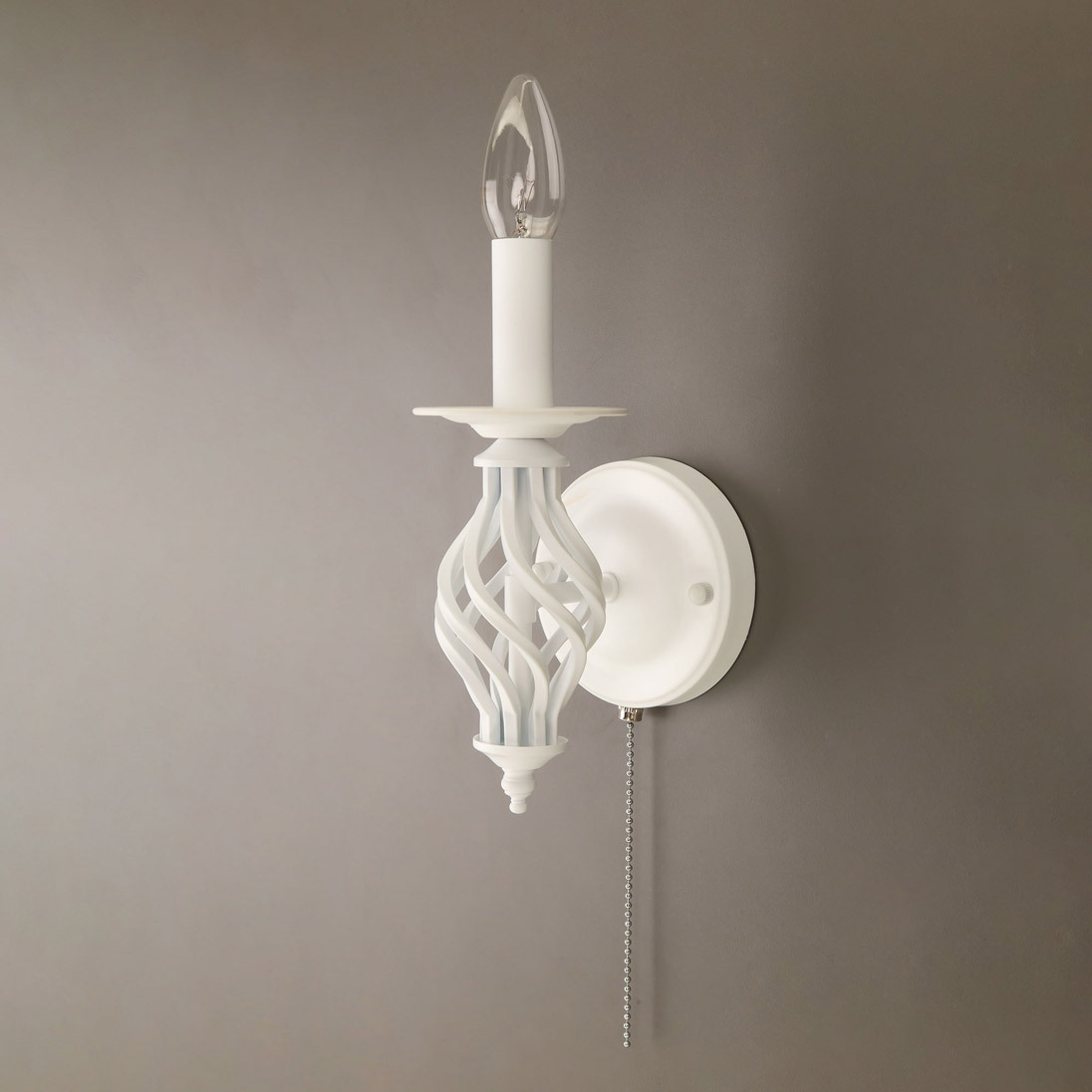 Бра настенная из коллекции «Ровена» выполнена в необычном, оригинальном дизайне - на основании под абажуром добавлен стильный винтажный элемент. Добавление этого элемента идеально позволяет привязать бра к одноименной коллекции подвесных люстр, настольных ламп и напольных торшеров. Так как стиль светильника очень интересный, то бра шикарно будут смотреться и как самостоятельные светильники в интерьере, особенно если устанавливать их по две или более. Модель выполнена из прочного металла, и окрашена в белый цвет. Такая покраска максимально универсальна, отлично смотрится, ни к чему не обязывает и не режет глаз. В комплекте поставляется один полупрозрачный белый абажур, который идеально будет рассеивать свет и создавать уют в вашей комнате. На основании светильника встроен удобный собственный выключатель. Патроны сделаны из качественного термостойкого материала, позволяющие ставить лампочки накаливания до 60 ватт включительно, энергосберегающие и светодиодные лампочки можно применять любой мощности. За счёт этого момента светильник очень яркий, площадь освещения до 3 квадратных метров.