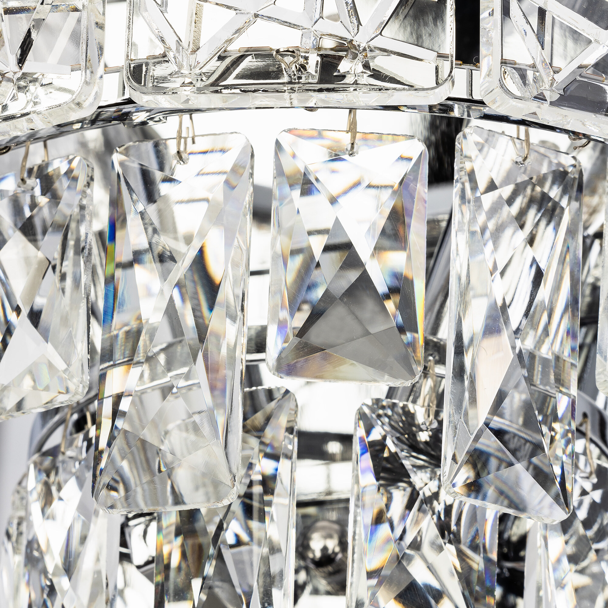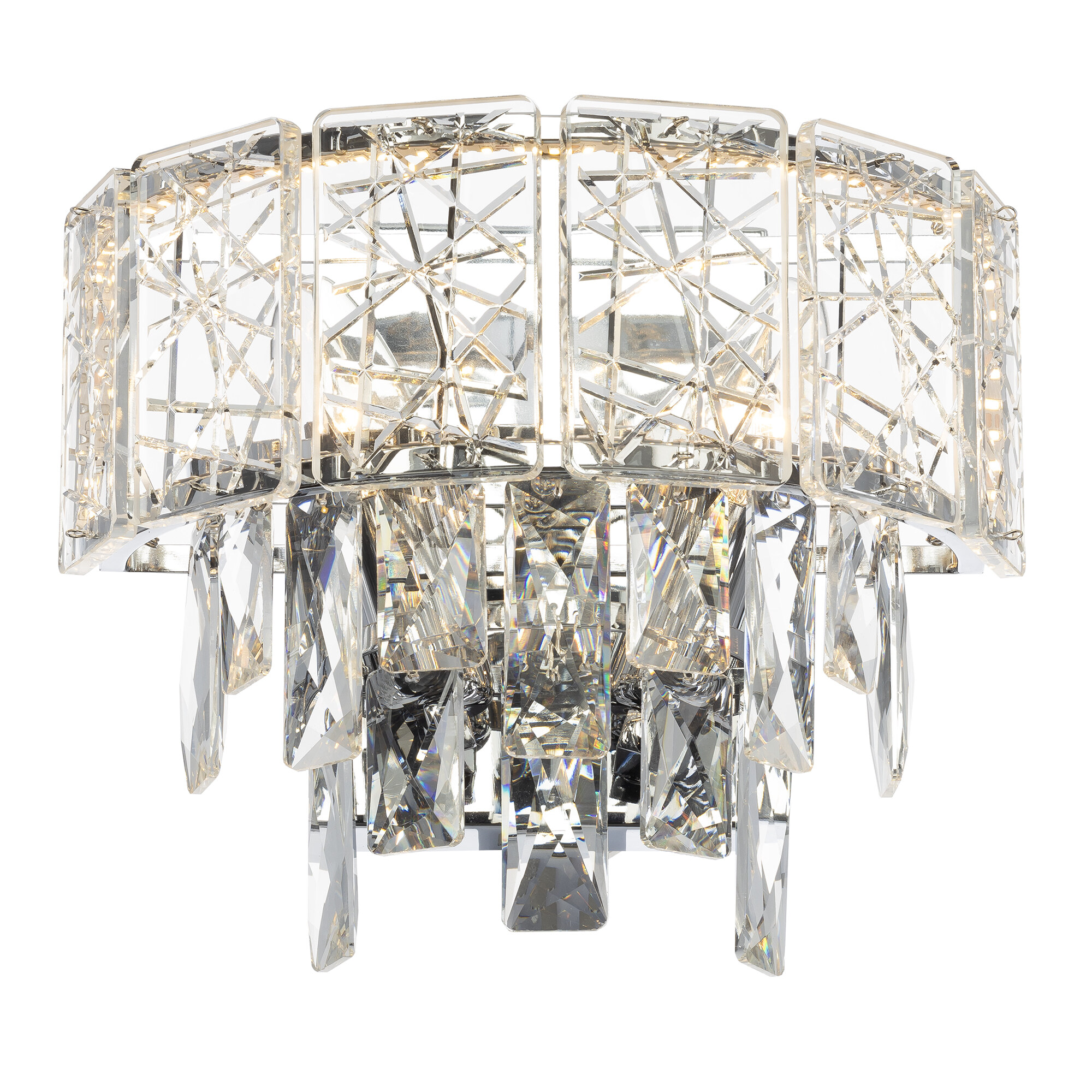 Хрустальный настенный светильник Citilux SAGRADA CL317321 выполнен в стиле современной классики. Корпус металлический с гладким хромированным покрытием. Хрустальные элементы двух разных форм – прямоугольные пластины с алмазным гранением и кристально прозрачные подвески с современной огранкой — создают неповторимую игру света и придают бра роскошный вид.