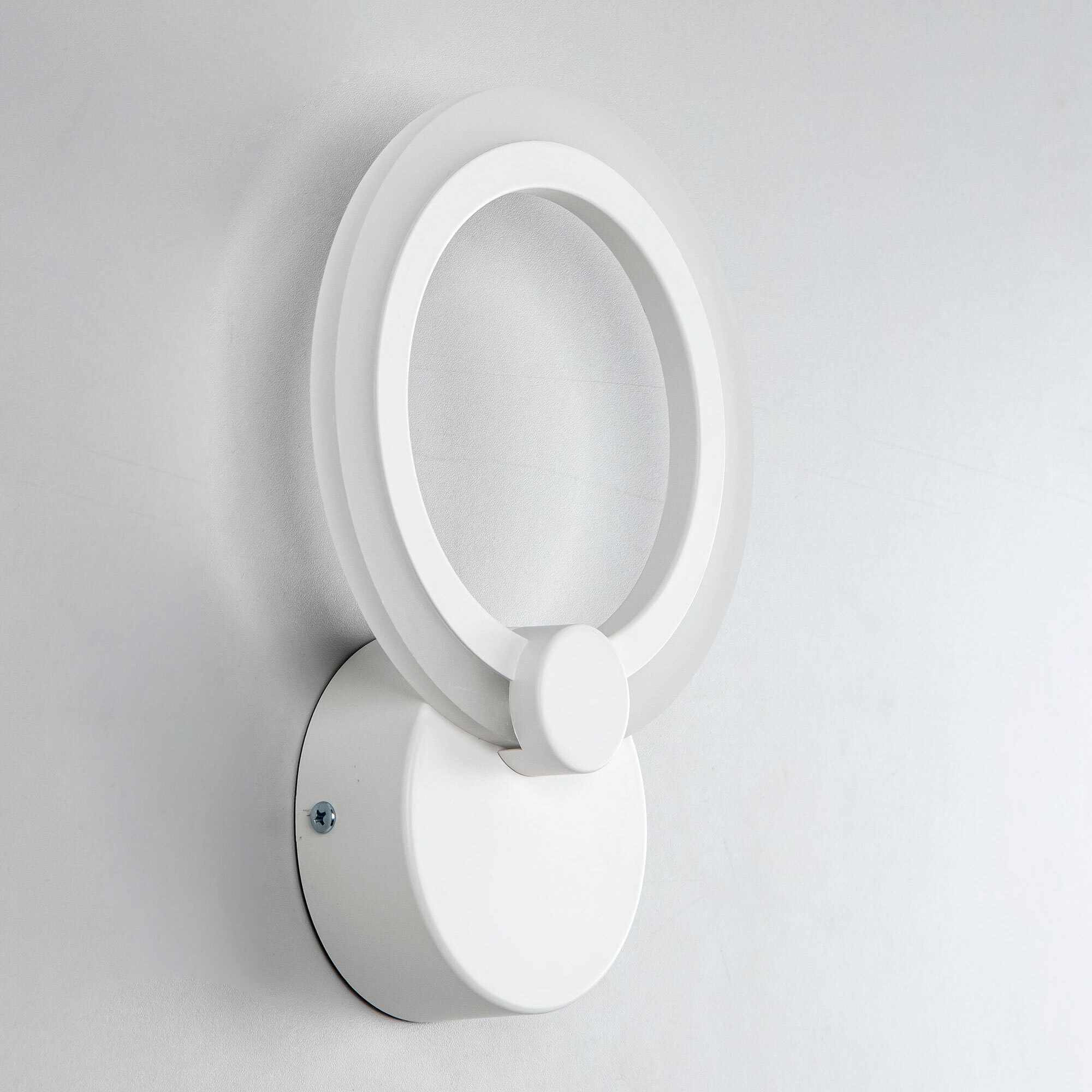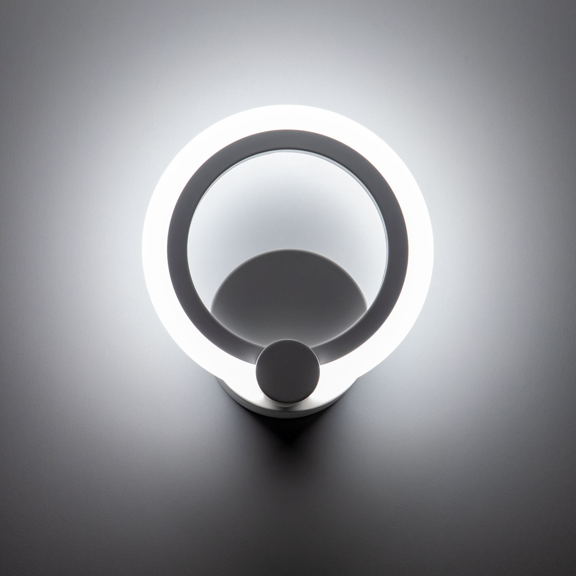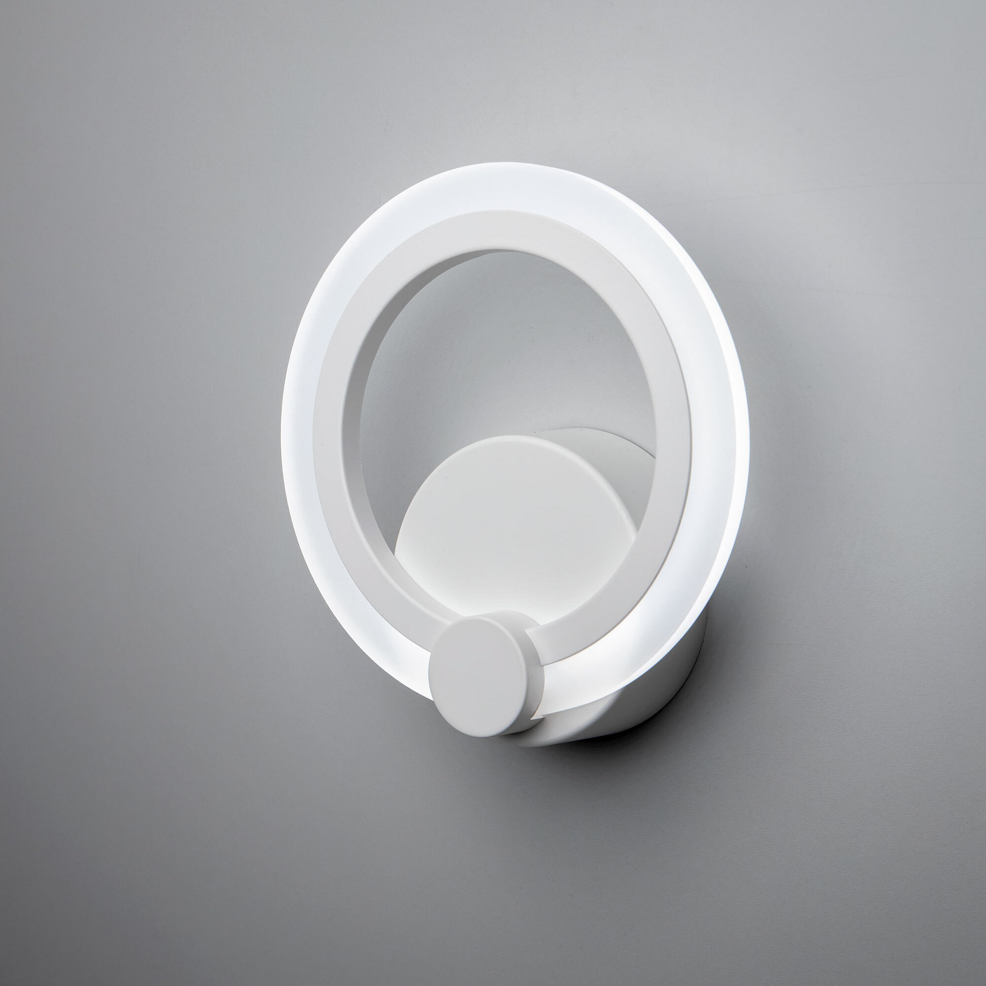 Светодиодный настенный светильник Citilux Сента 237B310 белого цвета с круглым основанием и светодиодным модулем-плафоном в форме кольца. Корпус светильника из прочного полимера. Мощность 16Вт, световой поток 1300Лм, освещаемая площадь около 5м². Высота 19,5см, ширина 18см, глубина 6см. Предустановлено 4 режима освещения, с управлением обычным настенным выключателем.
