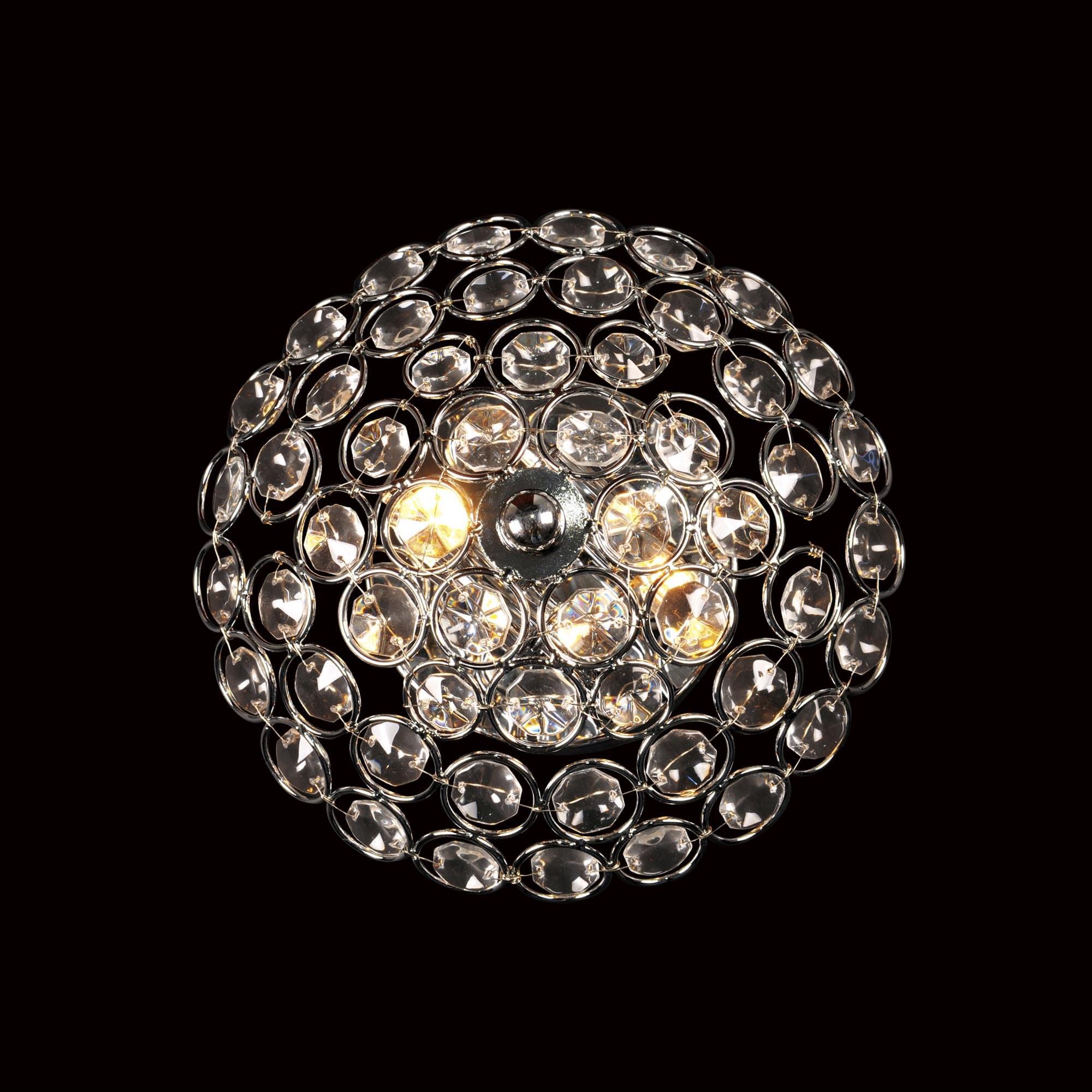 Настенное хрустальное бра Citilux Sharm CL316321 — это идеальное решение для любого интерьера от классики до модерна. Каркас изделия — металлический, с хромированным покрытием. Несколько рядов металлических колец с хрустальными кристаллами внутри образуют своеобразную полусферу, создавая причудливые радужные переливы света.