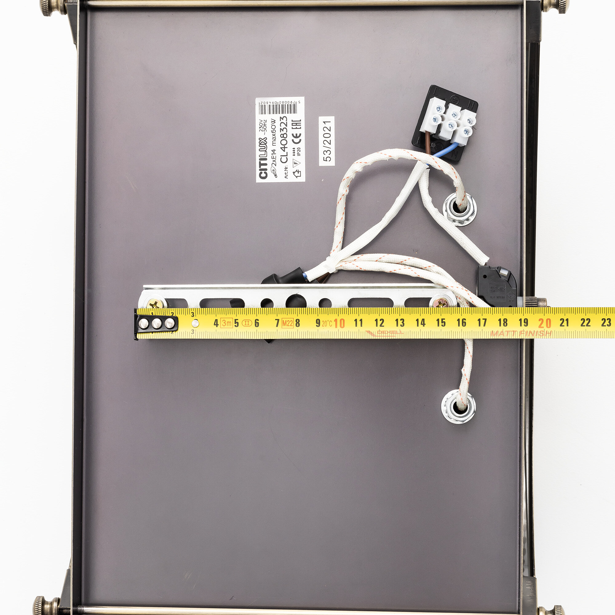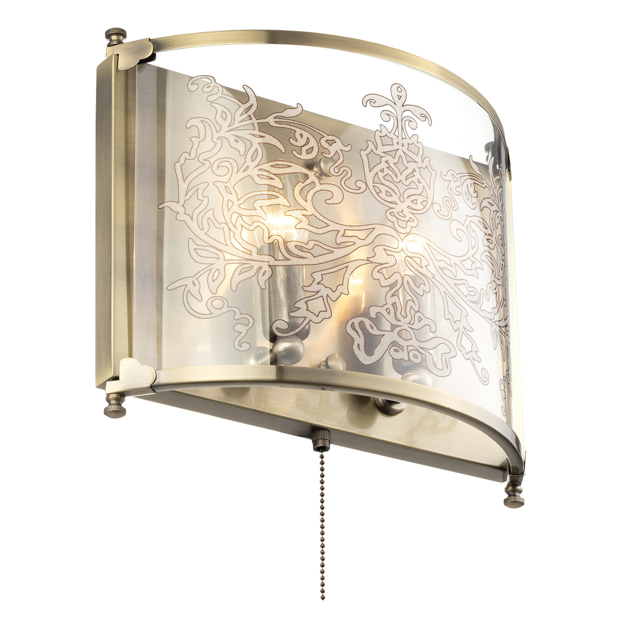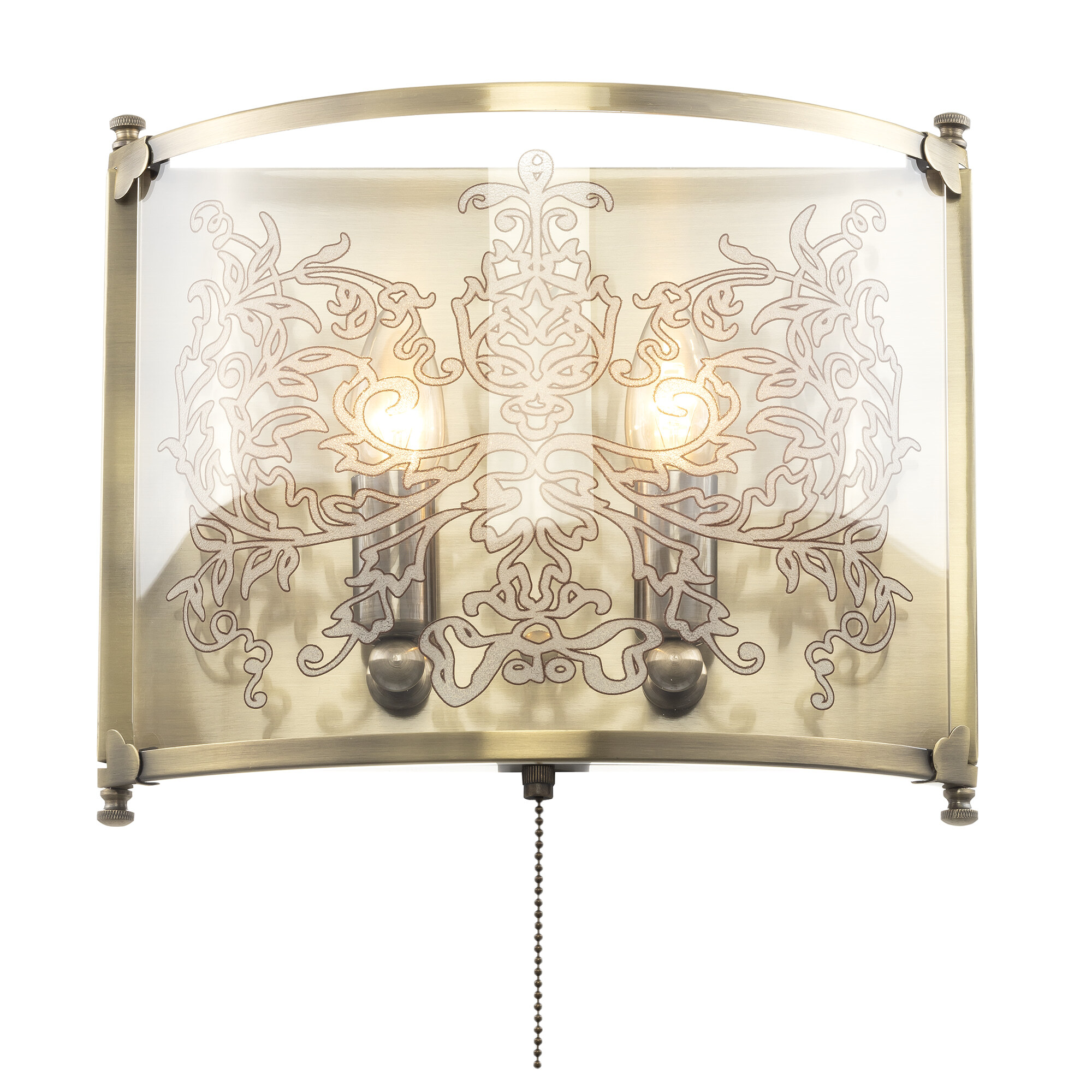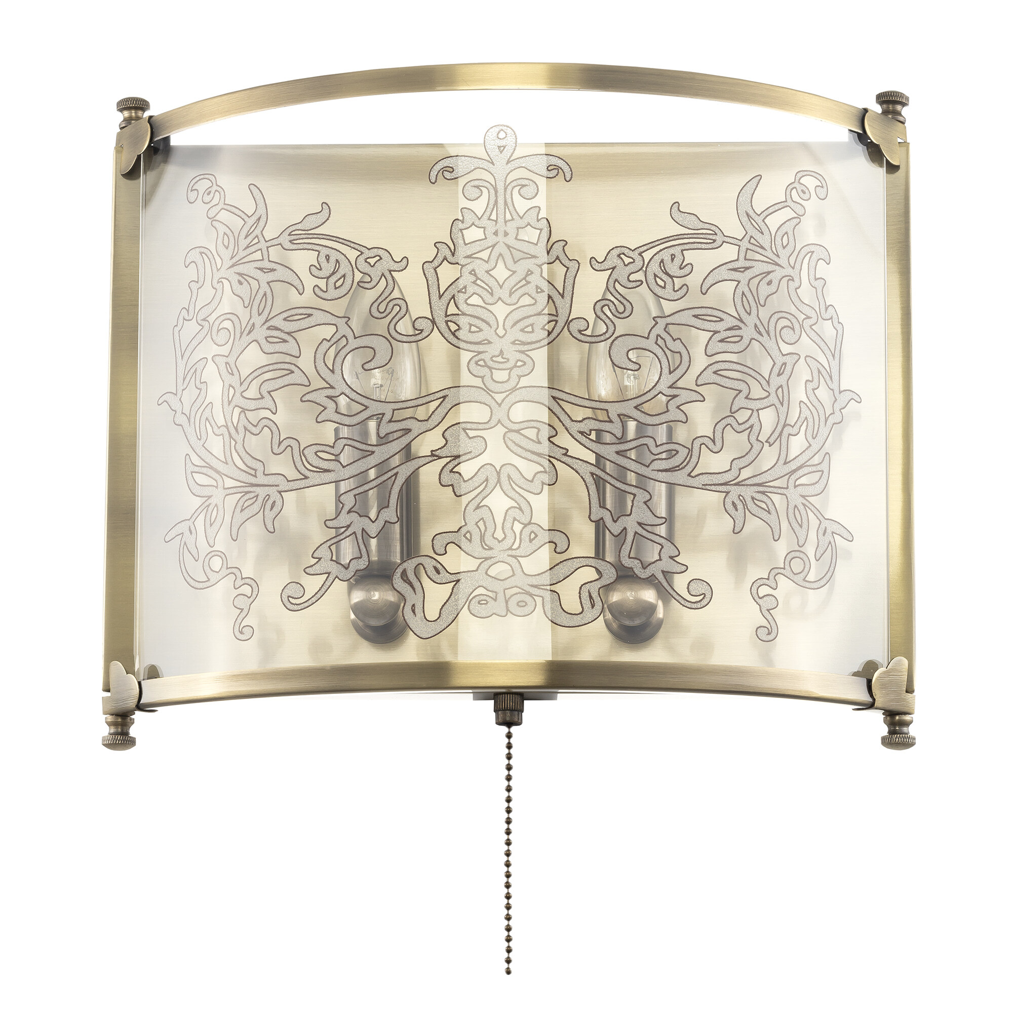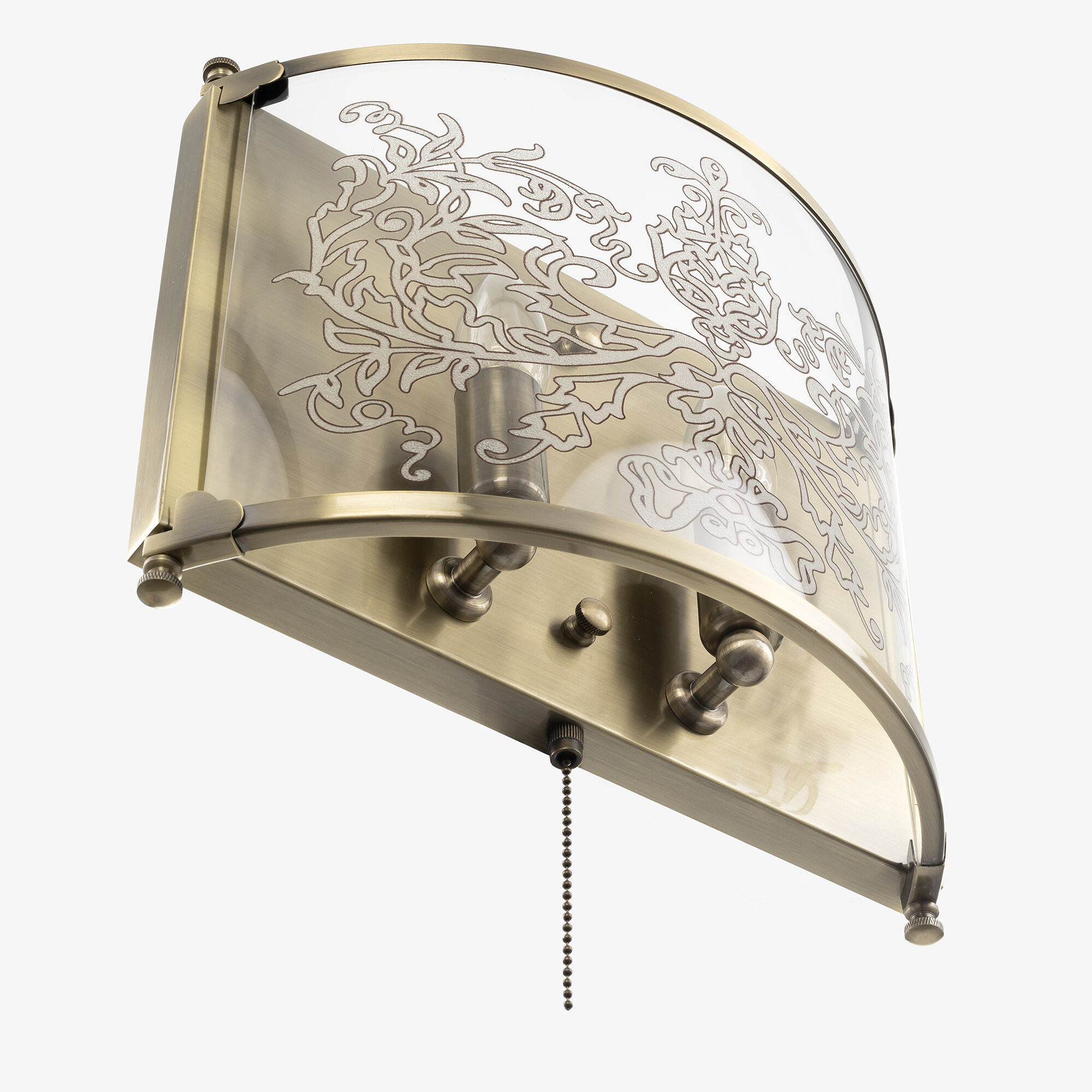 Светильник рассчитан на 2 лампочки с цоколем E14 (в комплект не входят). Выключатель расположен на корпусе.