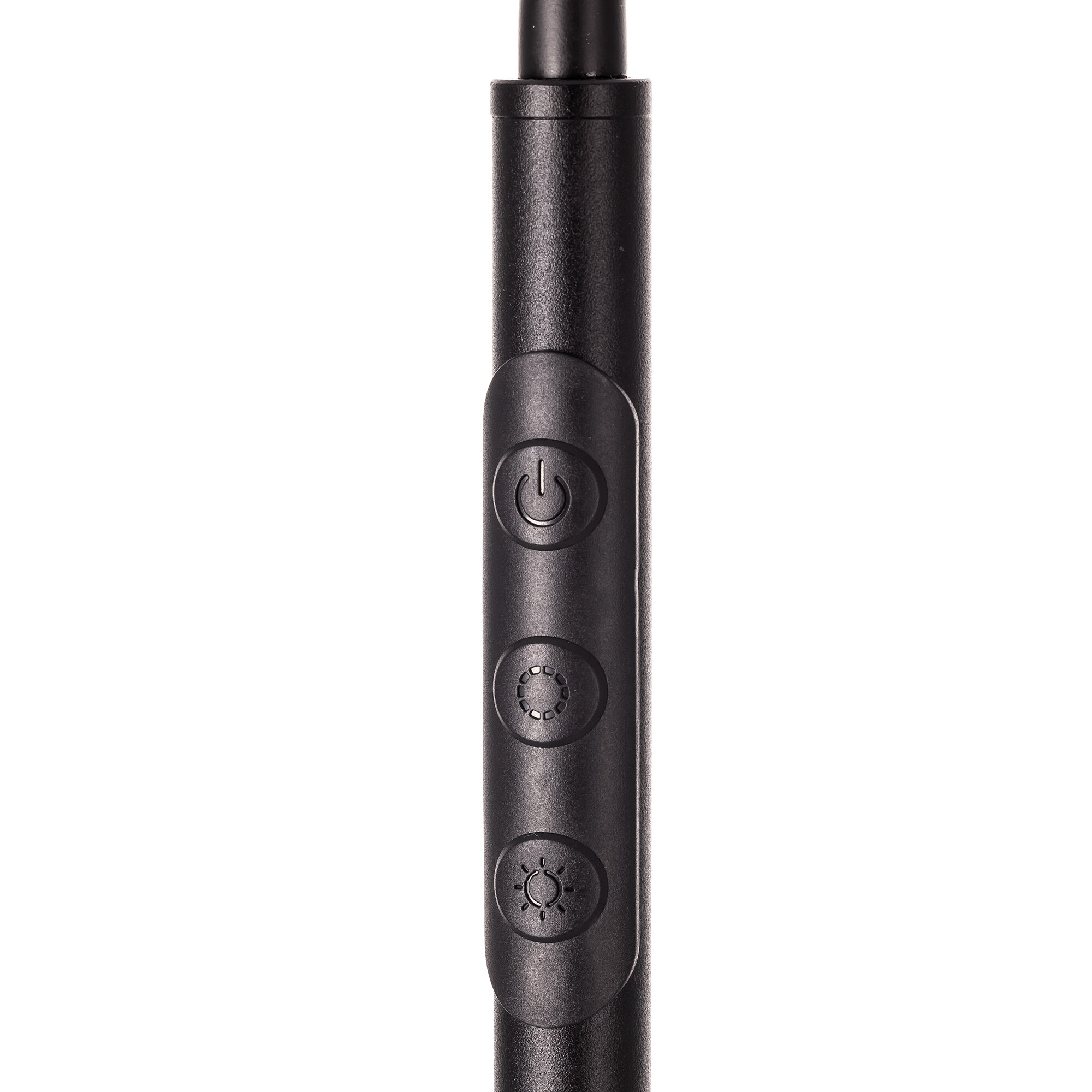 Светодиодный напольный светильник с сенсорным управлением Citilux Alex CL804051 выполнен в современном стиле. Корпус металлический, цвет чёрный матовый. Основание круглое, стойка состоит из четырёх частей, которые соединяются между собой с помощью резьбового соединения. Верхняя гибкая часть с блоком управления и светодиодным модулем-плафоном.
