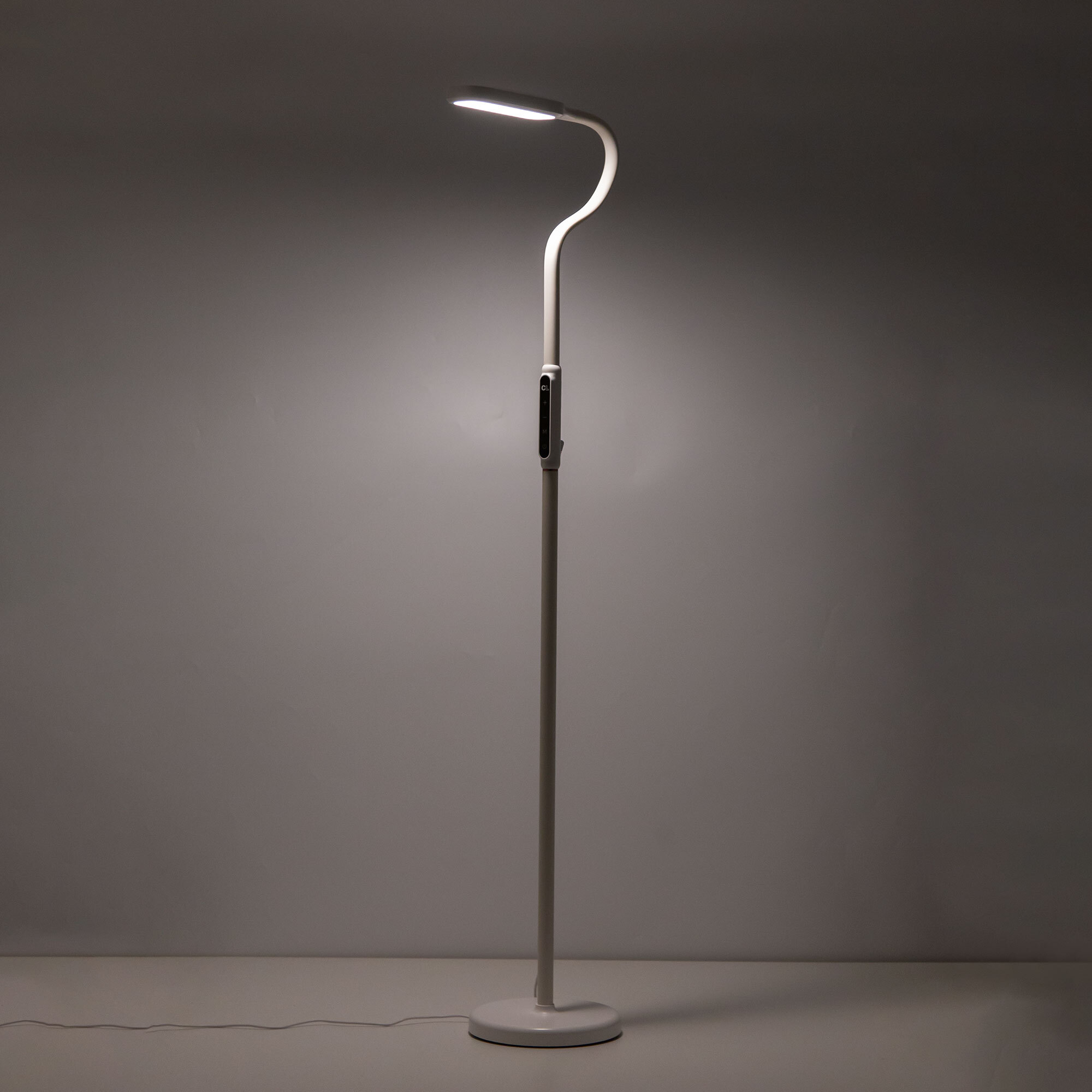 Светодиодный напольный торшер Citilux Марк CL804020 выполнен в современном стиле, цвет белый. Круглое основание светильника изготовлено из ударопрочного полимера. Стойка металлическая, состоит из трёх частей, которые соединяются между собой с помощью резьбового соединения. Две нижние части по 40 см. Верхняя часть с блоком управления, гибкой «шеей» и светодиодным модулем-плафоном. В текущей версии изготовления, торшер можно собрать в двух вариантах, «стандартный торшер» и «маленький торшер». Мощность 13Вт. Управление сенсорное, доступно: ступенчатая регулировка яркости (5 режимов), цветовой температуры – 2800 - 4000 – 5500 Кельвин (тёплый, нейтральный, холодный свет). Есть таймер выключения, с задержкой 60 минут. Торшер Citilux Марк CL804020 прекрасный вариант для освещения рабочего стола офисных работников, студентов и школьников. Подойдёт для освещения зоны отдыха, возле дивана или кресла.Citilux CL80402 MARK: Вдохновение в каждом луче.