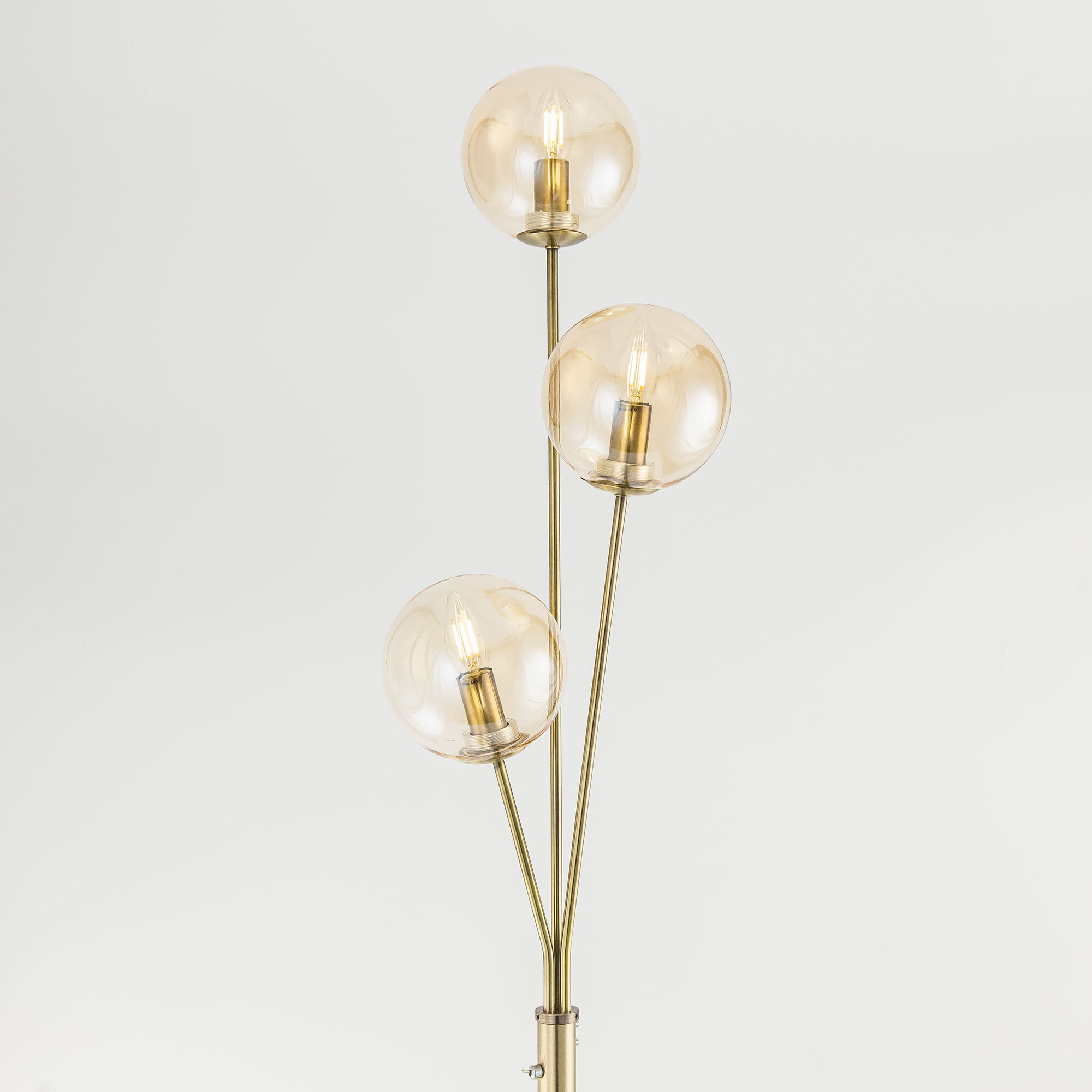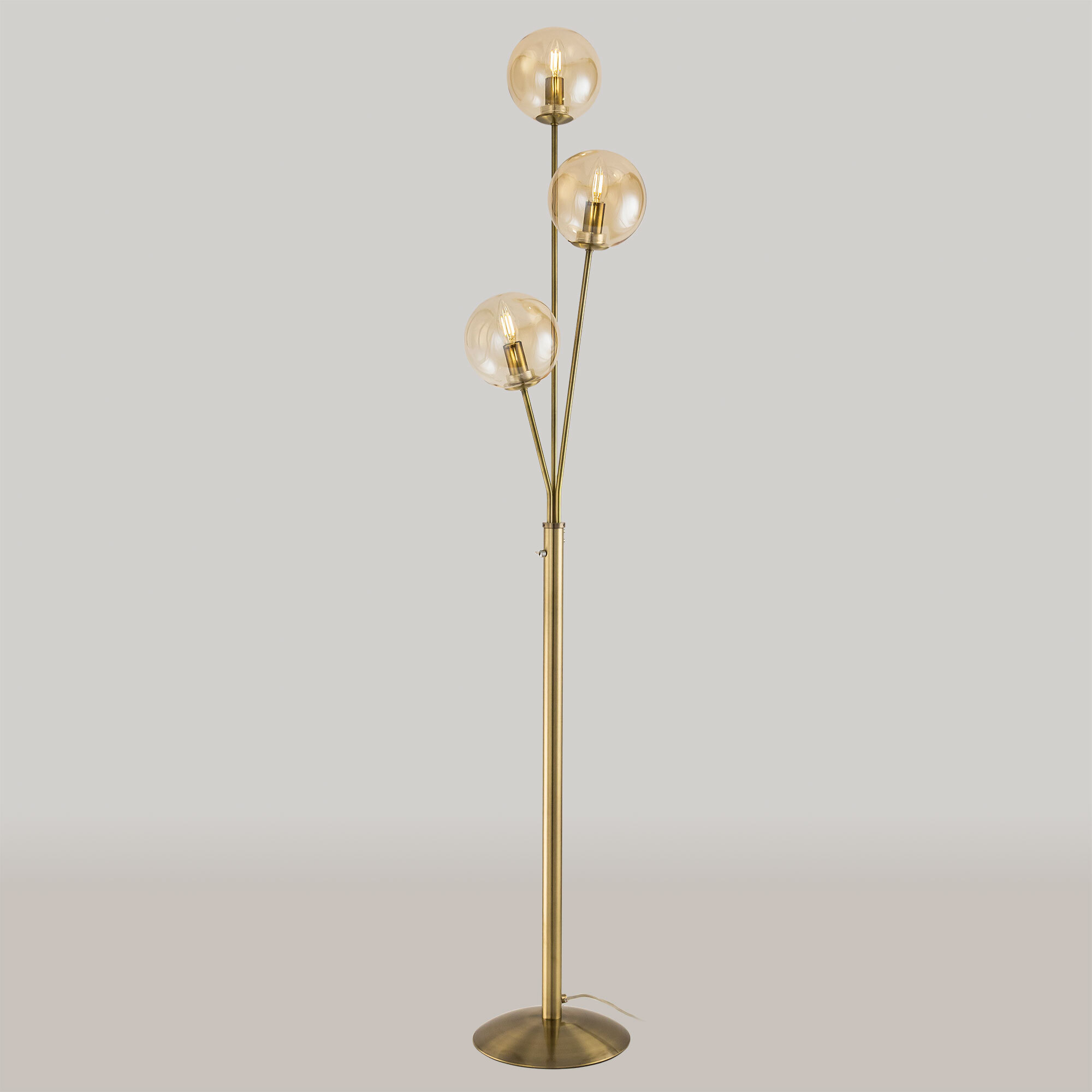 Торшер Томми CL102933 с тремя плафонами шарами. Корпус модели изготовлен из металла, цвет бронза. Выключатель расположен на стойке торшера. Диаметр основания 25 см, высота 1,6 метра. Сетевой провод прозрачный длиной 1,85 метра. Плафоны стеклянные прозрачные тонированные оттенка шампань. В этом напольном светильнике используются лампы в форме свечи с цоколем Е14, максимальная мощность ламп накаливания 40 Вт. Площадь освещения около 7 кв. метров. Светодиодные лампы можно использовать большей мощности. Трехрожковый торшер Томми CL102933 отлично подойдет для помещений, оформленных в теплых тонах.Citilux CL102 TOMMY: Вдохновение в каждом луче.