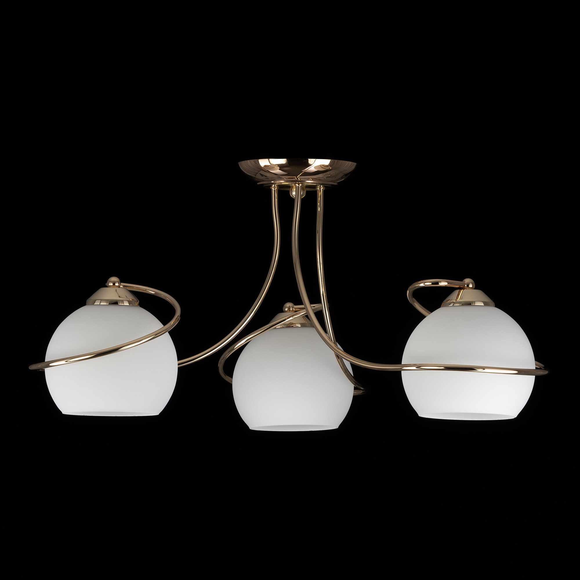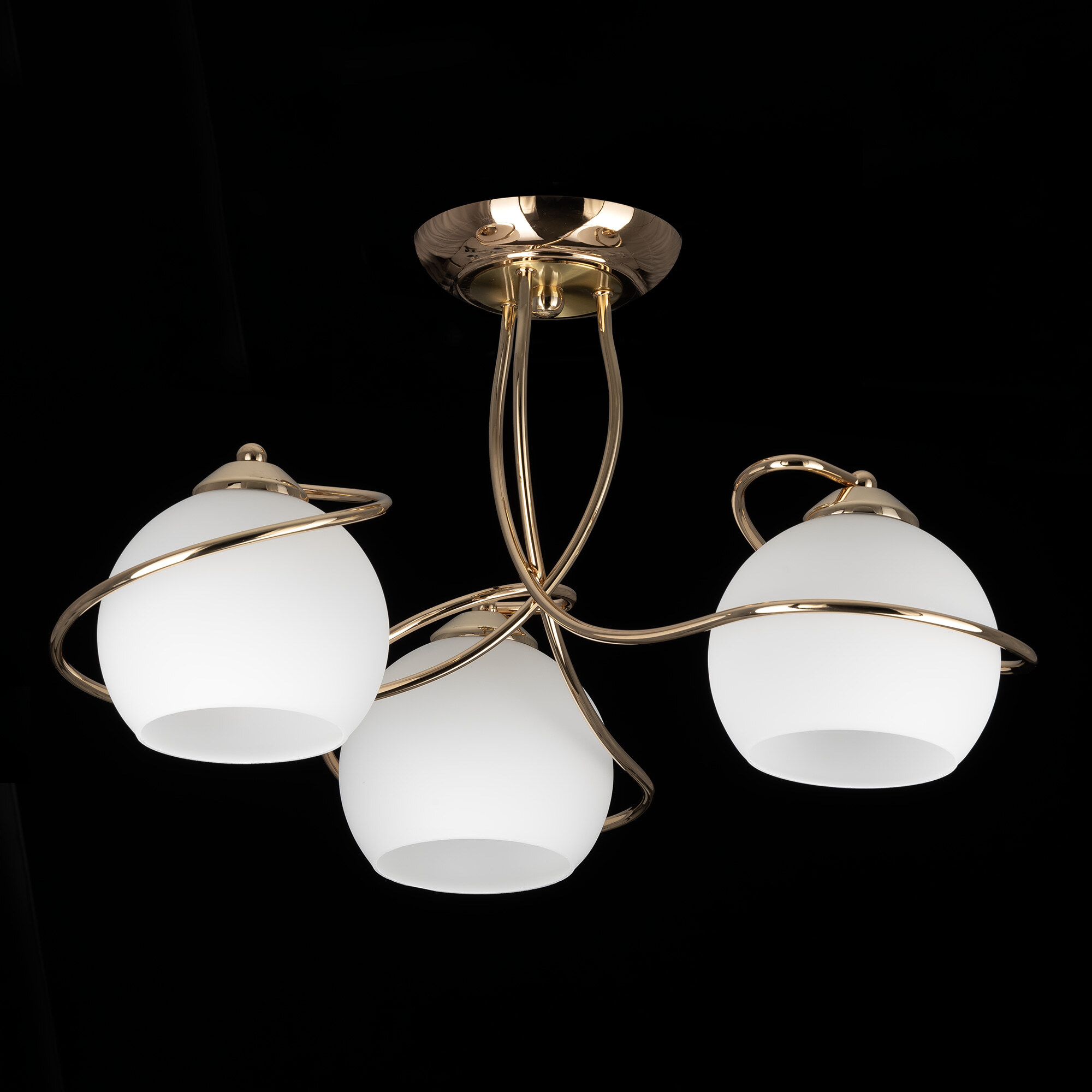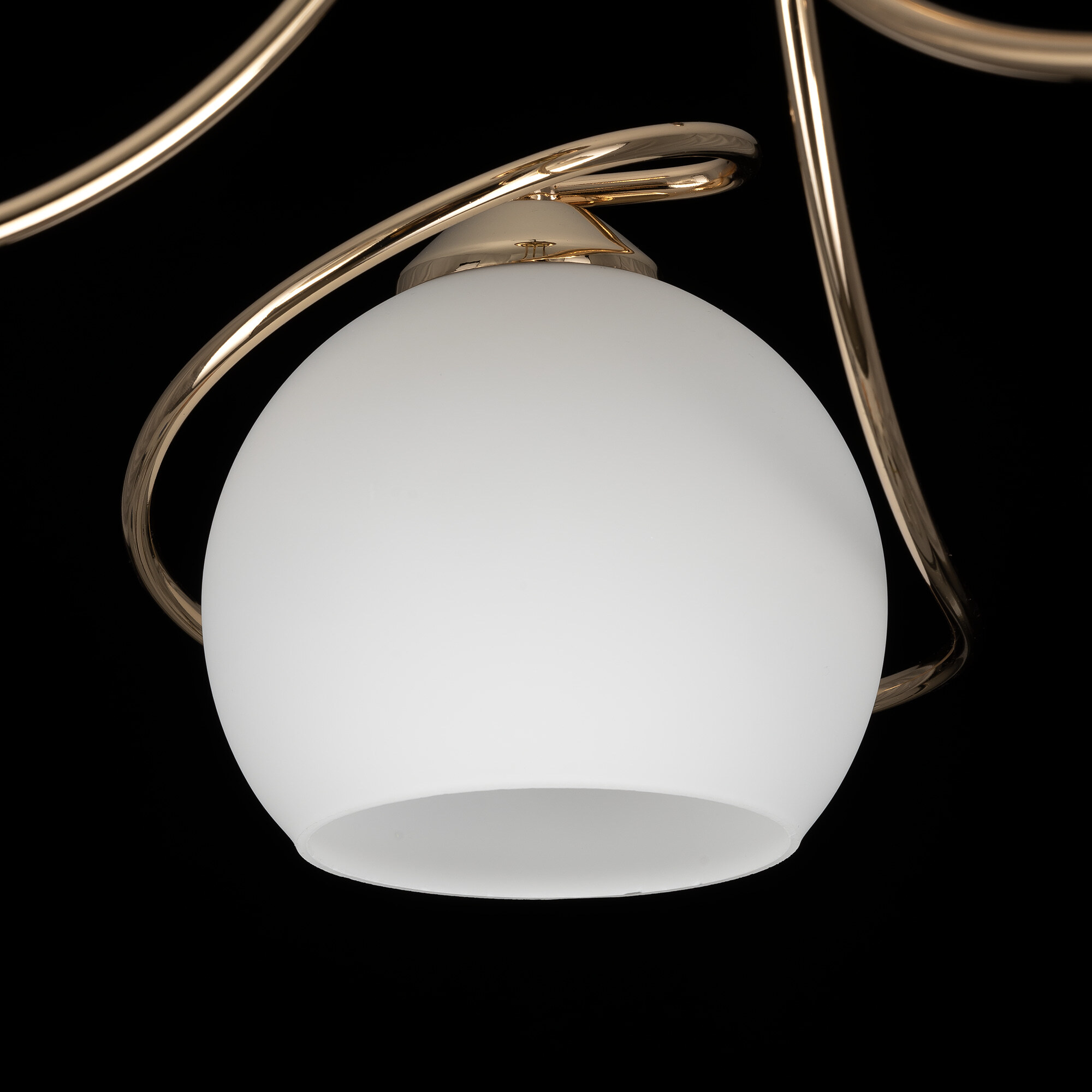 Люстра потолочная Citilux Layma CL155132 в современном стиле. Корпус люстры металлический, золотистого оттенка, витые, причудливо изгибающиеся рожки. Плафоны — из белоснежного выдувного стекла, в форме усеченной сферы.