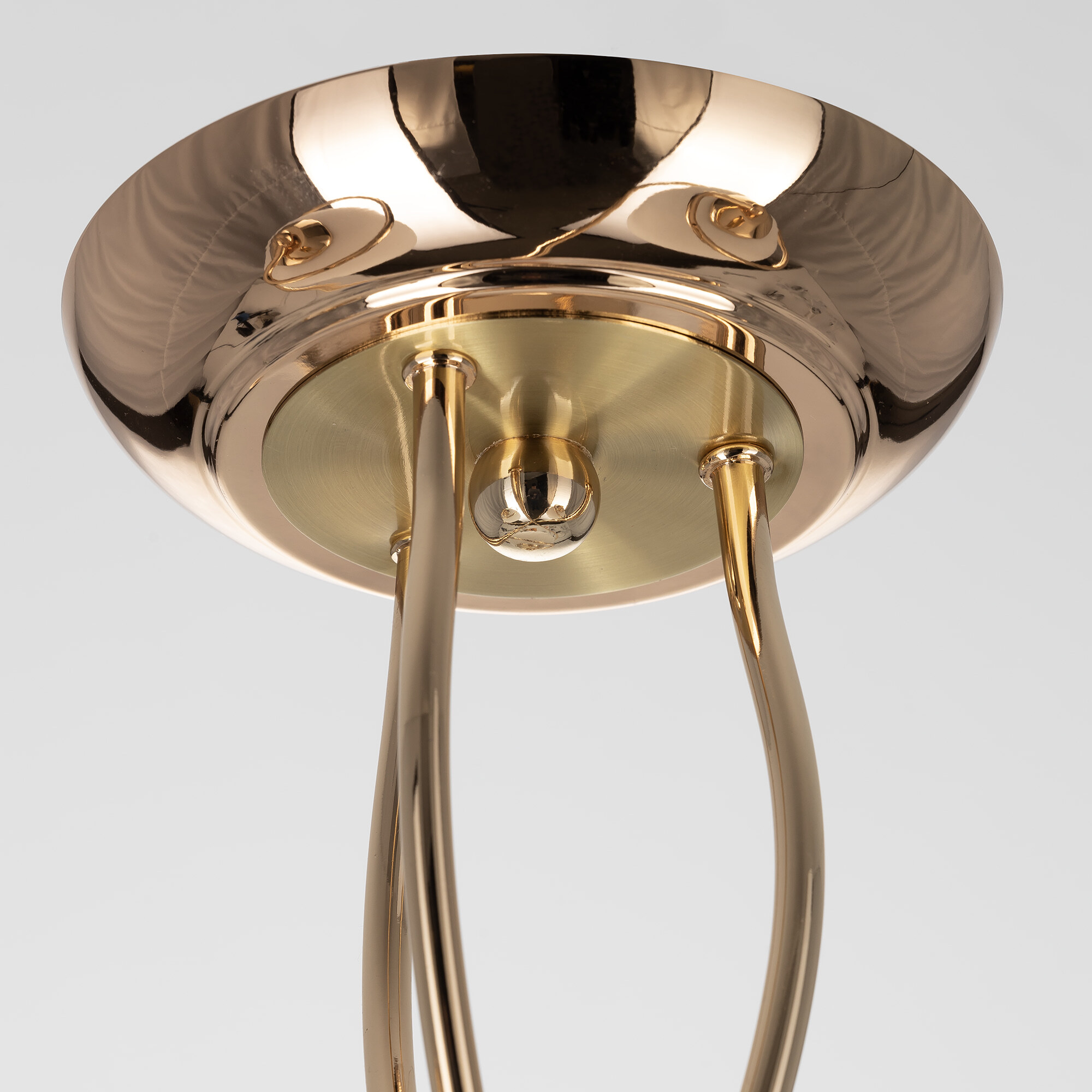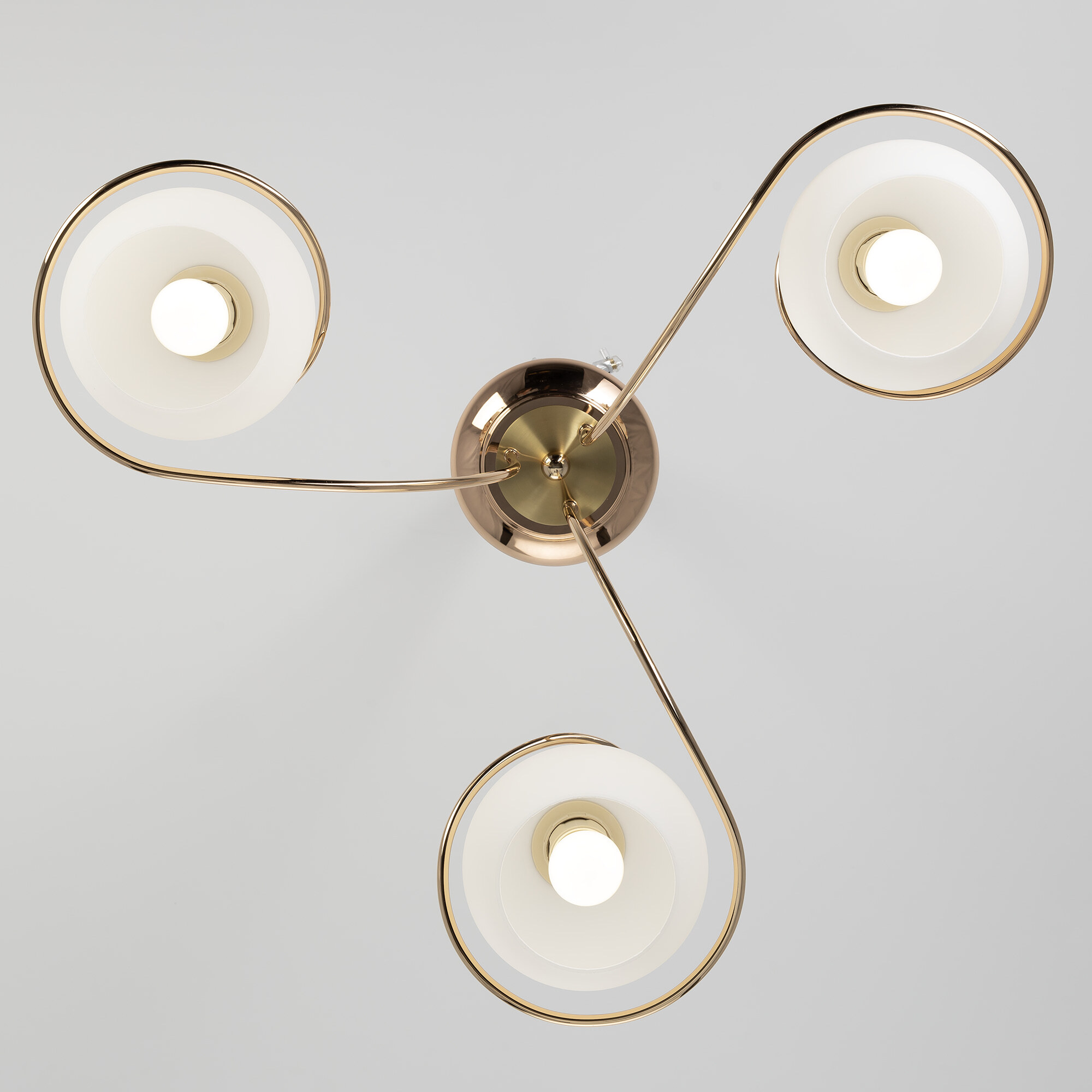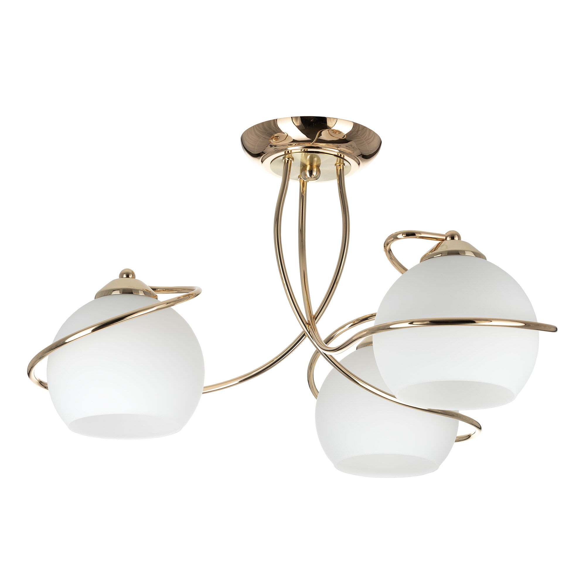 Люстра потолочная Citilux Layma CL155132 в современном стиле. Корпус люстры металлический, золотистого оттенка, витые, причудливо изгибающиеся рожки. Плафоны — из белоснежного выдувного стекла, в форме усеченной сферы.