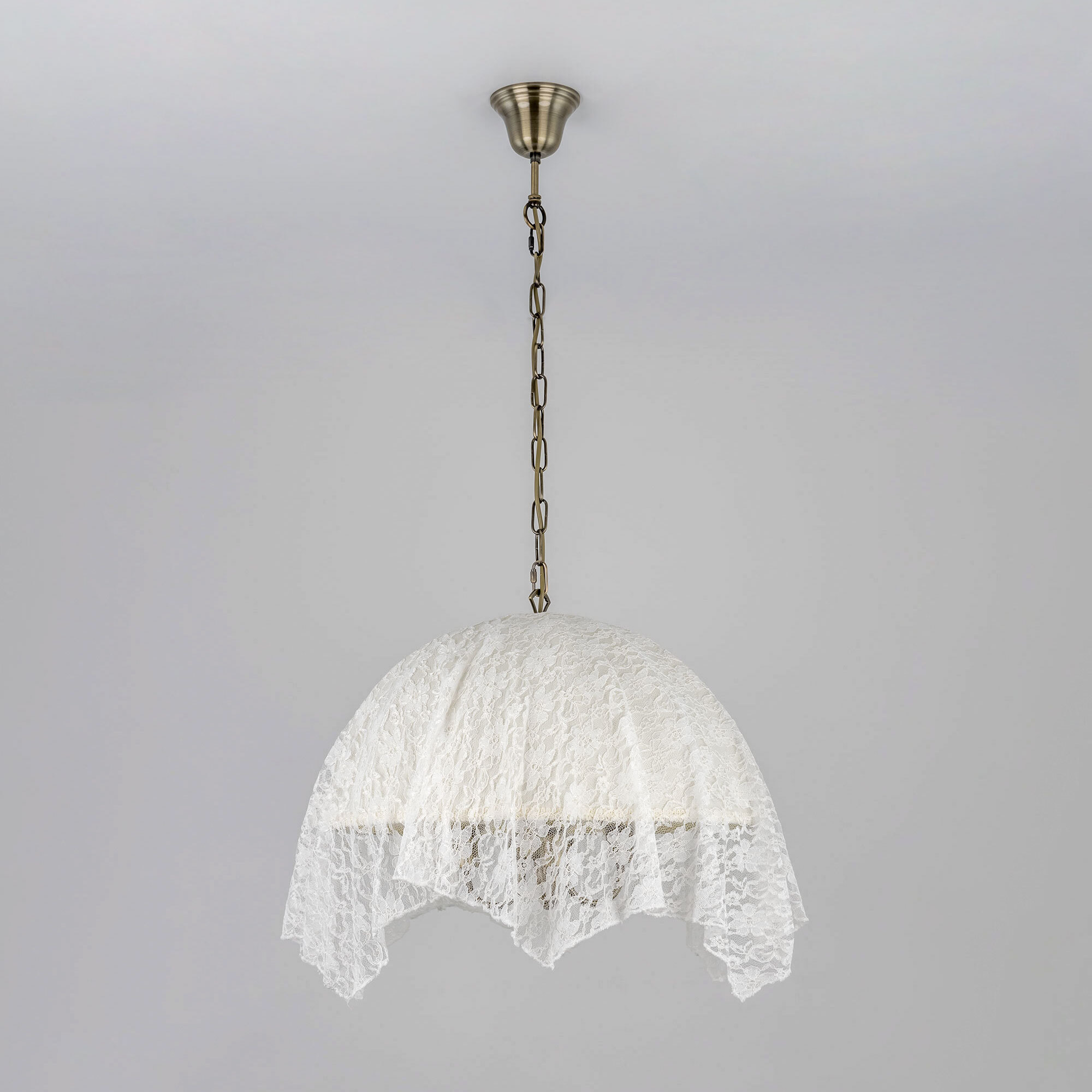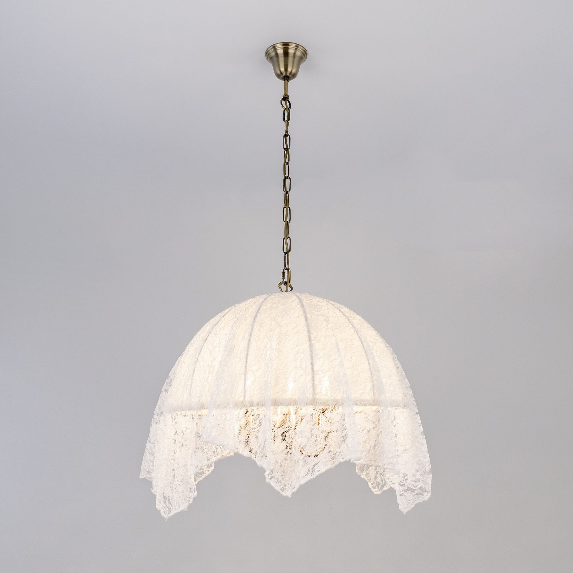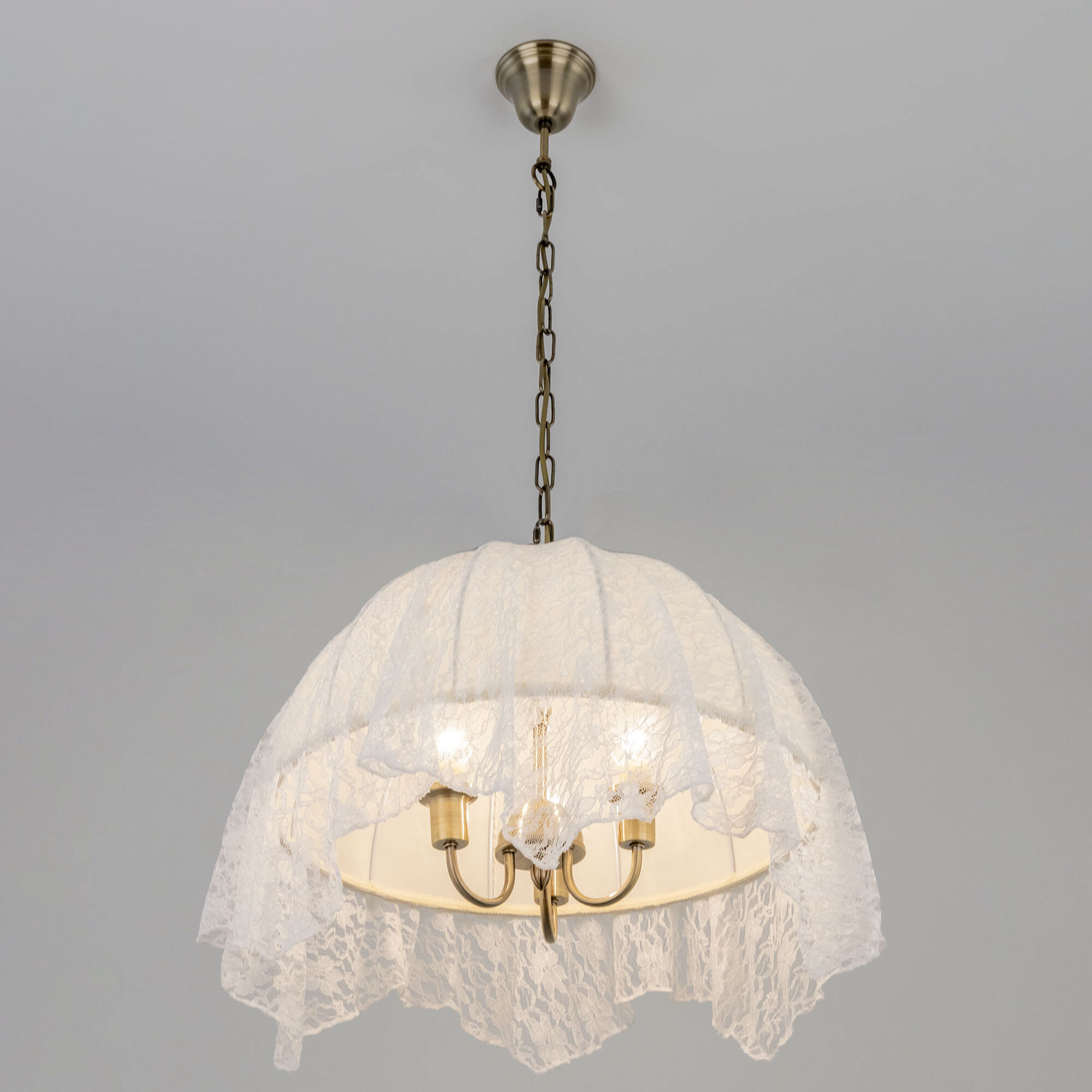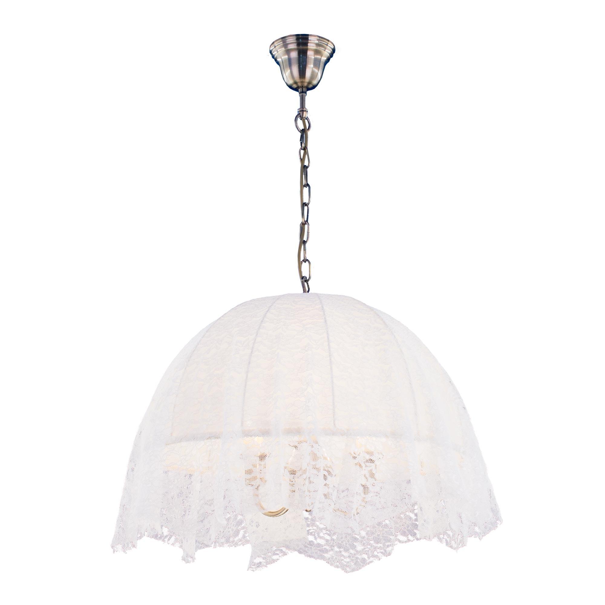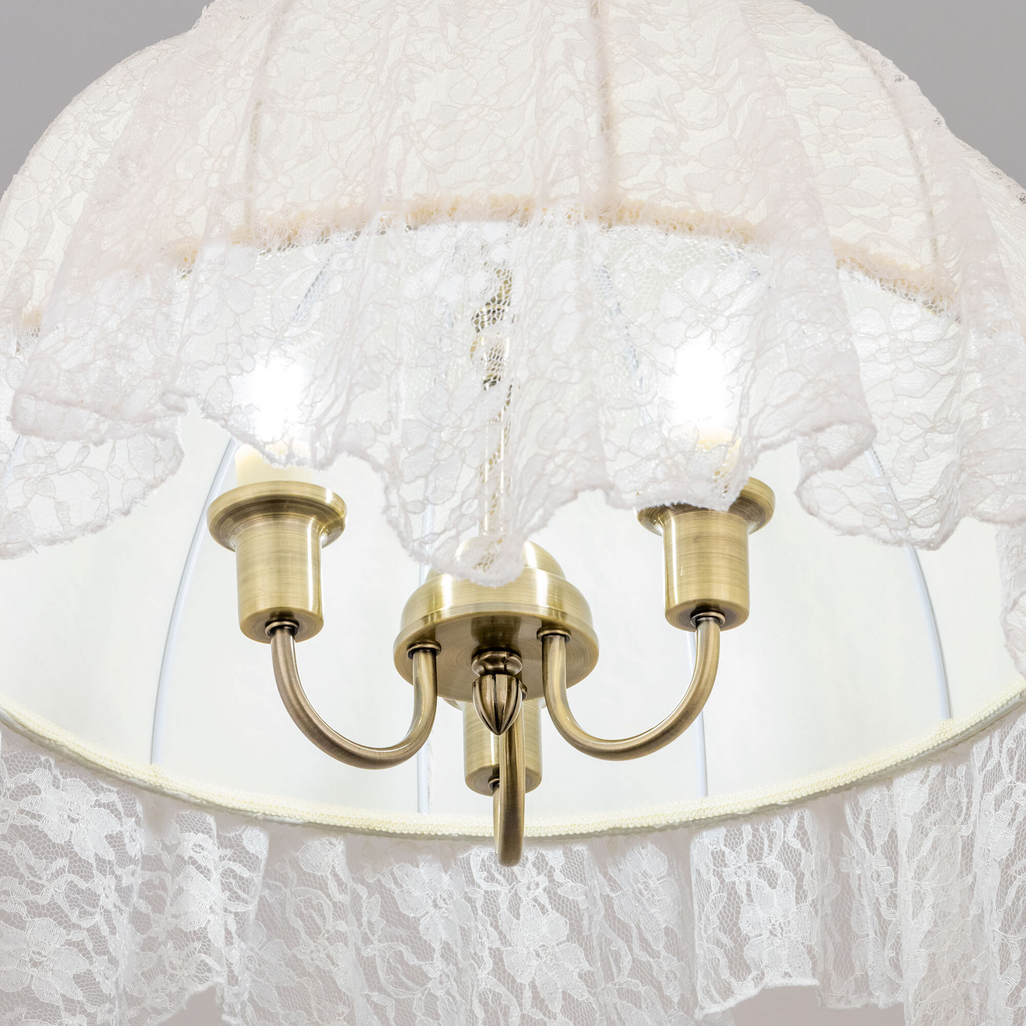 Подвесная трёхрожковая люстра на цепи Citilux Базель CL407134 с классическим абажуром. Корпус светильника металлический, цвет бронза. Абажур тканевый, сливочного цвета, декорирован белым кружевом с изящным узором. Модель подойдёт для освещения уютной гостиной, кухни или веранды в загородном доме или на даче. Поможет создать комфортную атмосферу в кафе и ресторане, великолепно выглядит над столом. Подходит для всех типов потолков, в том числе натяжных, тип крепления – крючок. В изделии используются лампы с цоколем Е14, максимальной мощностью для ламп накаливания 60Вт, светодиодные лампы можно устанавливать более яркие. Высота регулируется от 50 до 135см, диаметр 51см, осветит около 9м².