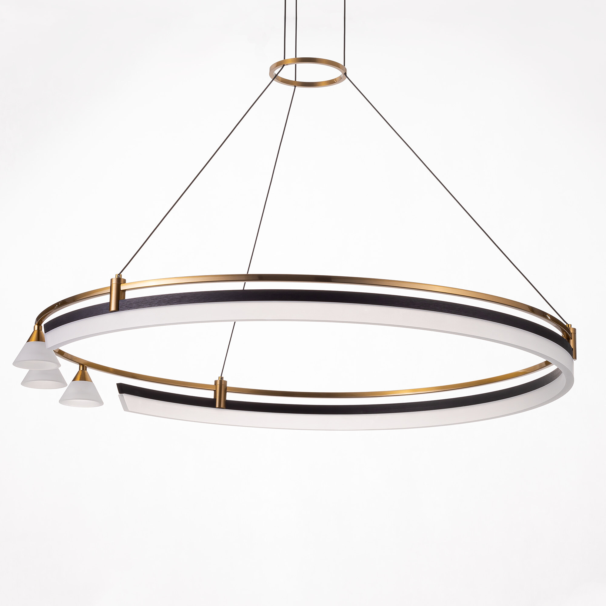 Подвесная светодиодная кольцевая люстра Citilux HELLY CL211082 является ярким примером элегантного сочетания современных технологий и изысканного дизайна. Корпус выполнен из металла, удачно сочетая благородный оттенок бронзы с глубоким чёрным цветом, что придаёт люстре стильный и утончённый вид. Оптический полимерный рассеиватель обеспечивает равномерное и мягкое освещение, создавая уютную атмосферу в любом помещении. Асимметрично расположенные плафоны подчёркивают оригинальный дизайн модели.