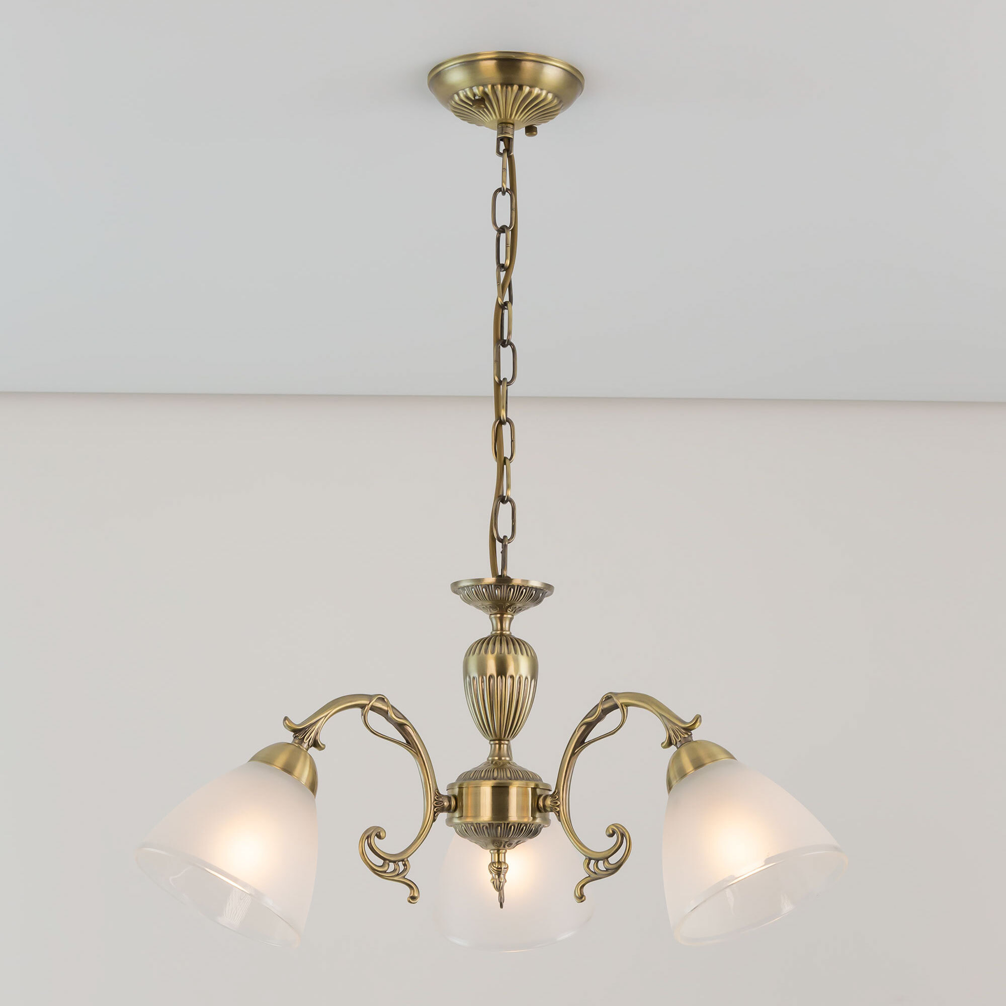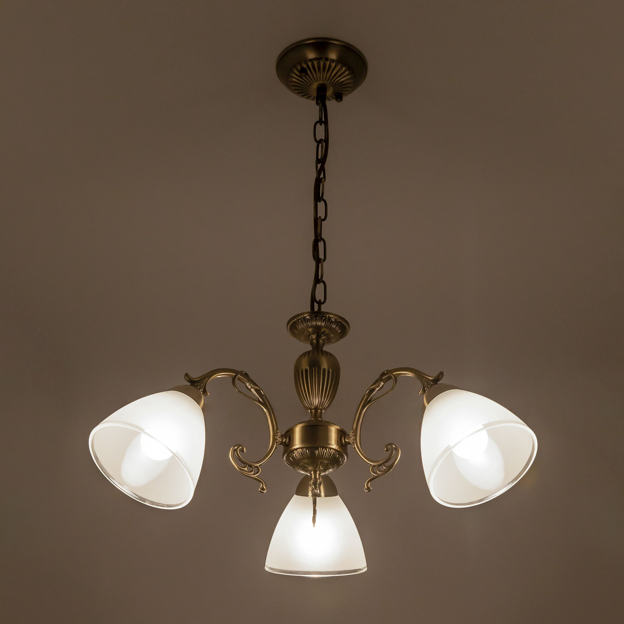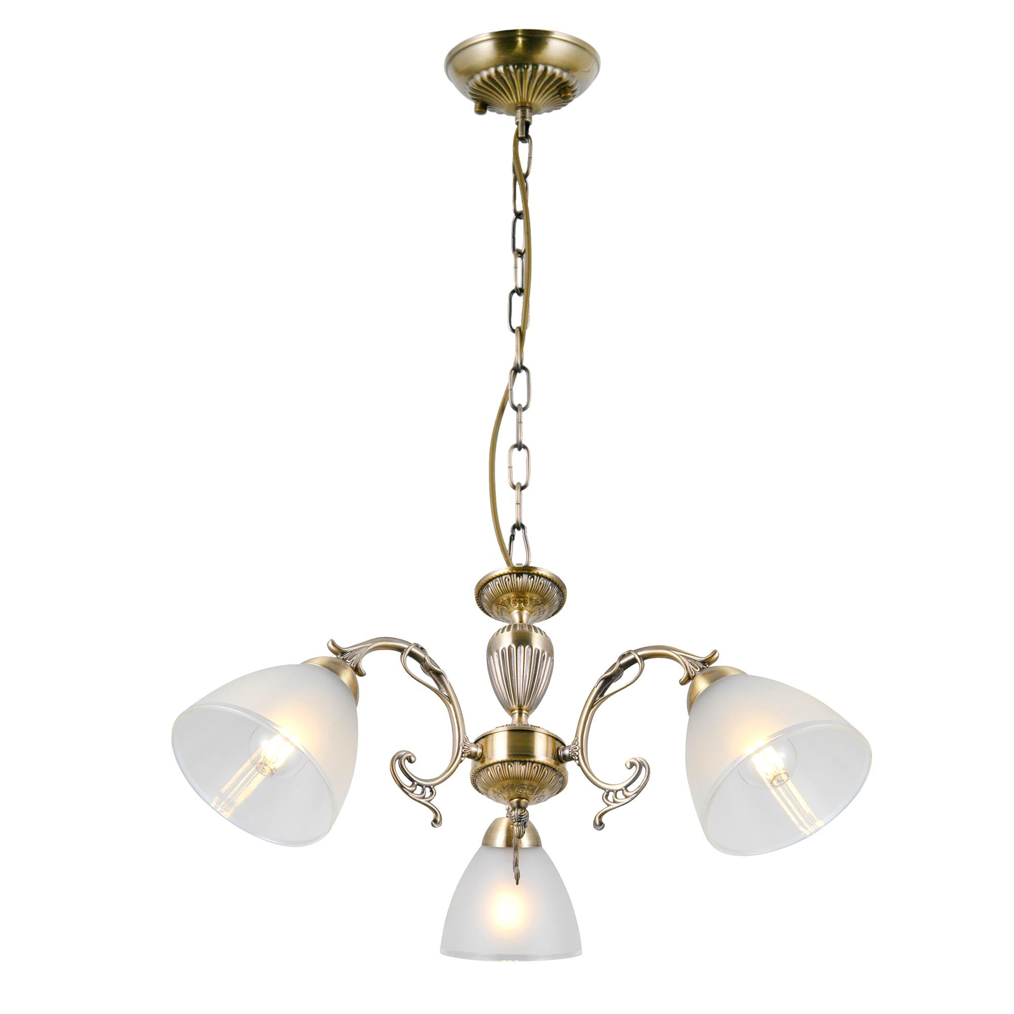 Люстра трехрожковая Citilux Латур CL413231 выполнена в классическом стиле. Корпус светильника металлический, с литыми рожками, цвет бронза. Плафоны стеклянные, полуматовые с утончённой прозрачной окантовкой. Люстра поставляется в виде комплекта для самостоятельной сборки, с подробной инструкцией. Из данного комплекта, можно собрать подвесную модель с плафонами, направленными вверх, дающую мягкий отраженный свет или более яркий вариант с плафонами вниз. Высота люстры на цепи 70 см, прекрасный выбор для комнат с высокими потолками. Если в помещении низкие потолки, люстру можно собрать вообще без цепи, как потолочную, высотой всего 27 см. Тип крепления к потолку – планка. Более того, на стадии сборки, вы можете подключить люстру для работы, как с одноклавишным, так и с двухклавишным выключателем. В модели используются 3 лампы с цоколем Е27 и максимальной мощностью для ламп накаливания 75Вт. Суммарная мощность 225 Вт. Светодиодные лампы можно использовать большей яркости.Citilux CL413 LATUR: Вдохновение в каждом луче.