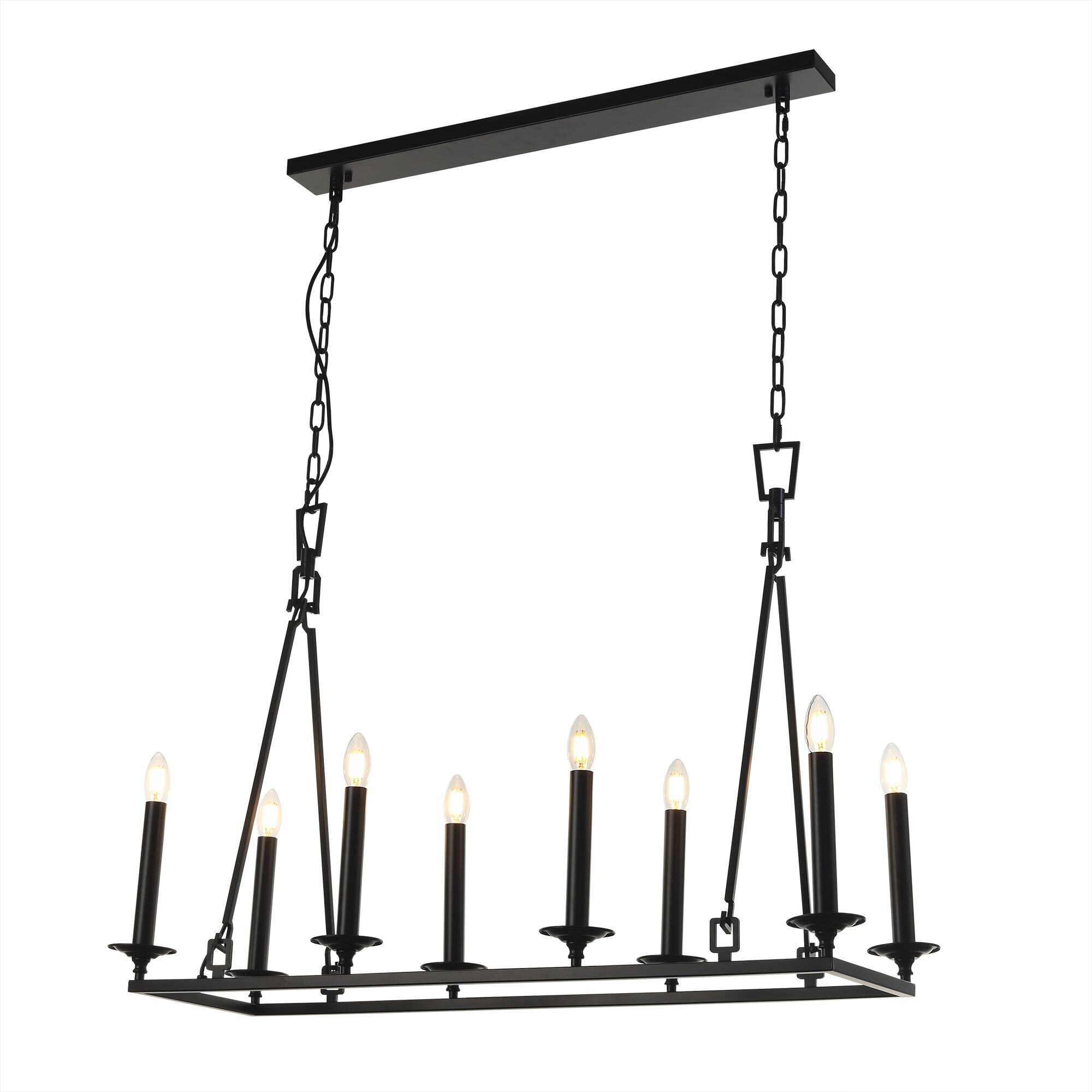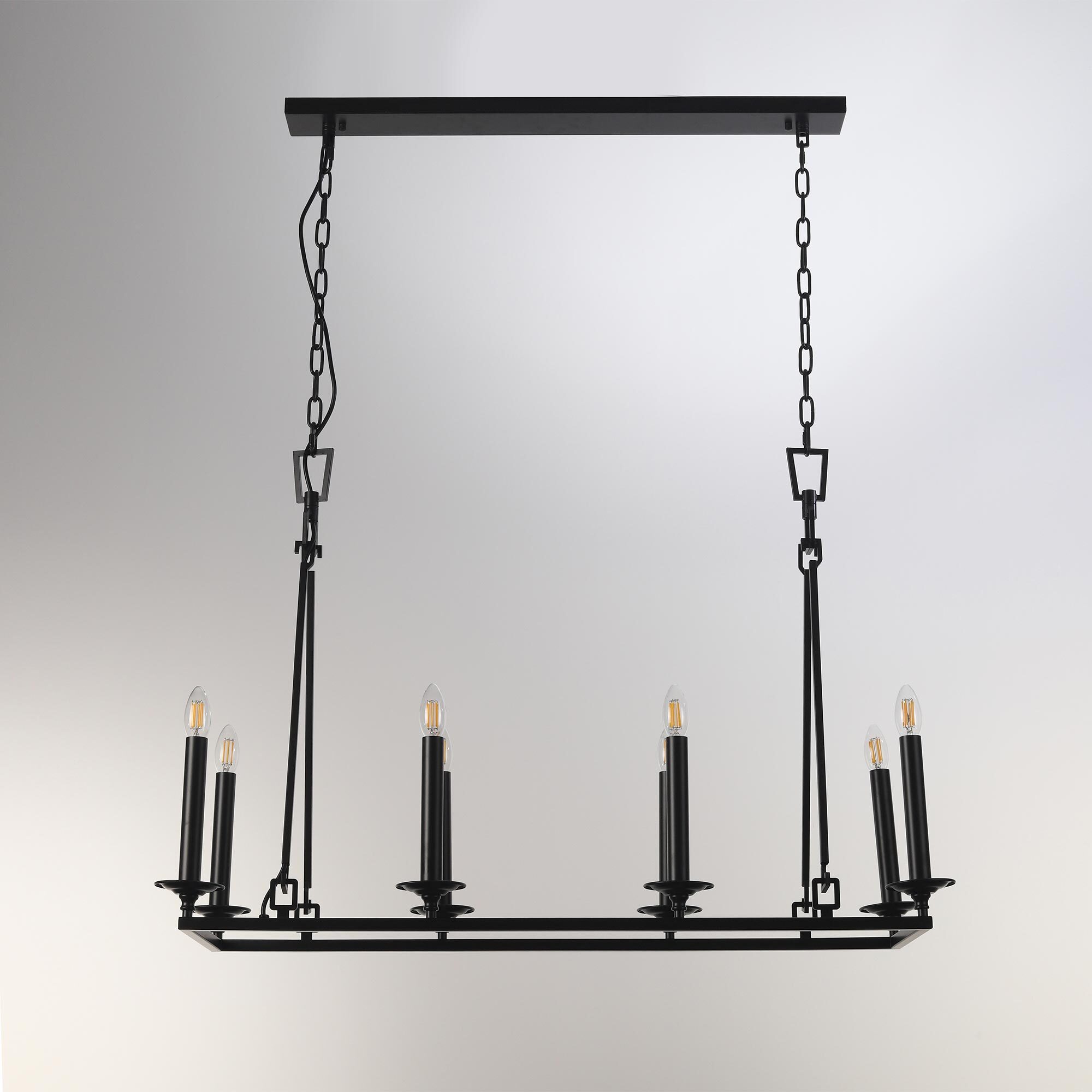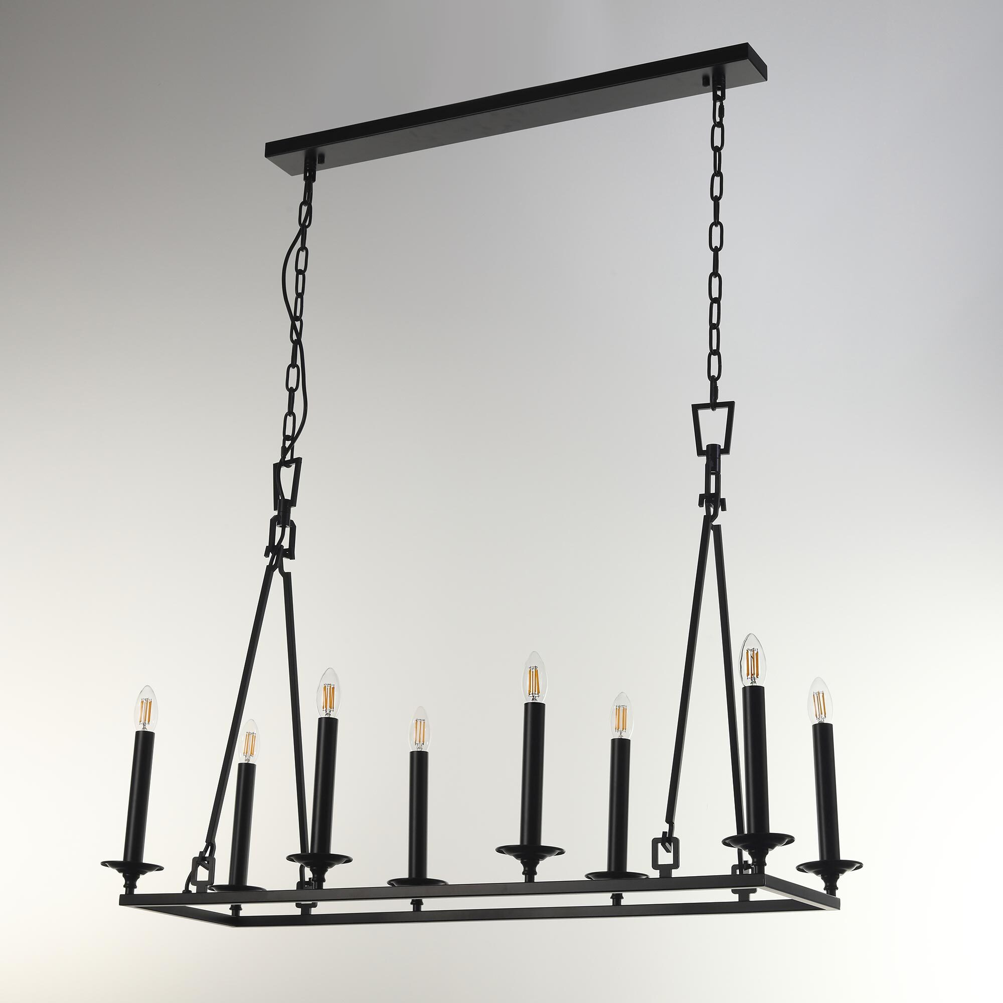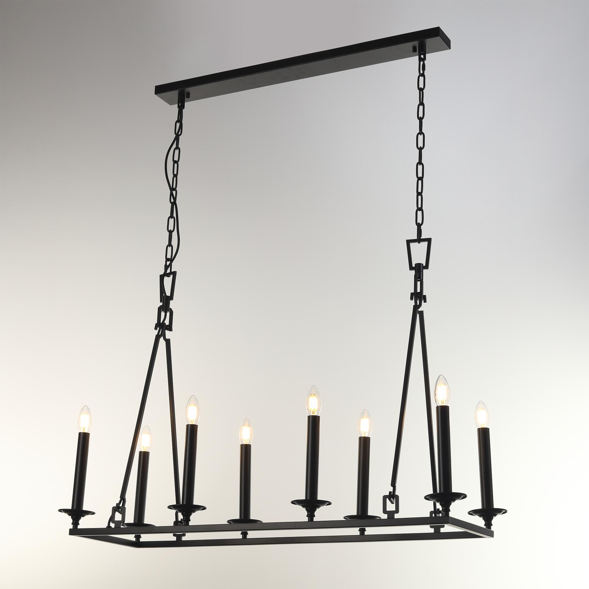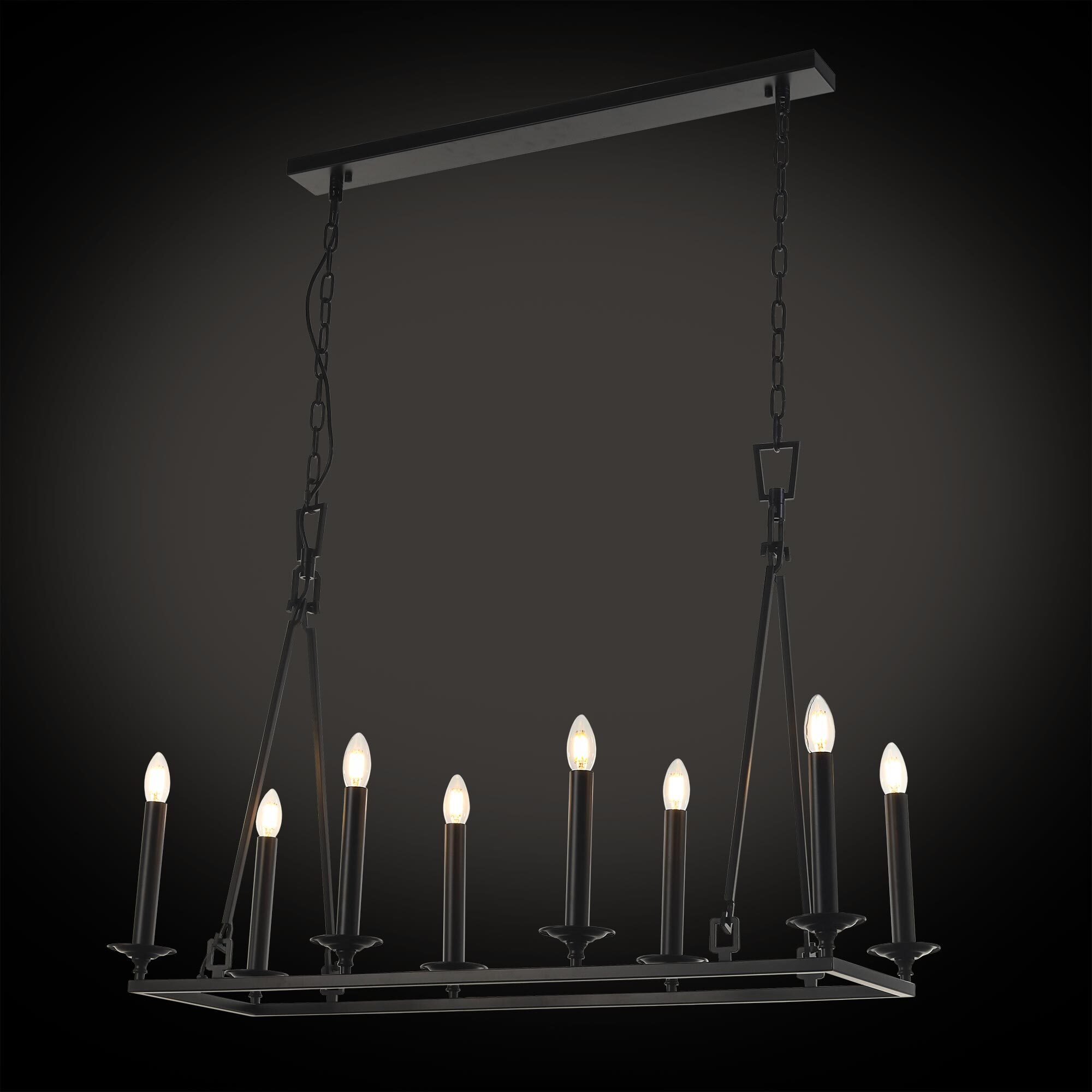 Подвесная люстра на цепи Citilux Маркиз CL471245 идеальное решение для создания освещения в стиле средневекового замка. Светильник металлический, прямоугольной формы со свечами, цвет чёрный матовый.