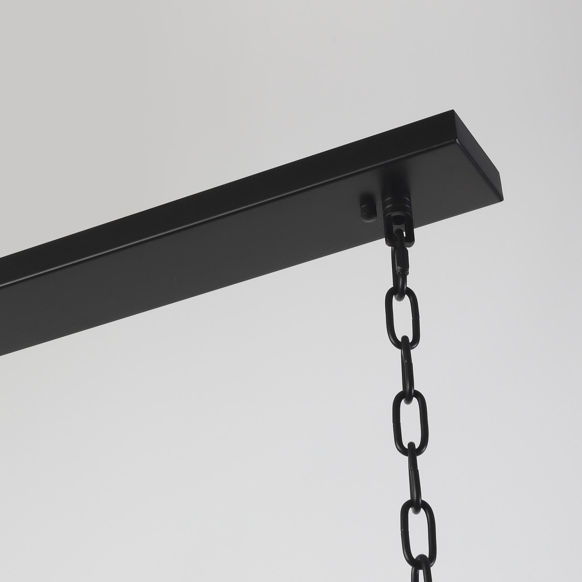 В изделии 8 ламп с цоколем Е14 максимальной мощностью для ламп накаливания 60Вт (в комплект не входят, приобретаются отдельно). Размер 36х102см, высота регулируется в диапазоне от 75см до 1,9м, что позволяет настроить оптимальное освещения помещений с высокими потолками площадью до 25м². Тип крепления – планка.