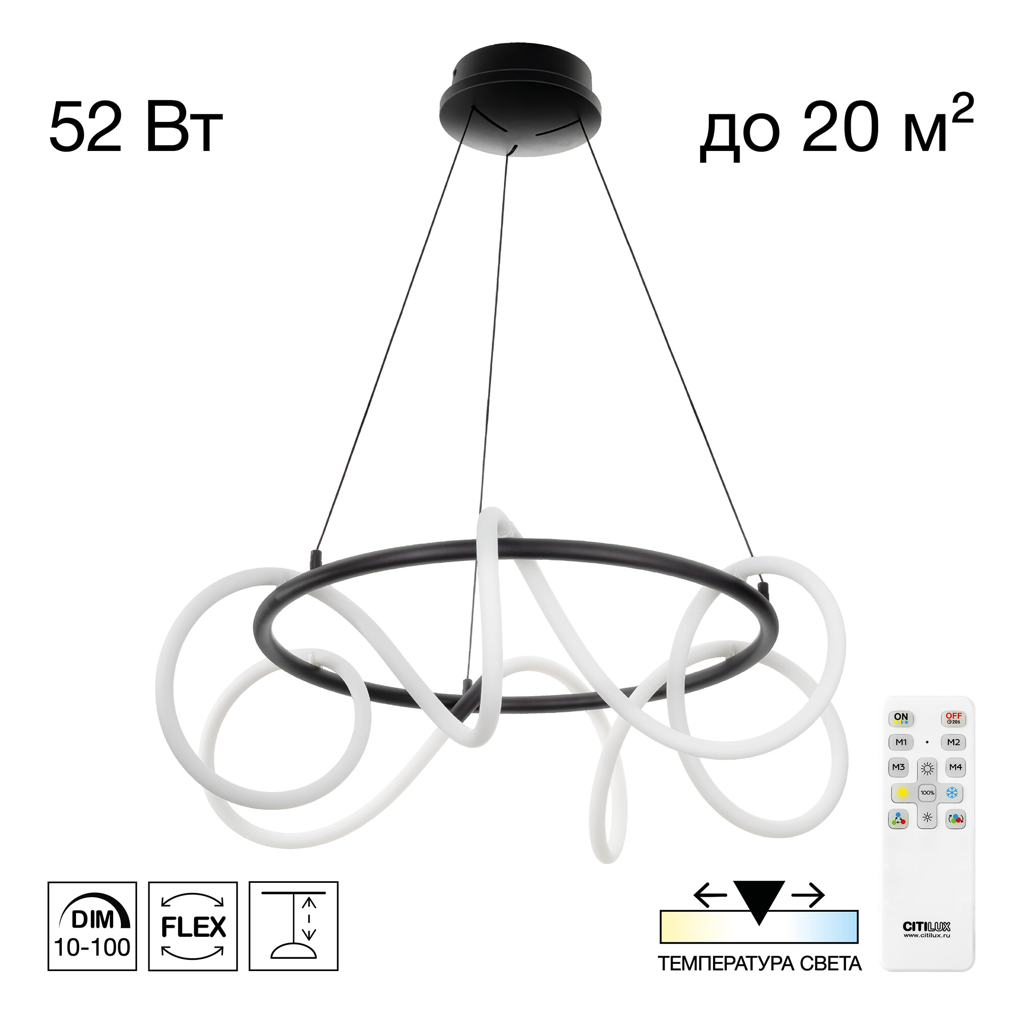 Модель Citilux PYTHON CL220261 представляет собой изысканную светодиодную люстру, в которой воплощены актуальные стилевые решения и элегантность форм. Подвесное металлическое кольцо чёрного цвета изящно оплетает белый гибкий световод создавая неповторимый образ.