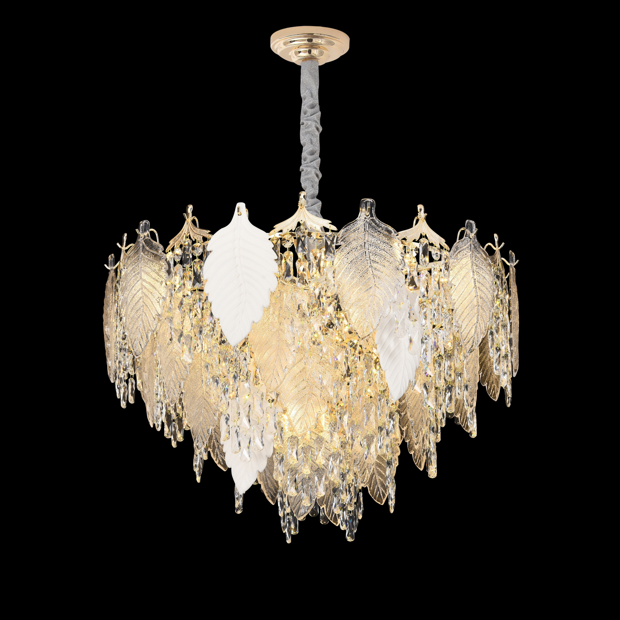 Шикарная подвесная люстра Citilux Darby CL309282 искусно украшена ниспадающим каскадом хрустальных подвесок и великолепно декорирована прекрасными стеклянными листьями. Корпус светильника металлический, благородного золотого оттенка. Этот удивительный образец красоты и элегантности станет настоящим украшением вашего интерьера.