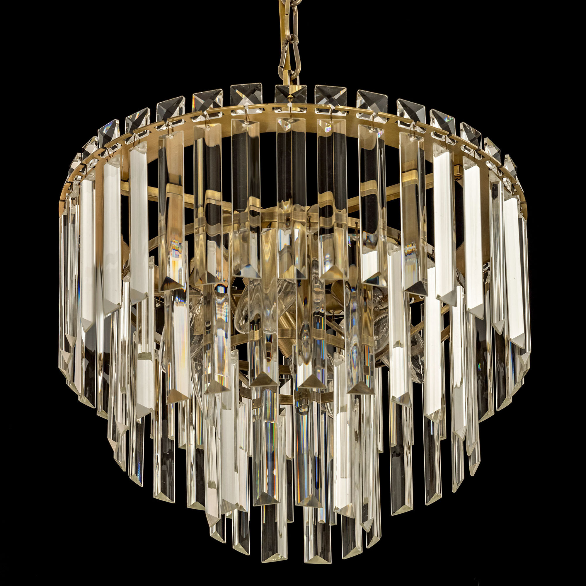 Хрустальная люстра Citilux Фонда CL303163 на цепи. Корпус светильника металлический, цвет бронза. Хрустальные элементы, прозрачные, с модной огранкой «призма». В светильнике используются 6 ламп с цоколем Е14, максимальной мощностью для ламп накаливания 60Вт, светодиодные лампы можно использовать более яркие. Изделие подходит для помещений как с высокими, так и с низкими потолками, длина цепи регулируется при установке. Светильник подходит для всех типов потолков, в том числе натяжных, тип крепления – планка. Подвесная люстра Citilux Фонда CL303163 отлично подойдет для освещения интерьеров, оформленных в современном и классическом стиле.