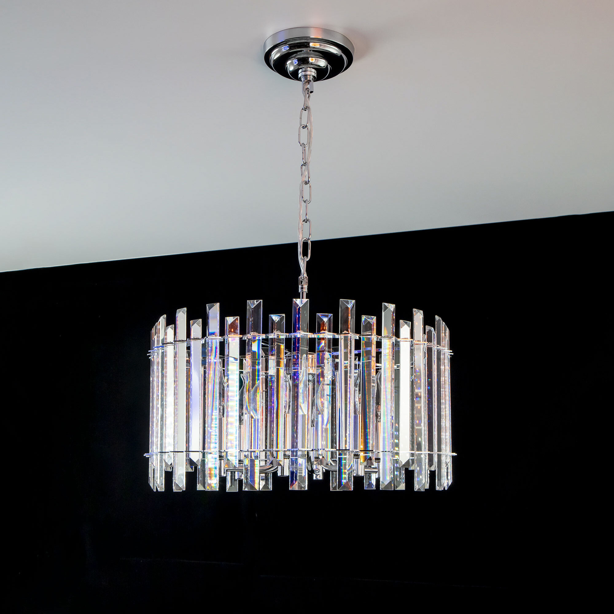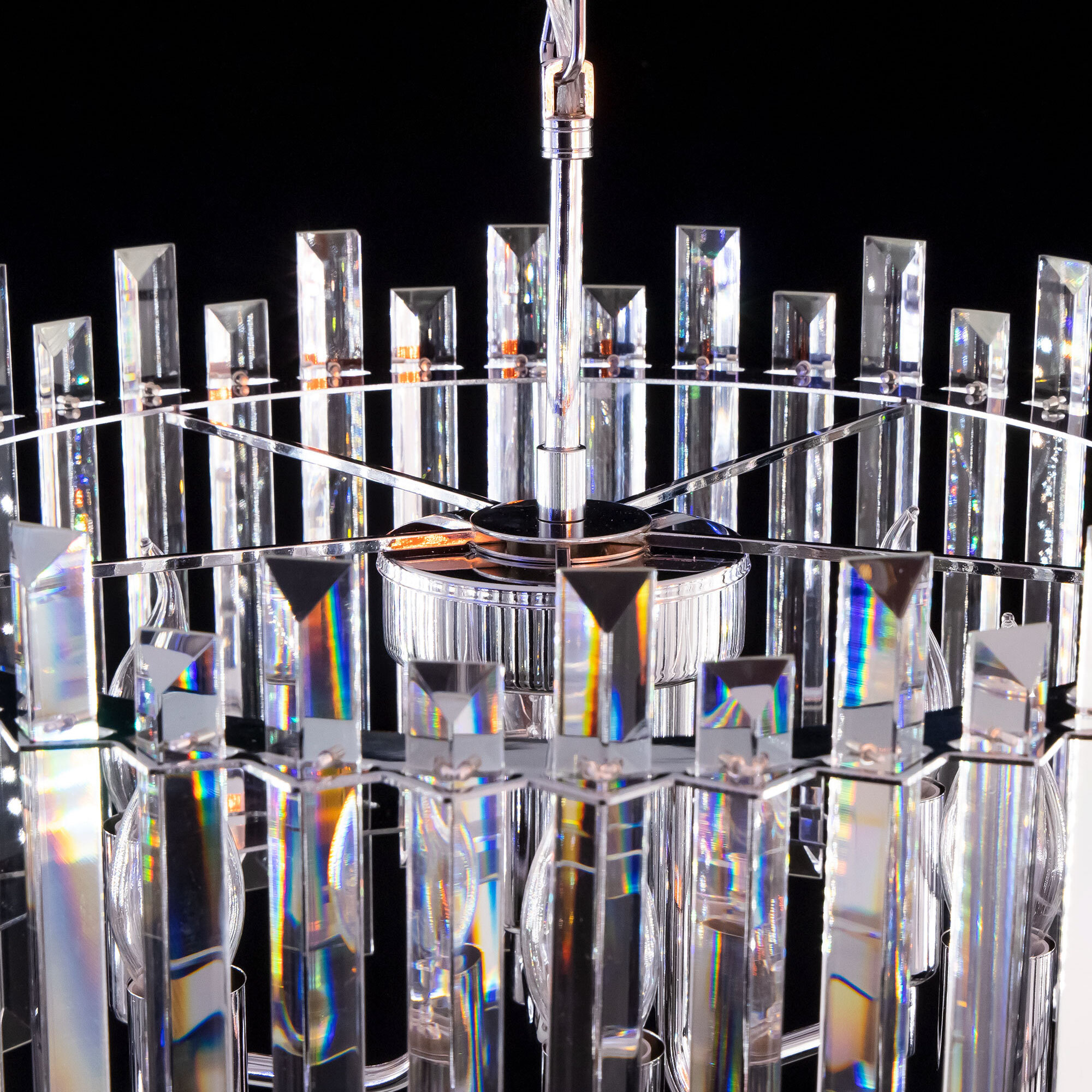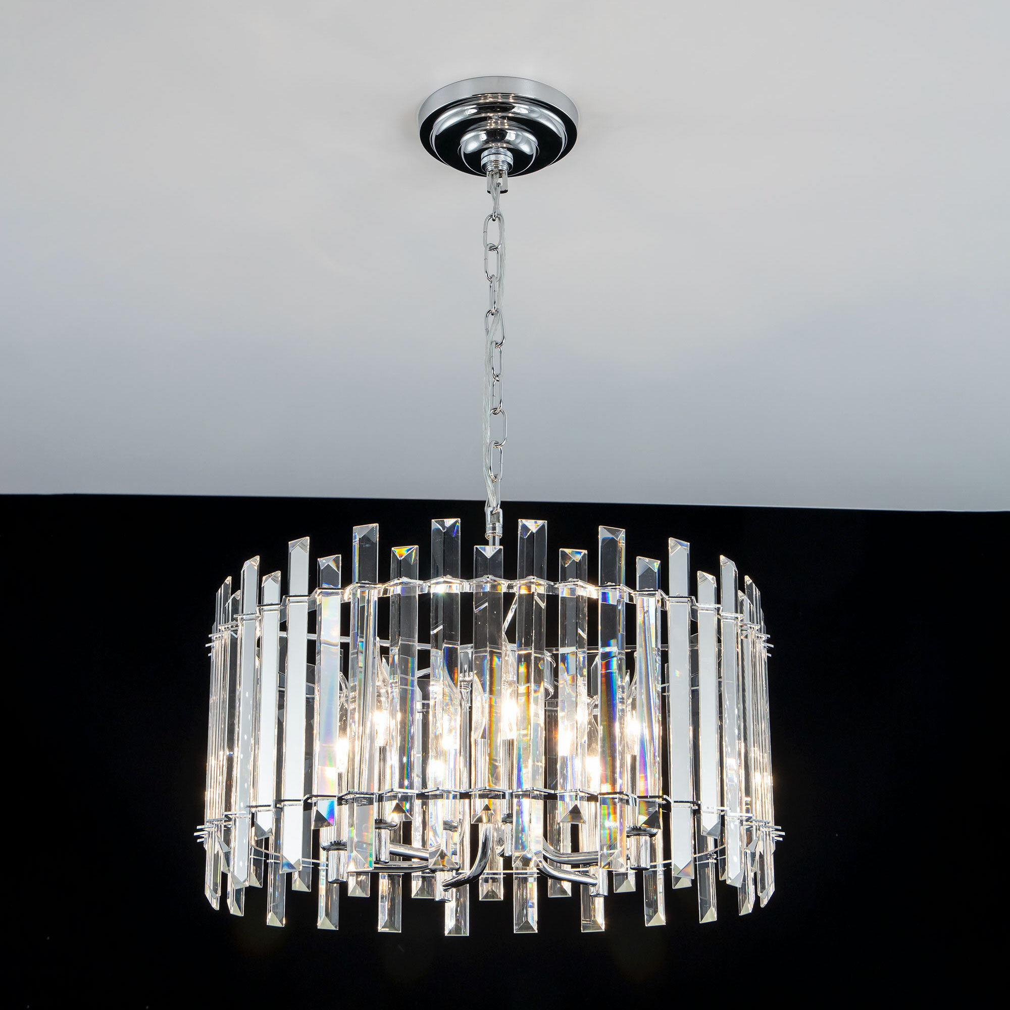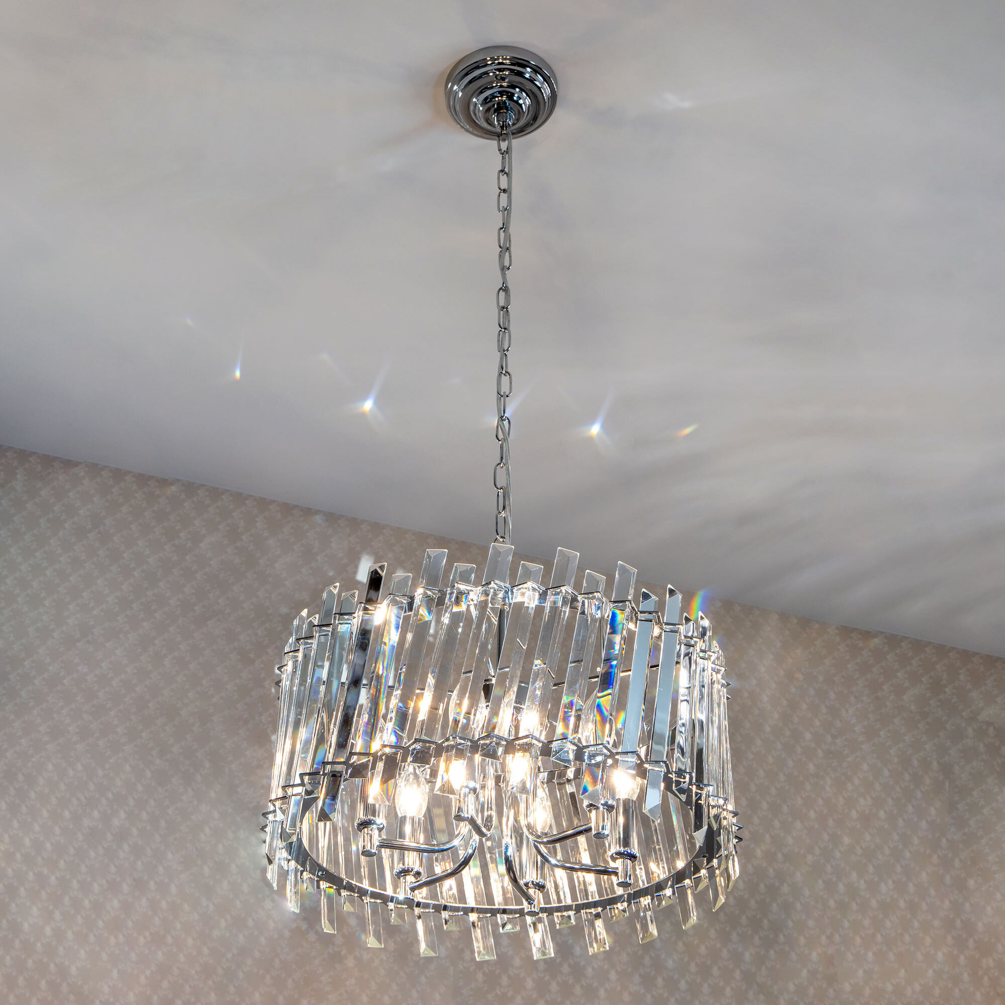 Хрустальная люстра Citilux Ингвар CL334161 выполнена в стиле современной классики. Корпус светильника металлический, цвет хром. Люстра шестирожковая с хрустальным абажуром цилиндрической формы. Хрустальные элементы крупные, кристально прозрачные с современной огранкой.