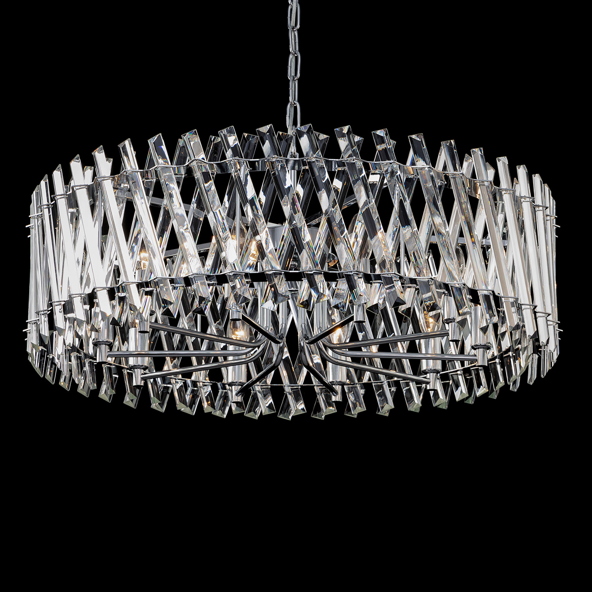 Хрустальная люстра Citilux Ингвар CL334291 выполнена в популярном стиле современной классики. Корпус светильника металлический, цвет хром. Люстра десятирожковая, с большим хрустальным абажуром цилиндрической формы. Хрустальные элементы крупные, кристально прозрачные с современной огранкой.