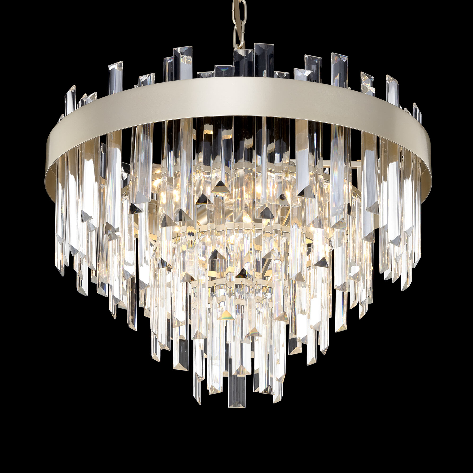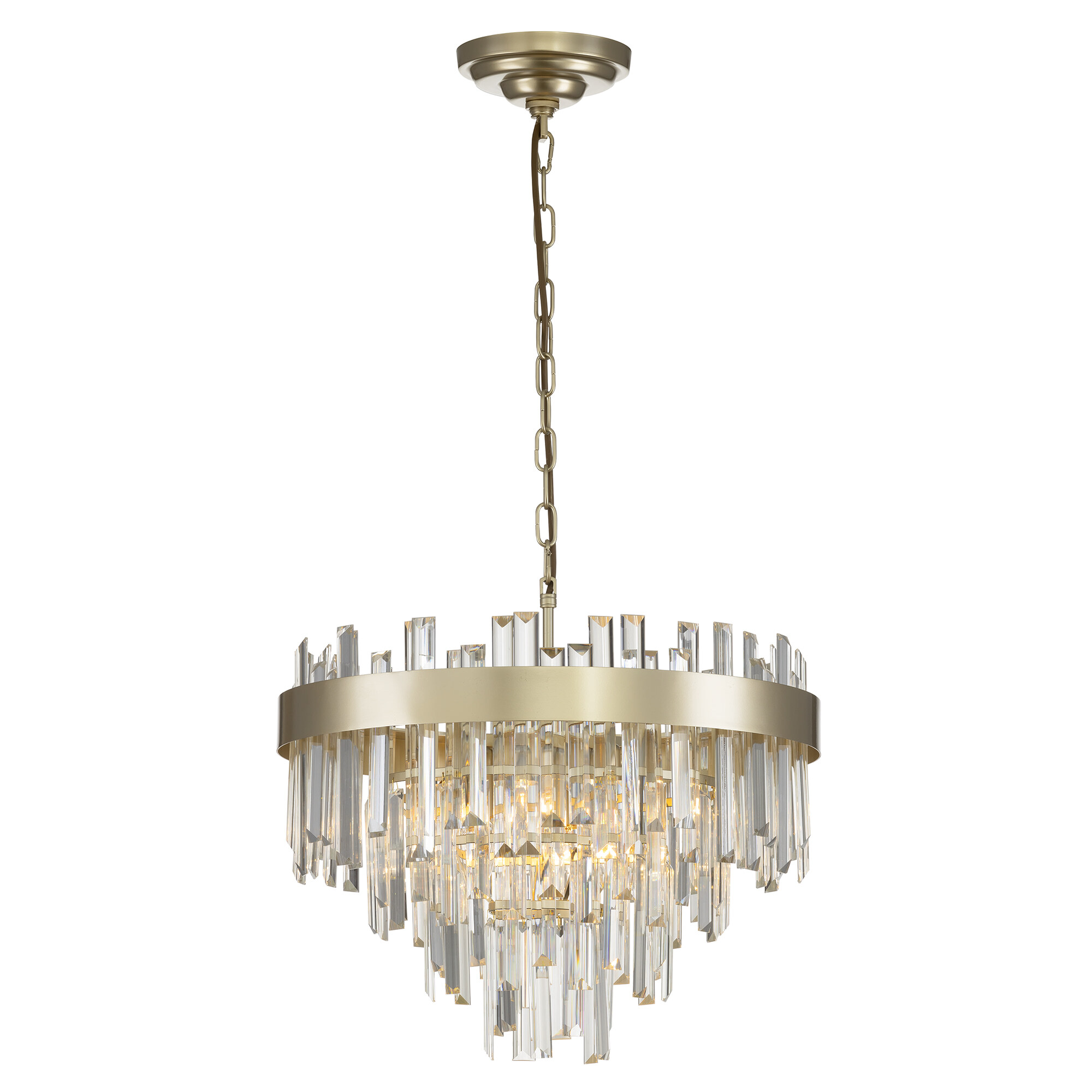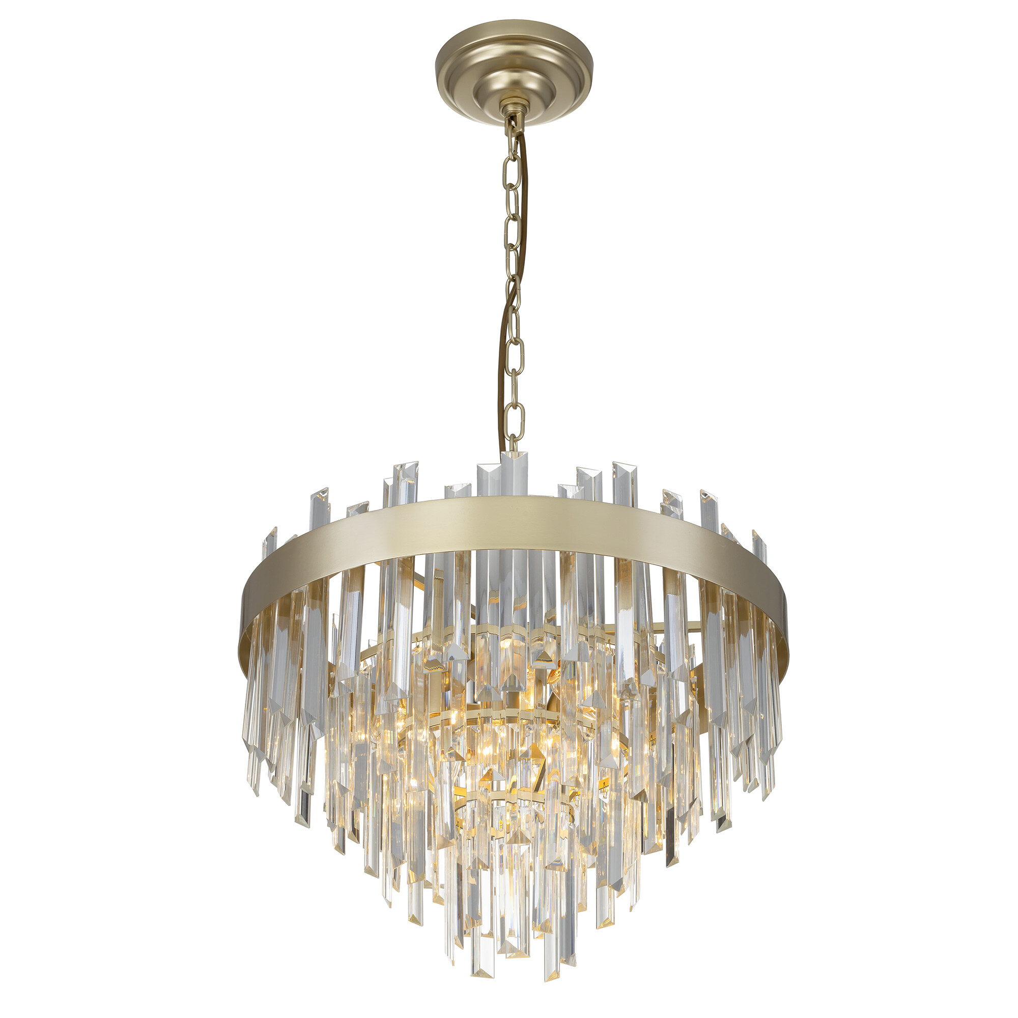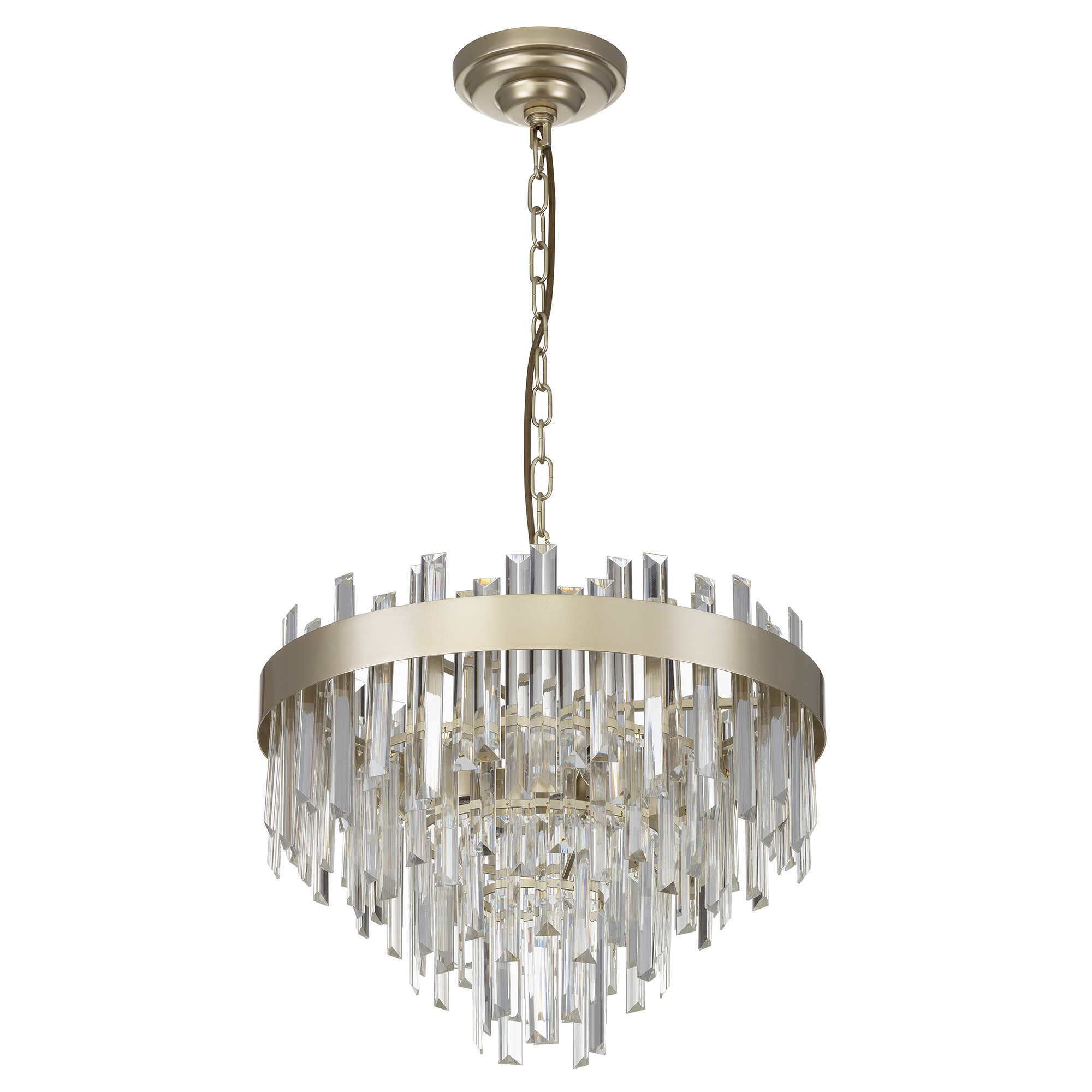 Хрустальная люстра Citilux Лаура CL301262 выполнена в стиле современной классики. Корпус светильника металлический, цвет шампань. Хрустальные подвески кристально прозрачные с модной огранкой, расположены в несколько рядов ниспадающим каскадом.