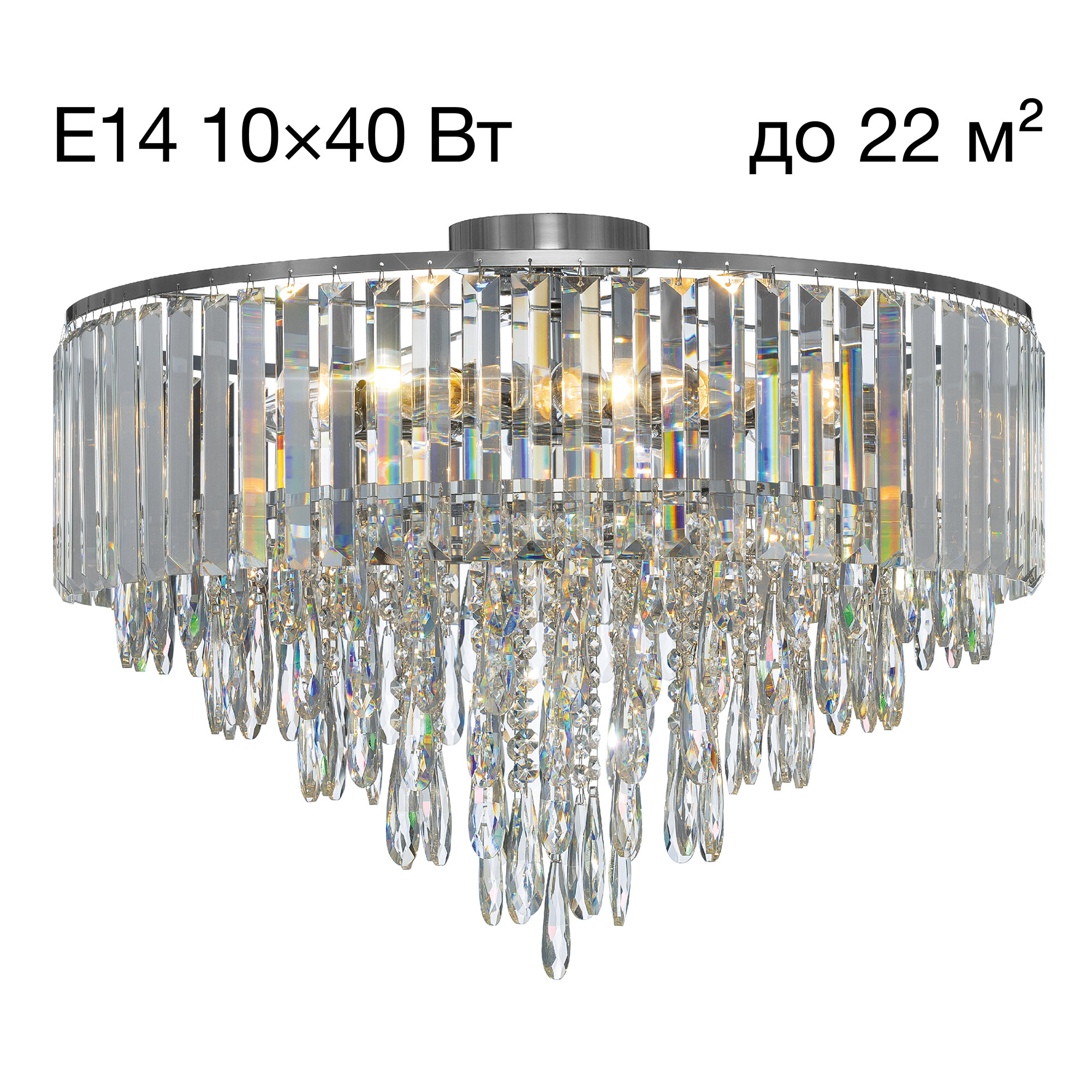 - 10 ламп с цоколем E14 (до 40Вт, лампы приобретаются отдельно)