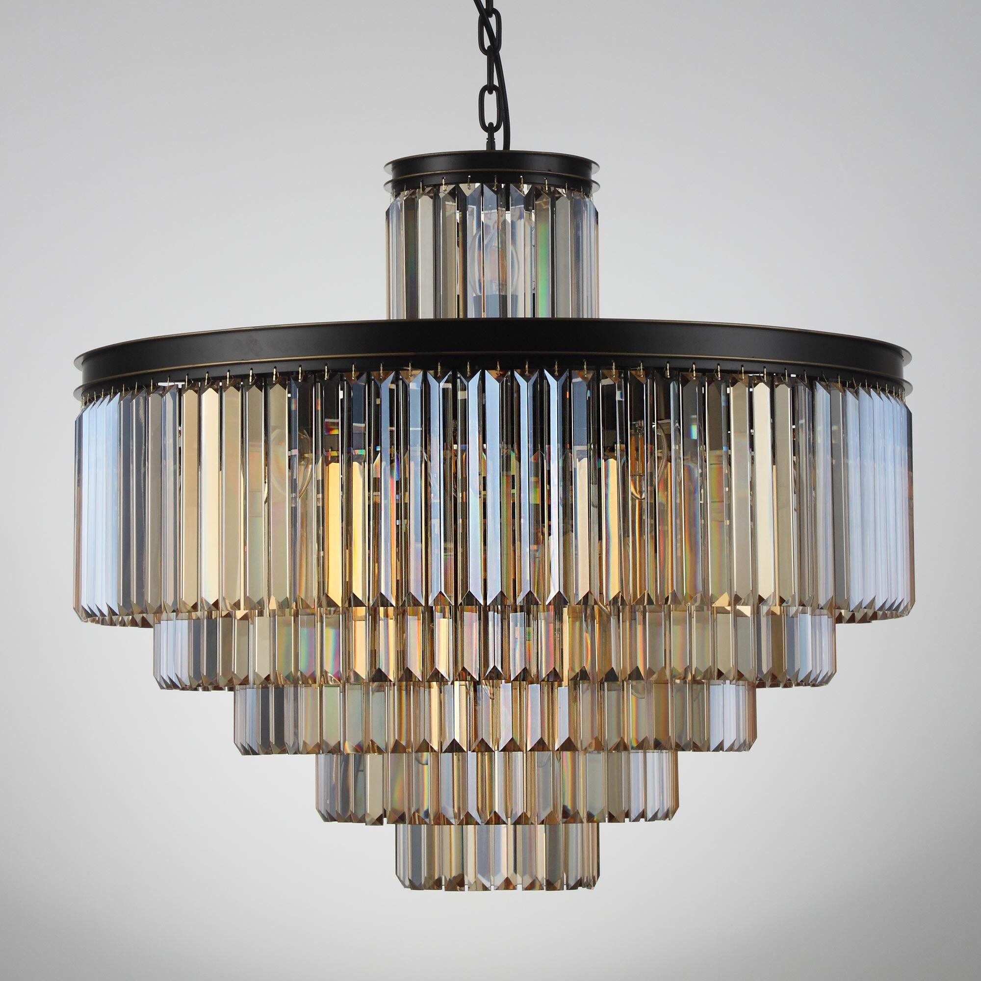 Стильная каскадная подвесная люстра Citilux Мартин CL332152 с хрустальными подвесками модного оттенка шампань, расположенными в шесть ярусов. Основание модели круглой формы выполнено из металла солидной толщины, окрашенного в темный коричневый цвет. Казалось бы, незначительная деталь - золотистая окантовка наружных колец, как последний штрих мастера, придает светильнику завершенный облик. Тип крепления – крючок. Высоту изделия можно отрегулировать в диапазоне от 2,5 метров до 90 см. В люстре 29 ламп с цоколем Е14 и максимальной мощностью для ламп накаливания 60Вт. Суммарная мощность 1740 Вт, площадь освещения до 44 кв. метров. Светодиодные лампы можно использовать более яркие. Светильник отлично подойдет в большой зал, гостиную или столовую, оформленную в классическом или современном стиле, в том числе стиле лофт.