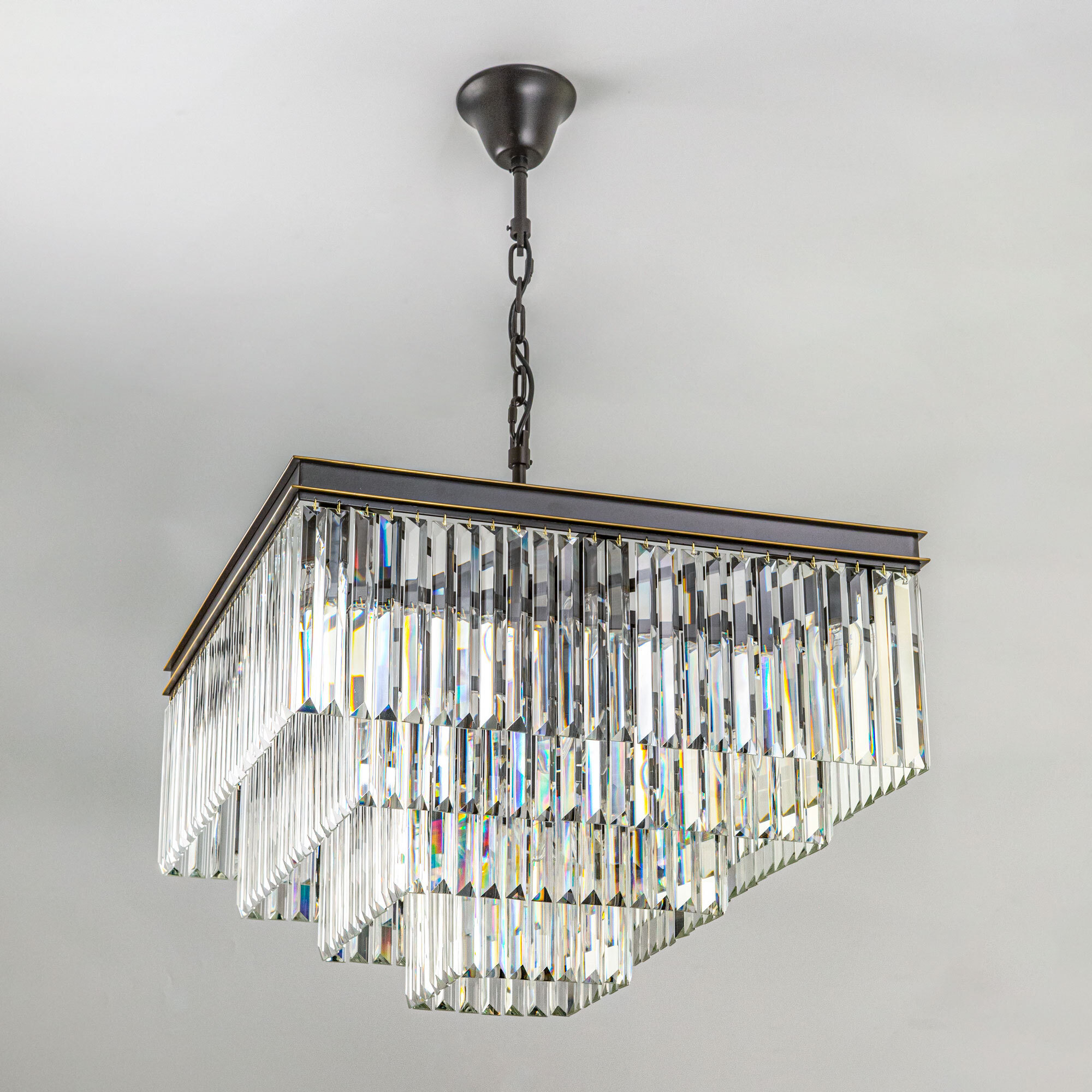 Стильная подвесная люстра Citilux Мартин CL332241 с шикарными прозрачными хрустальными подвесками, расположенными каскадом в четыре яруса. Основание модели квадратной формы выполнено из металла солидной толщины, окрашенного в темный коричневый цвет. Казалось бы, незначительная деталь - золотистая окантовка, как последний штрих мастера, придает светильнику завершенный облик. Тип крепления – крючок. Высоту изделия можно отрегулировать в диапазоне от 1,36 метра до 63 см, для использования в помещениях как с высокими, так и с низкими потолками. В люстре 20 ламп с цоколем Е14 и максимальной мощностью для ламп накаливания 60Вт. Суммарная мощность 1200Вт, площадь освещения до 38 кв. метров. Светодиодные лампы можно использовать более яркие. Светильник отлично подойдет гостиную, столовую и спальню, оформленную в классическом или современном стиле, в том числе в стиле лофт.Citilux CL332 MARTIN: Вдохновение в каждом луче.
