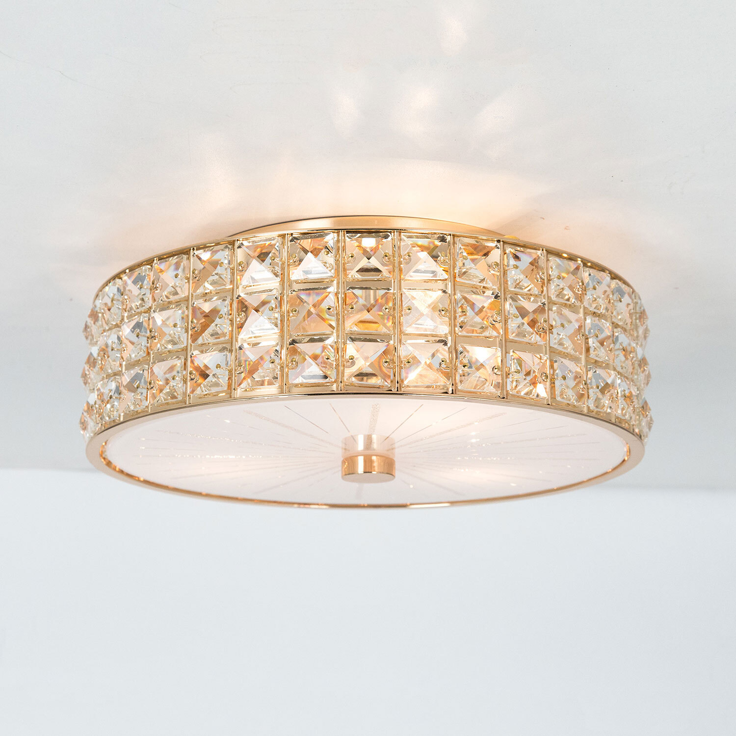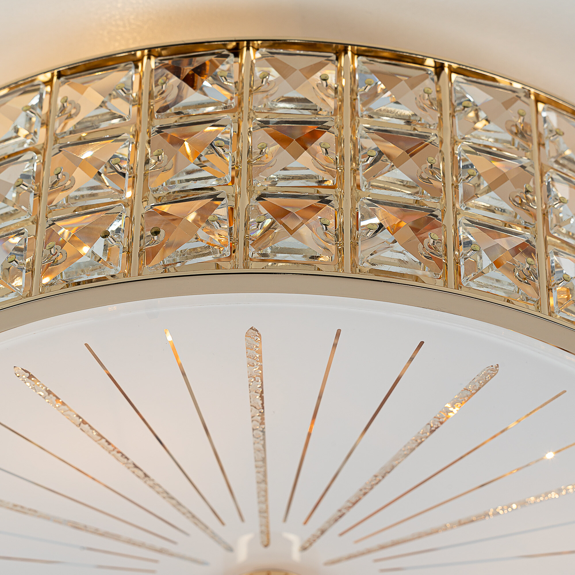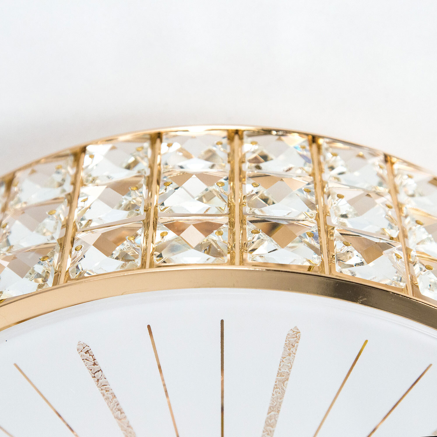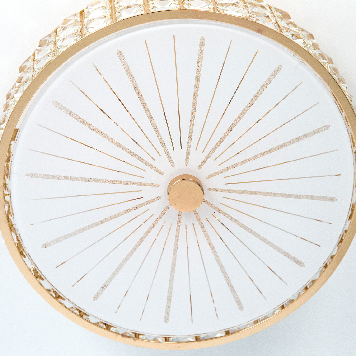 Быть может, именно украшения из золота и драгоценных камней вдохновили наших дизайнеров на создание коллекции хрустальных люстр Портал в золотом цвете. Именно эти модели оптимально подойдут для тех, кто решил оформить свой интерьер в мягких, тёплых тонах, а благородство игры хрустальных деталей подчеркнёт все его достоинства. Трёхрожковая модель с основанием цвета сверкающего глянцевого золота, классической круглой формы, замечательно подойдёт для прихожей, кухни или уютной спальни. Основание изделия выполнено из металла, а в качестве декора добавлены элементы из хрусталя марки Asfour. Учитывая Диаметр изделия (31 см) и минимальную высоту (15 см) мы рекомендуем такие модели для помещений площадью от 5-ти до 9-ти квадратных метров. Патроны изготовлены из термостойких материалов, что даст возможность использовать светодиодные лампочки абсолютно любой мощности.