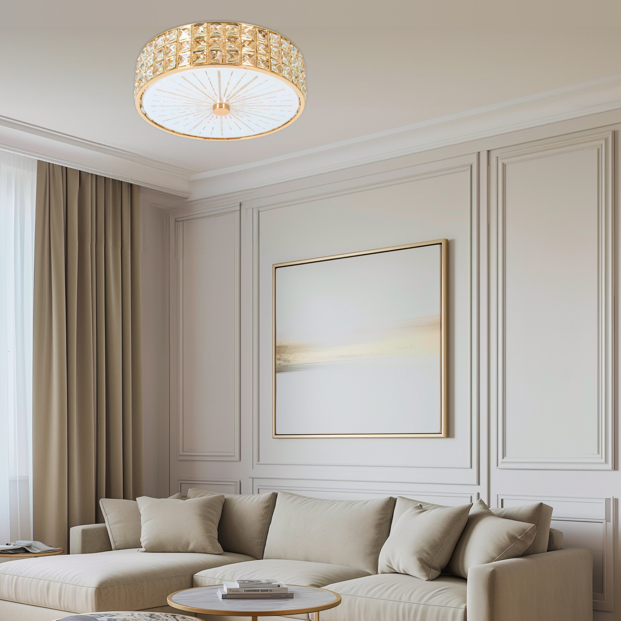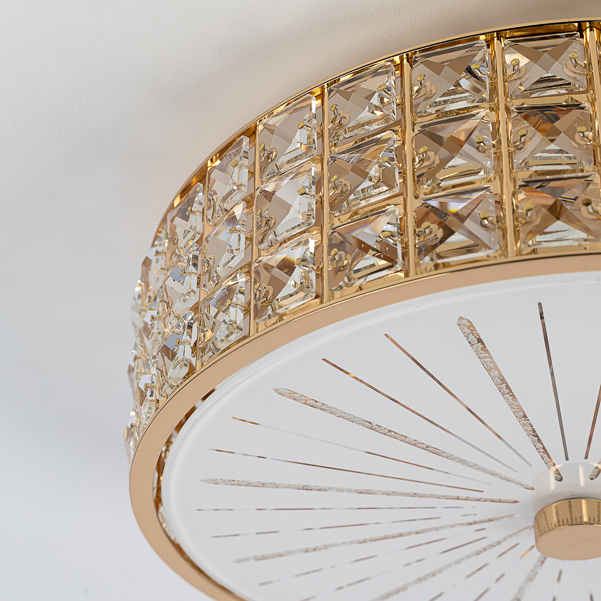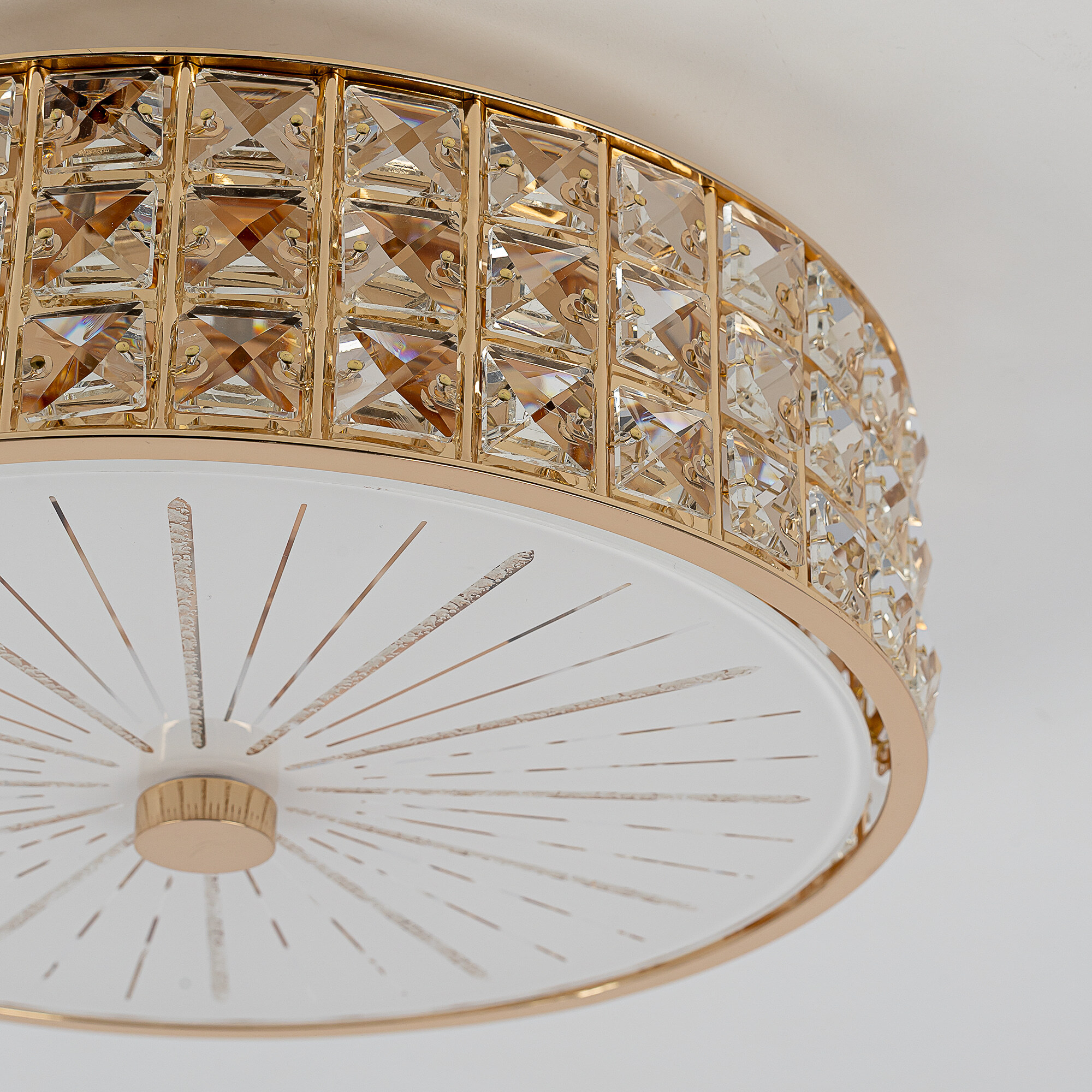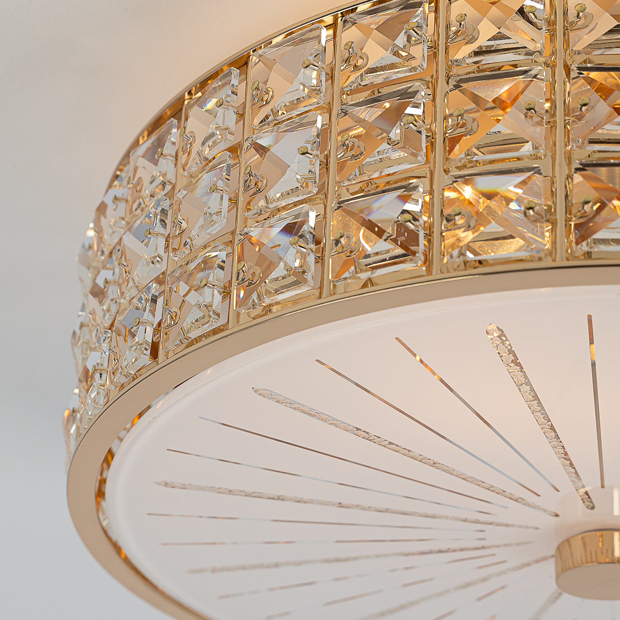 Быть может, именно украшения из золота и драгоценных камней вдохновили наших дизайнеров на создание коллекции хрустальных люстр Портал в золотом цвете. Именно эти модели оптимально подойдут для тех, кто решил оформить свой интерьер в мягких, тёплых тонах, а благородство игры хрустальных деталей подчеркнёт все его достоинства. Трёхрожковая модель с основанием цвета сверкающего глянцевого золота, классической круглой формы, замечательно подойдёт для прихожей, кухни или уютной спальни. Основание изделия выполнено из металла, а в качестве декора добавлены элементы из хрусталя марки Asfour. Учитывая Диаметр изделия (31 см) и минимальную высоту (15 см) мы рекомендуем такие модели для помещений площадью от 5-ти до 9-ти квадратных метров. Патроны изготовлены из термостойких материалов, что даст возможность использовать светодиодные лампочки абсолютно любой мощности.
