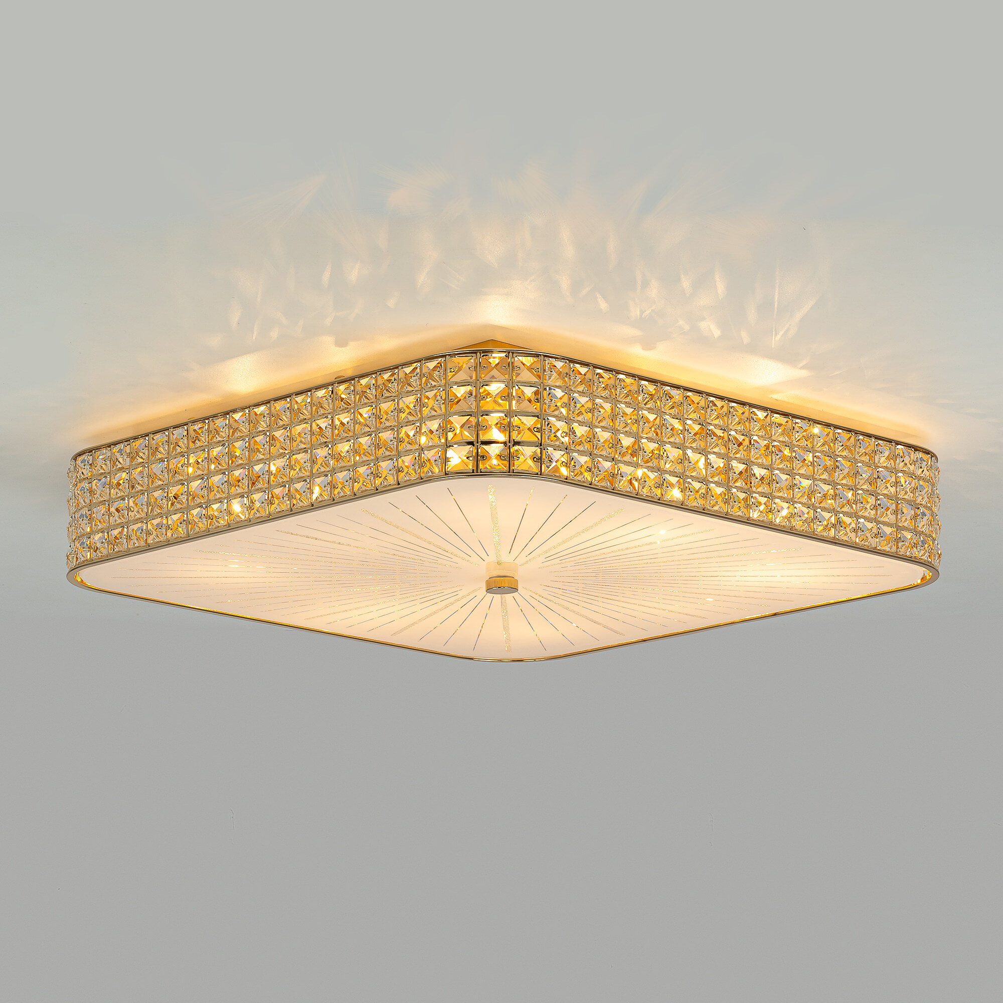 Хрустальные люстры всегда были и будут идеальным источником света для больших помещений. Благодаря исключительным свойствам хрусталя, свет равномерно рассеивается и мягко заполняет освещаемую территорию. Помимо этого, хрусталь защищает глаза от попадания прямого светового потока, тем самым, оберегая ваше зрение. Коллекция Портал от Citilux в золотом исполнении превосходно зарекомендовала себя, благодаря безупречному качеству изделий, оригинальному дизайну и необычайной яркости. Десятирожковая модель квадратной формы полноценно осветит до 28-ми квадратных метров, а возможность смонтировать светильник, как под прямым углом, так и в виде ромба позволит вам самостоятельно поэкспериментировать над дизайном собственного интерьера. Все детали конструкций изготовлены из металла с гальваническим покрытием золотого цвета и хрусталя. В производстве патронов применяется углепластик высочайшего качества, свойства которого позволяют использовать светодиодные лампы без каких-либо ограничений по мощности.