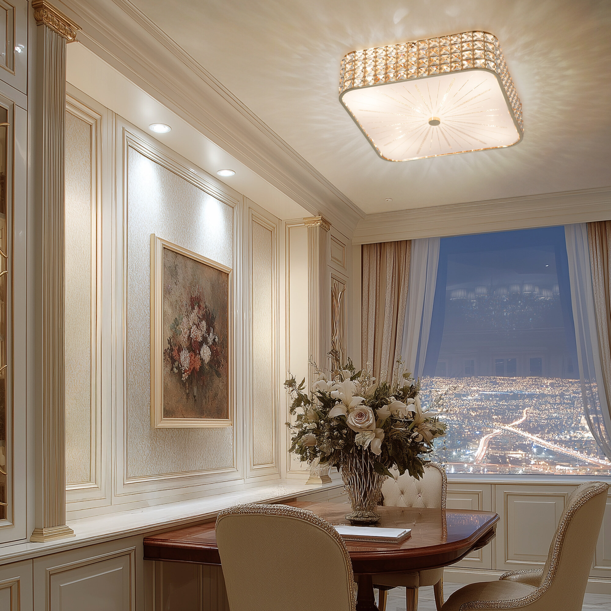 Изящество форм и великолепие цветов иногда трудно передать словами. Шикарные потолочные люстры, выполненные в стиле современной классики, серии Портал от Citilux декорированы хрусталём знаменитой марки Asfour. Неординарный дизайн моделей, и потрясающая игра света, излучаемая светильниками серии Портал, украсит ваш интерьер, и приятно поразит ваших гостей. Модель на шесть рожков в классическом золотом цвете отлично впишется в помещения небольших и средних размеров, в независимости от их предназначения. Это может быть гостиная, спальня, кухня или детская комната площадью от 11-ти до 17-ти квадратных метров. Хотя многие называют форму конструкции квадратной, среди наших покупателей весьма популярен при установке вариант размещения, превращающий её в ромб. Высота модели составляет всего 150 миллиметров, что станет идеальным решением для невысоких потолков. При этом, патроны из углепластика дают возможность использовать лампы накаливания с цоколем Е14 до 60-ти Ватт, либо светодиодные лампы без ограничения по мощности, что станет большим преимуществом в случае надобности увеличить степень яркости светового прибора.