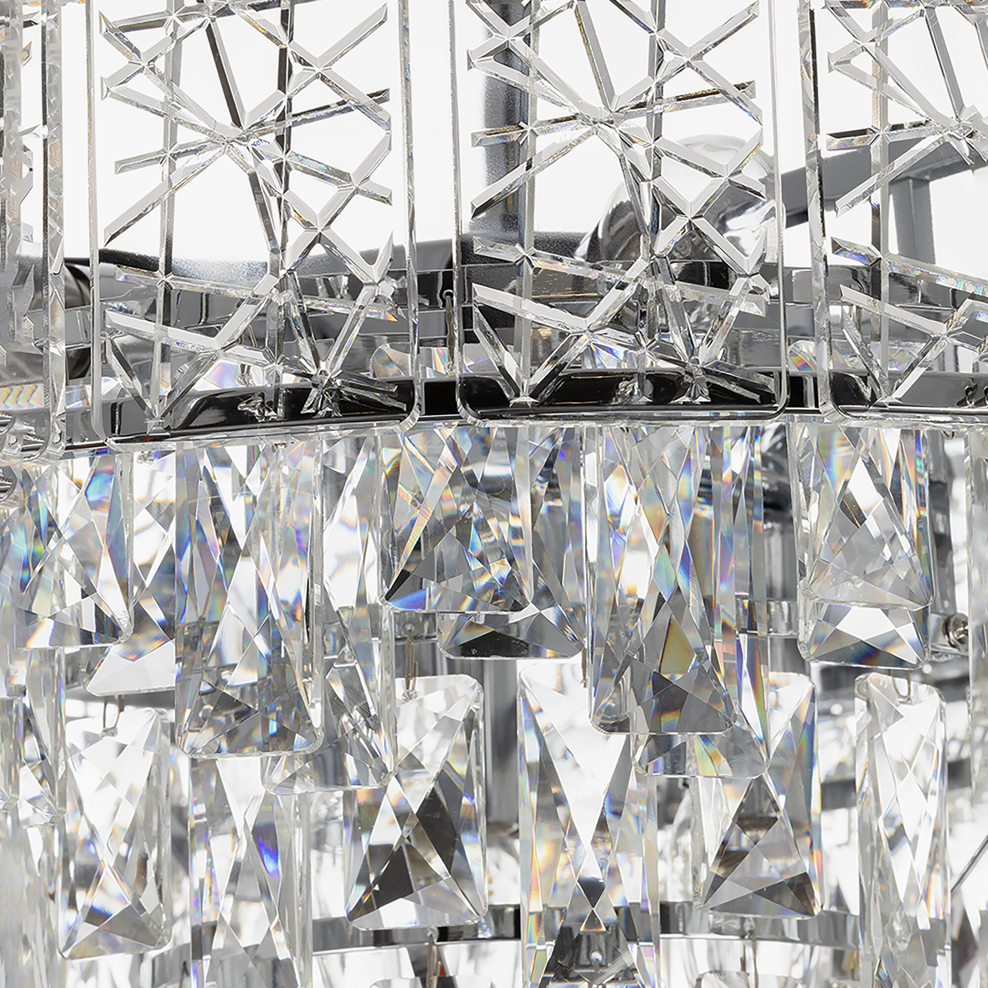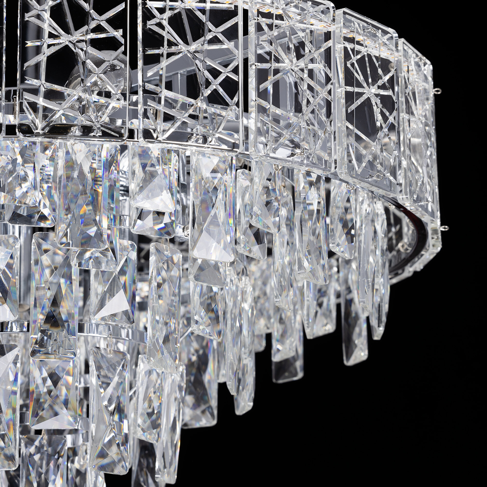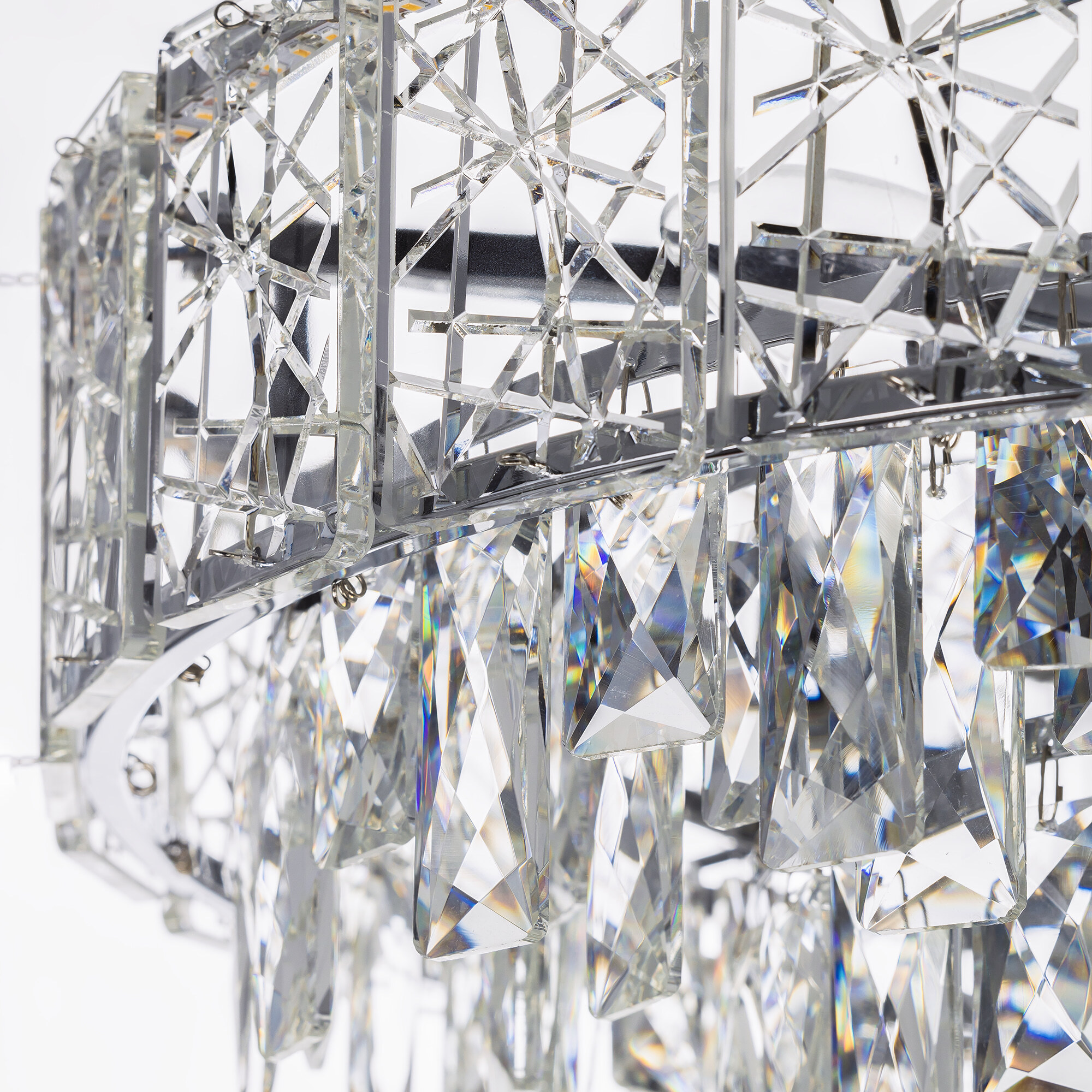 Хрустальная подвесная люстра Citilux SAGRADA CL317251 выполнена в стиле современной классики. Корпус металлический с гладким хромированным покрытием. Хрустальные элементы двух разных форм – прямоугольные пластины с алмазным гранением и кристально прозрачные подвески с современной огранкой — создают неповторимую игру света и придают люстре роскошный вид.