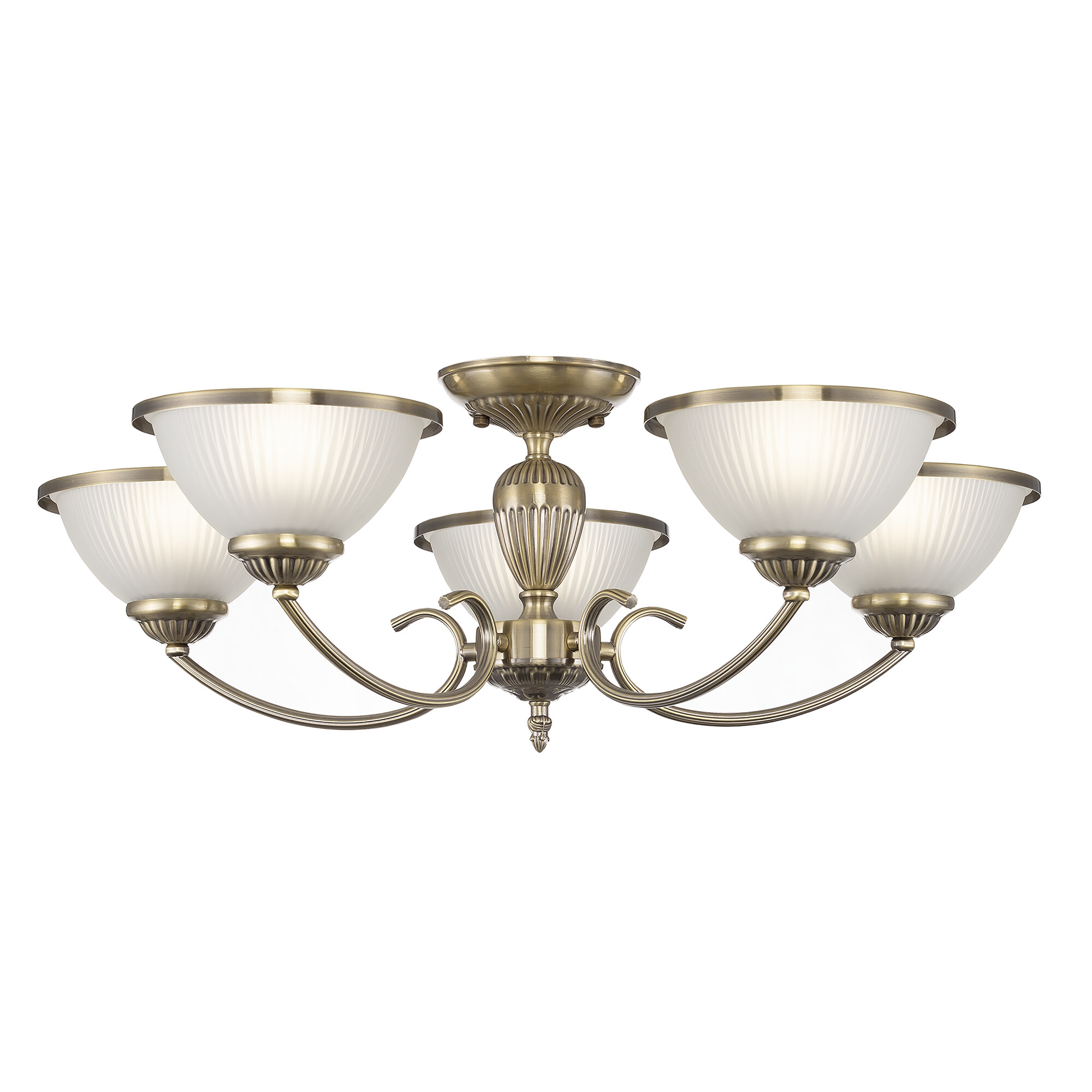 В изделии 5 ламп с цоколем Е27, максимальной мощностью для ламп накаливания 60Вт. Светодиодные лампы можно устанавливать более яркие. Светильник совместим с одноклавишным и двухклавишным выключателями, что позволяет регулировать уровень освещённости в любом помещении, будь то гостиная, спальня, кухня или кабинет. Подходит для всех видов потолков, в том числе натяжных, тип крепления – планка.