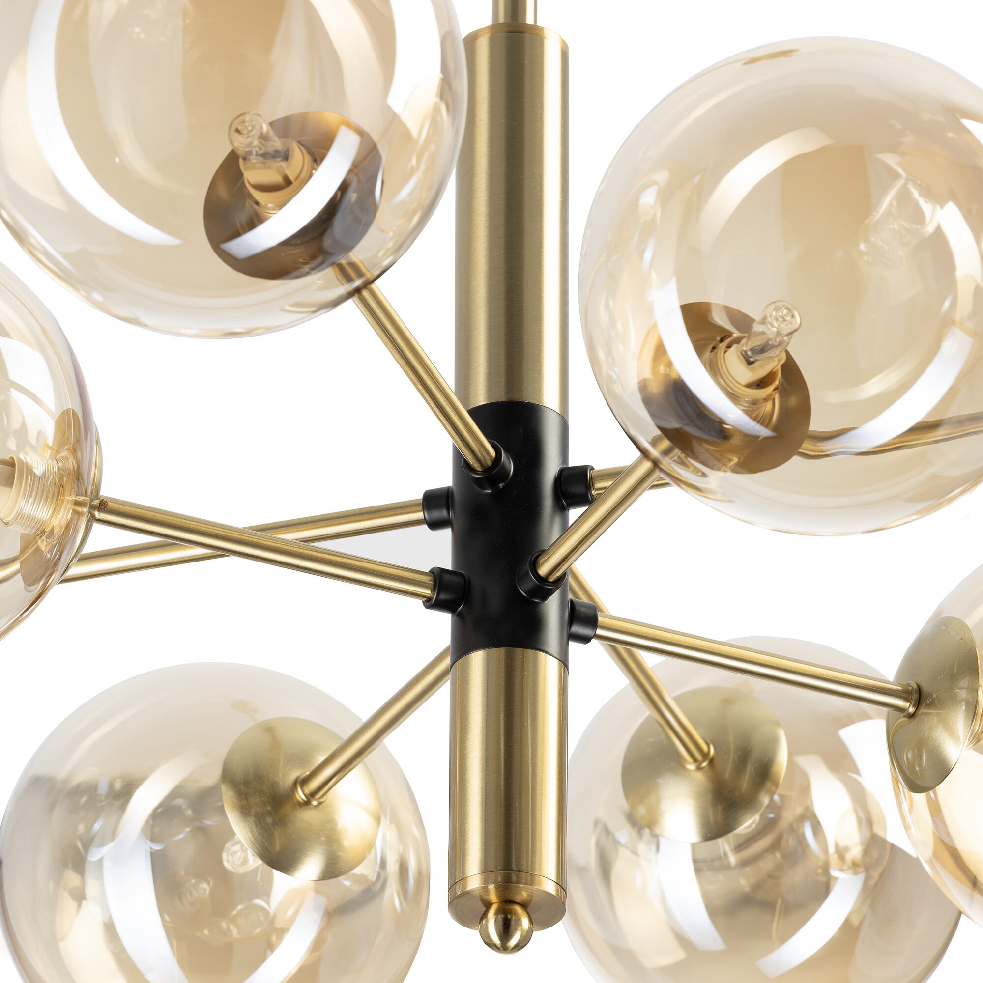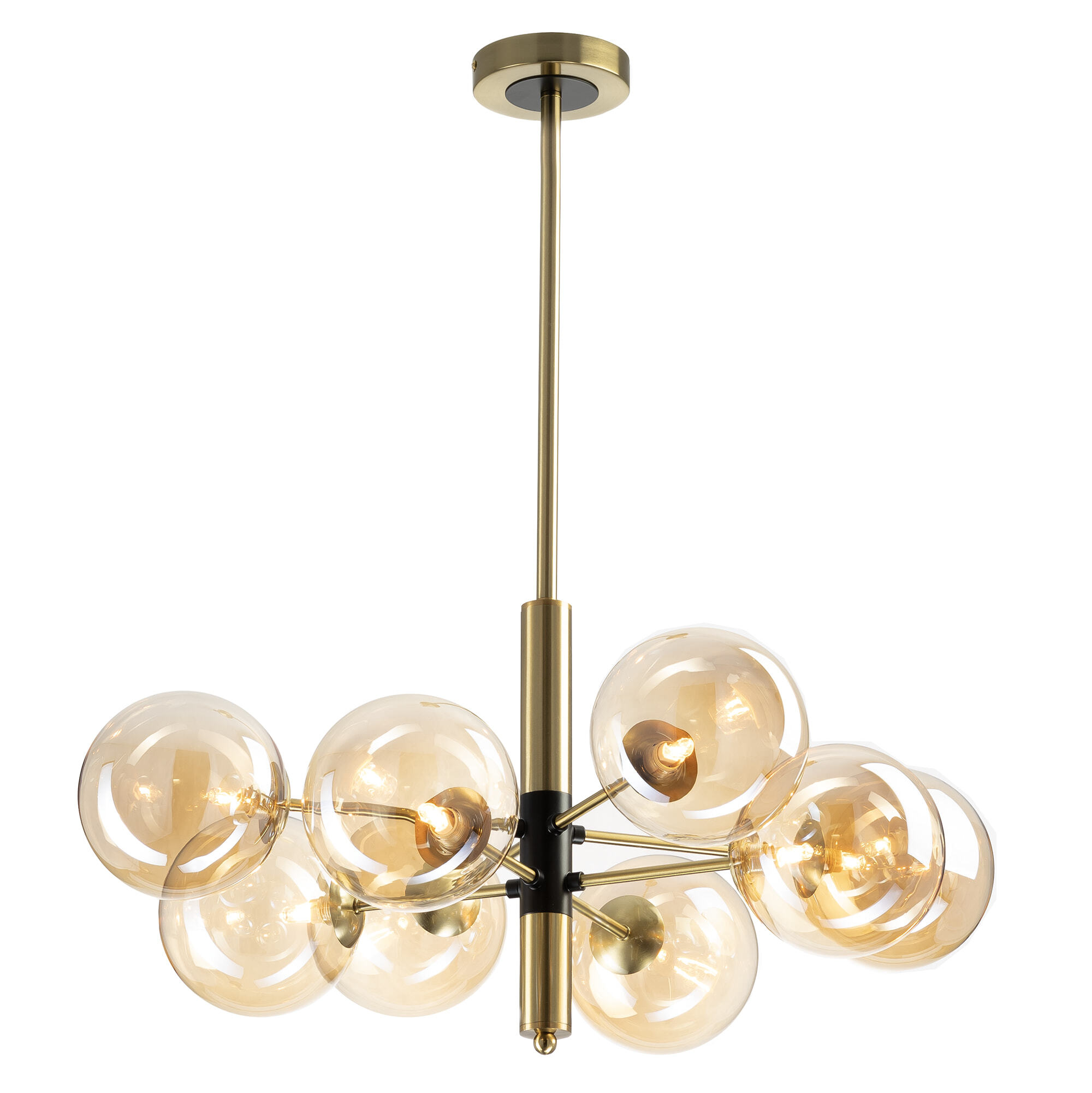 Люстра на штанге Citilux Нарда CL204180 выполнена в современном стиле. Корпус светильника металлический, бронзового цвета с декоративными чёрными элементами. Плафоны в форме шара изготовлены из прозрачного стекла светло-янтарного оттенка.
