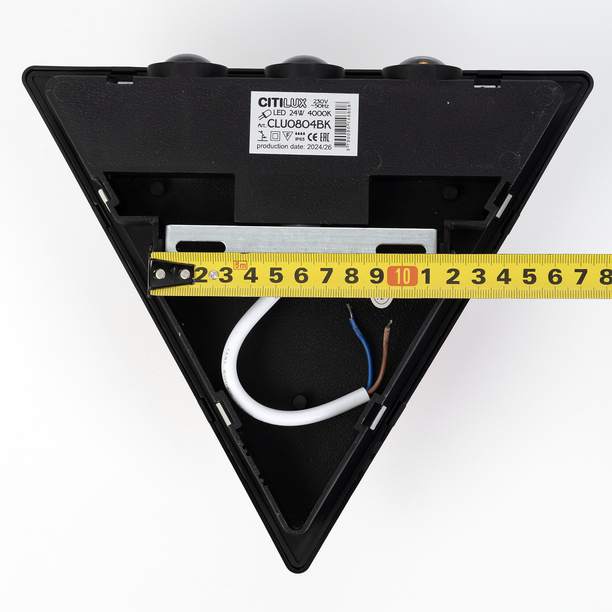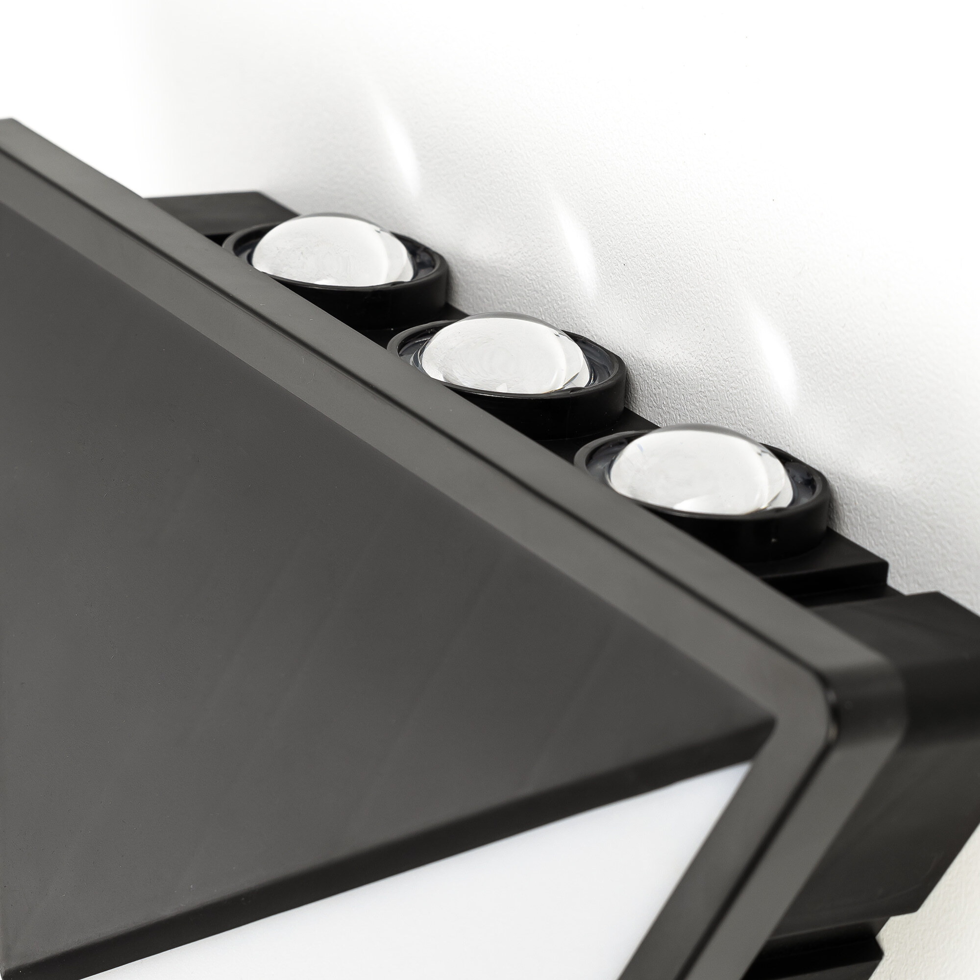 Дизайн изделия выполнен в современном стиле. Корпус треугольной формы, изготовлен из чёрного ударопрочного ABS-пластика. Мощность изделия 24Вт, световой поток 1080Лм, цветовая температура 4000К - нейтральный белый свет. Яркое равномерное освещение, безопасное для глаз, без мерцания и пульсаций. Модель оснащена двумя светодиодными модулями – основного света и архитектурной подсветки, что позволит создавать оригинальные световые эффекты на стенах, колоннах и арках, делая ваш дом еще более привлекательным и уникальным.