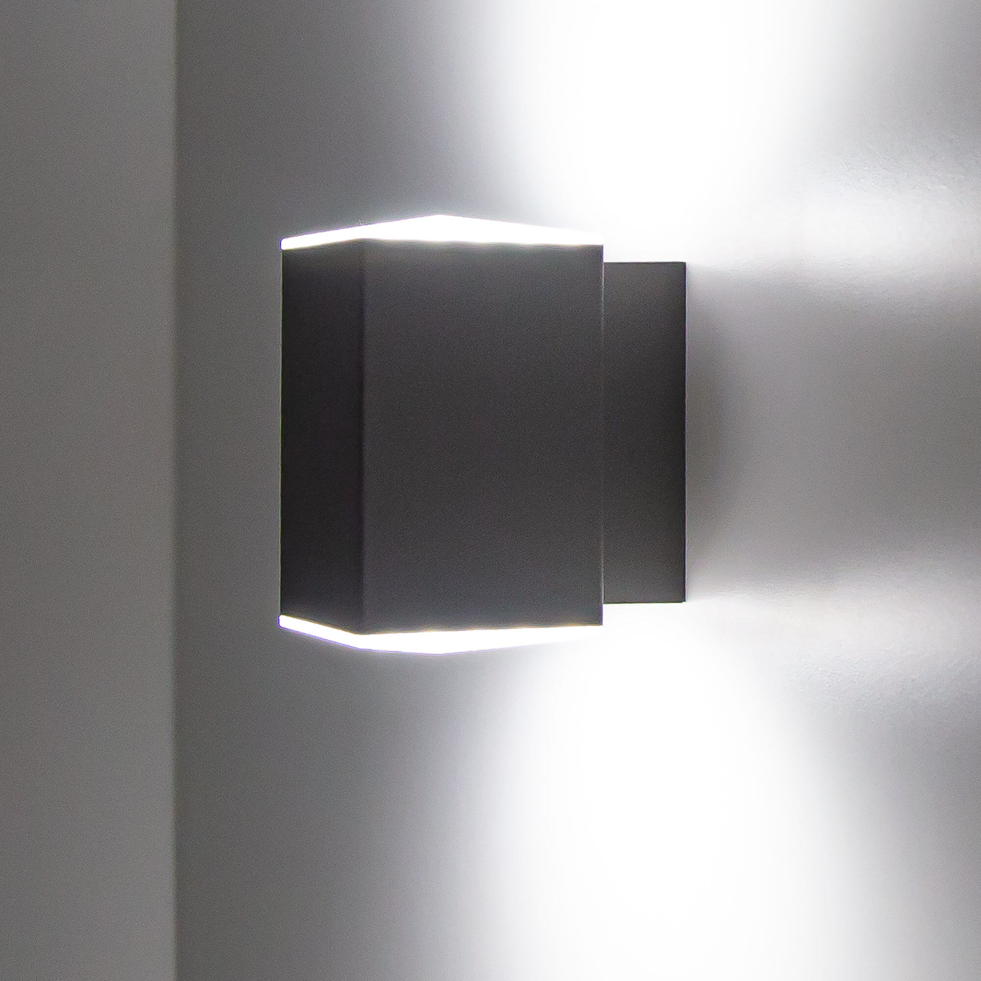 Светильник выполнен в современном стиле. Корпус металлический, прямоугольной (квадратной) формы, цвет графит. Мощность изделия 6Вт, световой поток 450Лм, цветовая температура 4000К - нейтральный белый свет. Мягкое и равномерное освещение, безопасное для глаз, без мерцания и пульсаций, направлено вверх и вниз.
