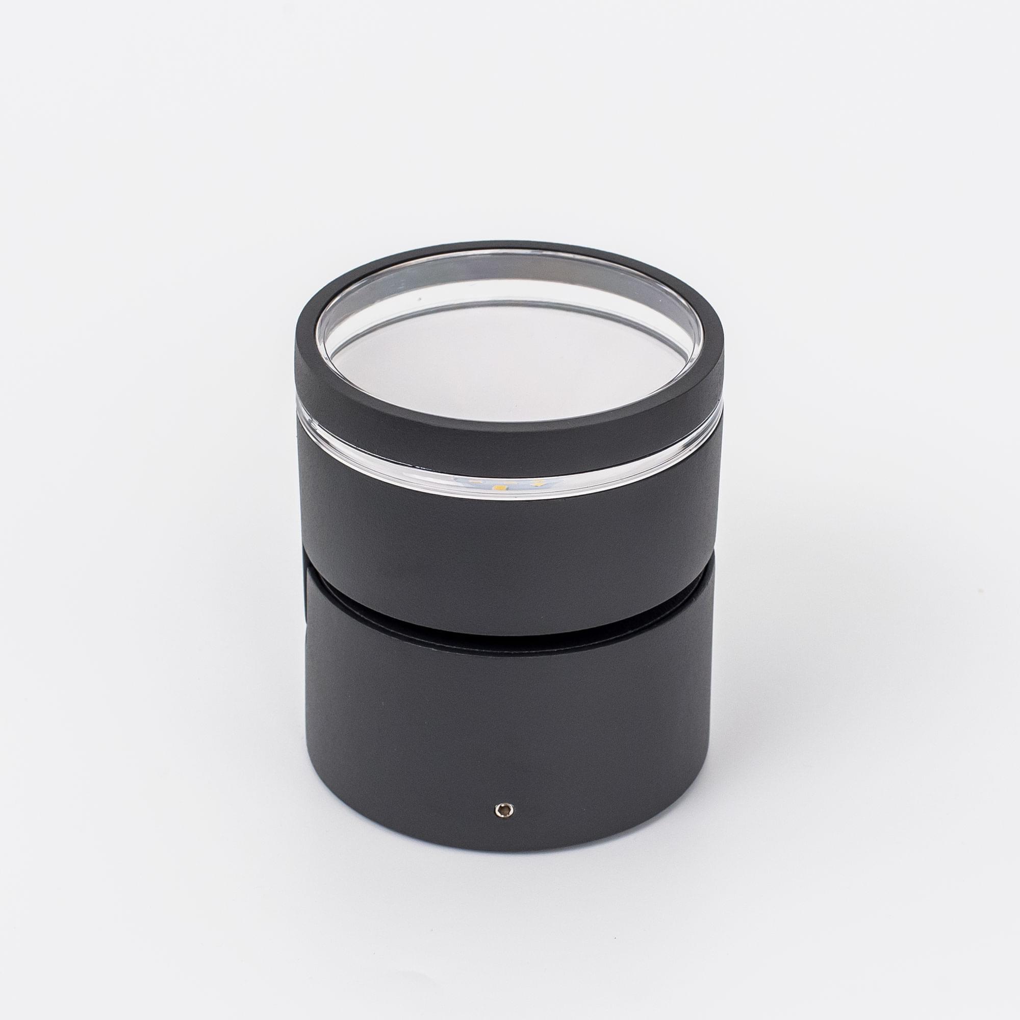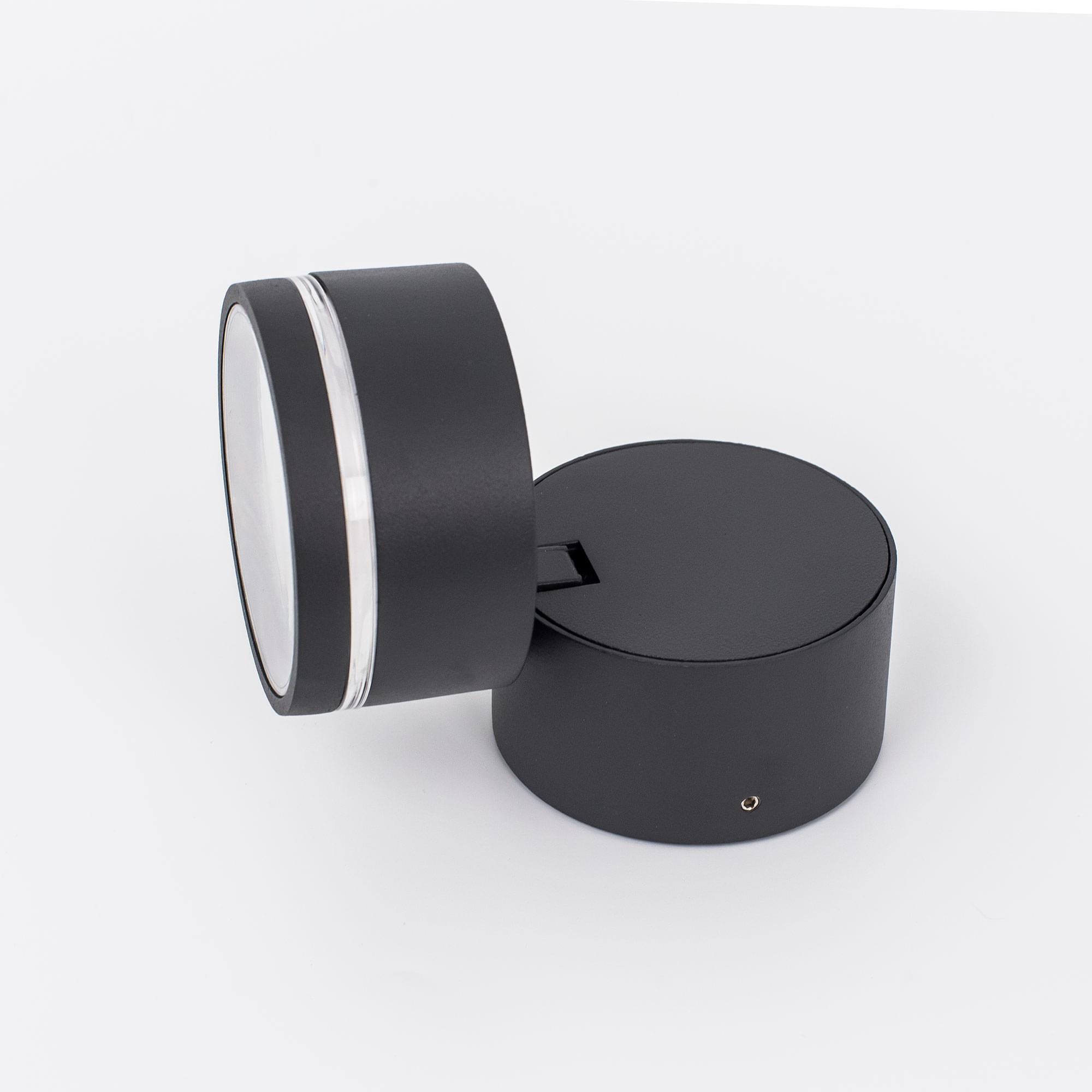 Светильник выполнен в современном стиле. Корпус металлический, цилиндрической формы, цвет графит. Мощность изделия 6Вт, световой поток 390Лм, цветовая температура 4000К - нейтральный белый свет. Мягкое и равномерное освещение, безопасное для глаз, без мерцания и пульсаций. Уличный спот поворачивается в одной плоскости, что позволяет устанавливать его на стену и потолок.
